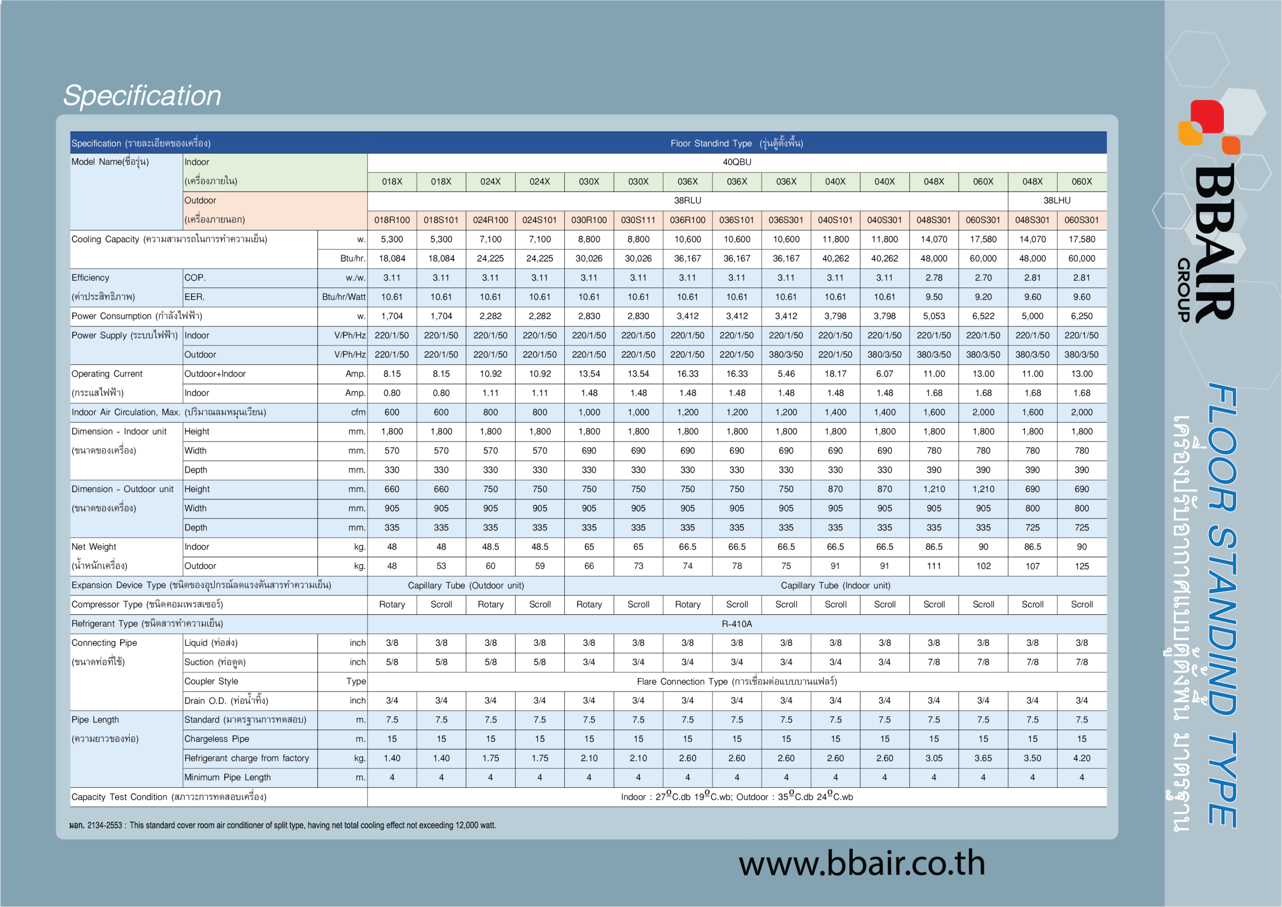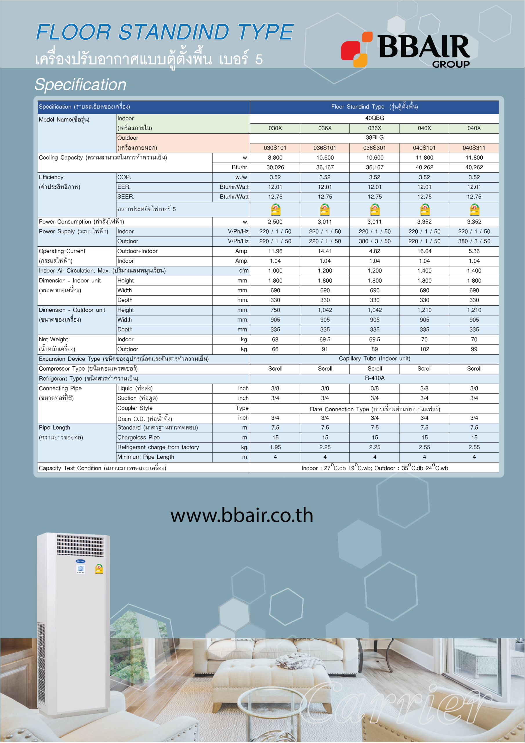 คุณสมบัติสินค้าของแอร์แคเรียร์ Carrier แบบตู้ตั้งพื้น 40QBU SERIES  น้ำยาแอร์ R-410A