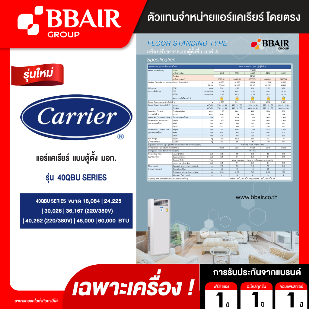 CARRIER แบบตู้ตั้ง 40QBU SERIES น้ำยาแอร์ R-410A