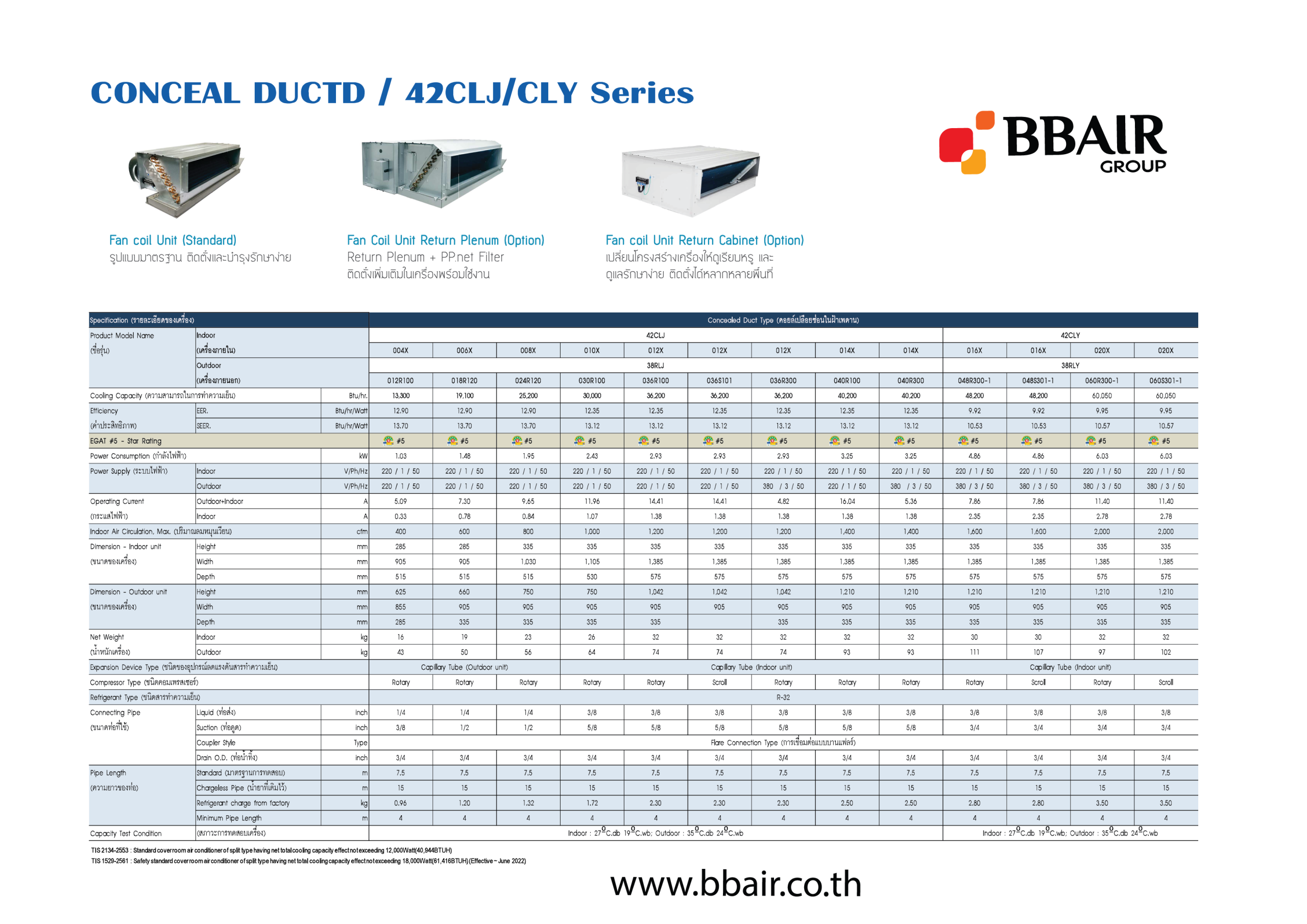 - ผ่านเกณฑ์การประหยัดพลังงานและมาตรฐานของเครื่องปรับอากาศ EGAT #5, TIS 2134-2553 และ TIS 1529-2561