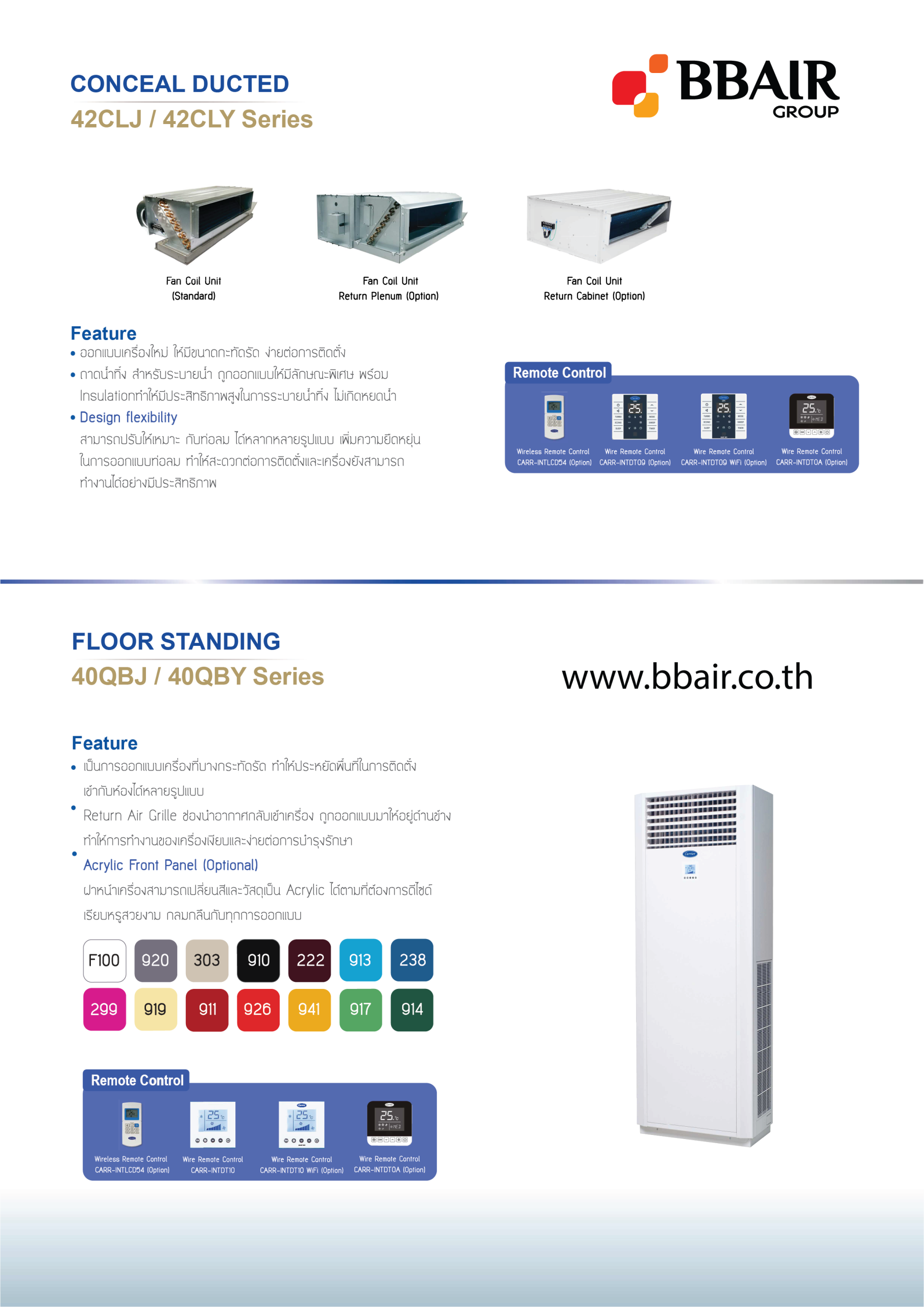 - เครื่องแบบ Return Plenum / เครื่องแบบ Cabinet (อุปกรณ์เสริม)