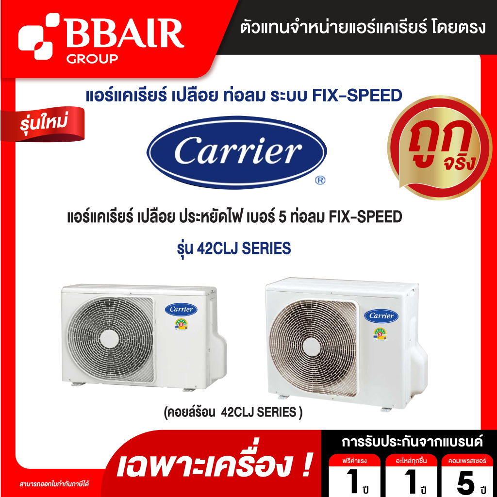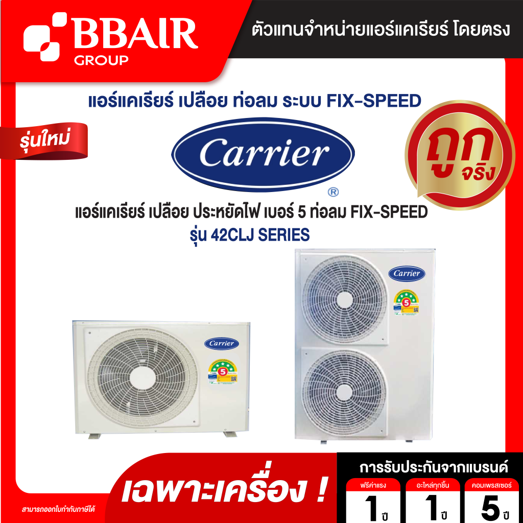 CARRIER แอร์เปลือย แบบแยกส่วน ซ่อนในฝ้าเพดาน ต่อท่อลม ประหยัดไฟ เบอร์ 5 FIX-SPEED
