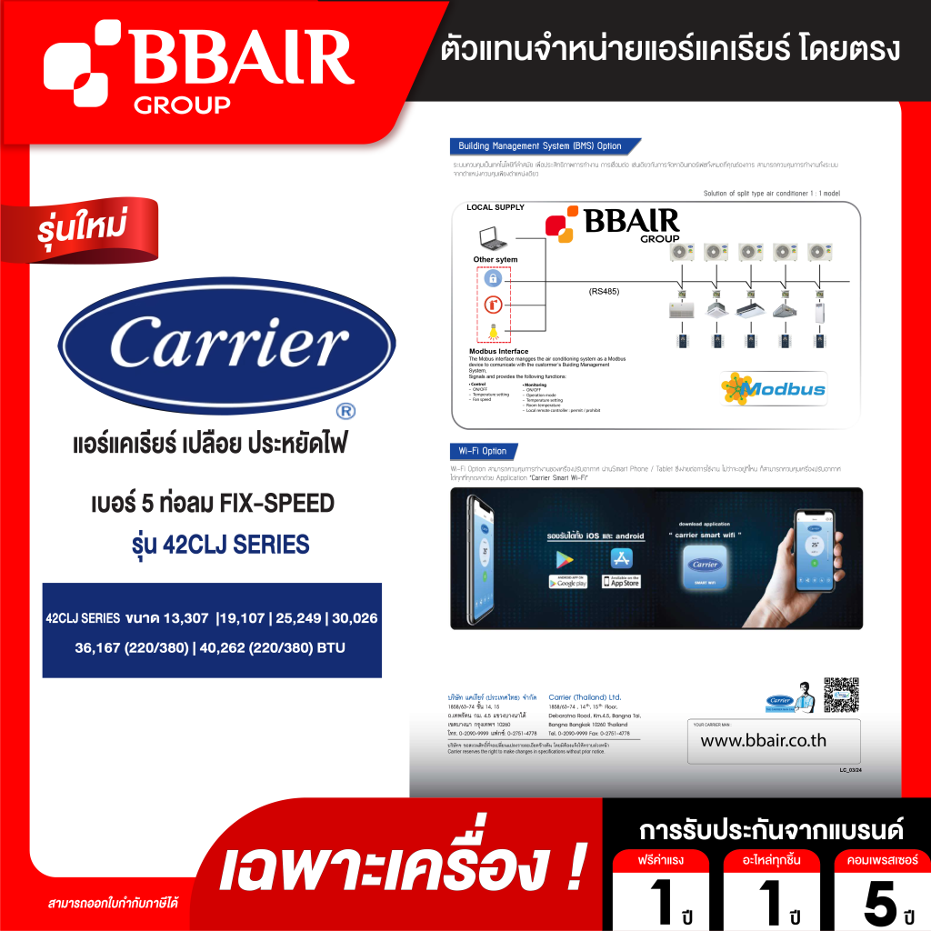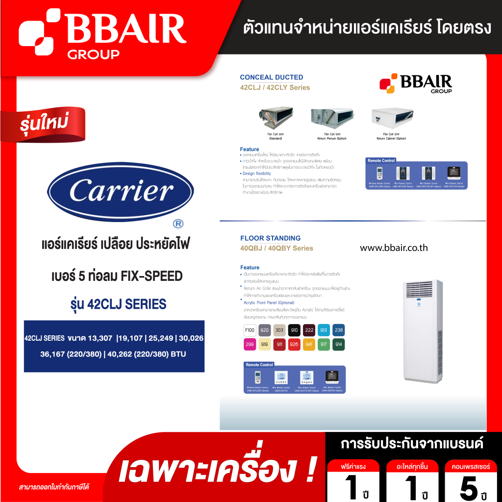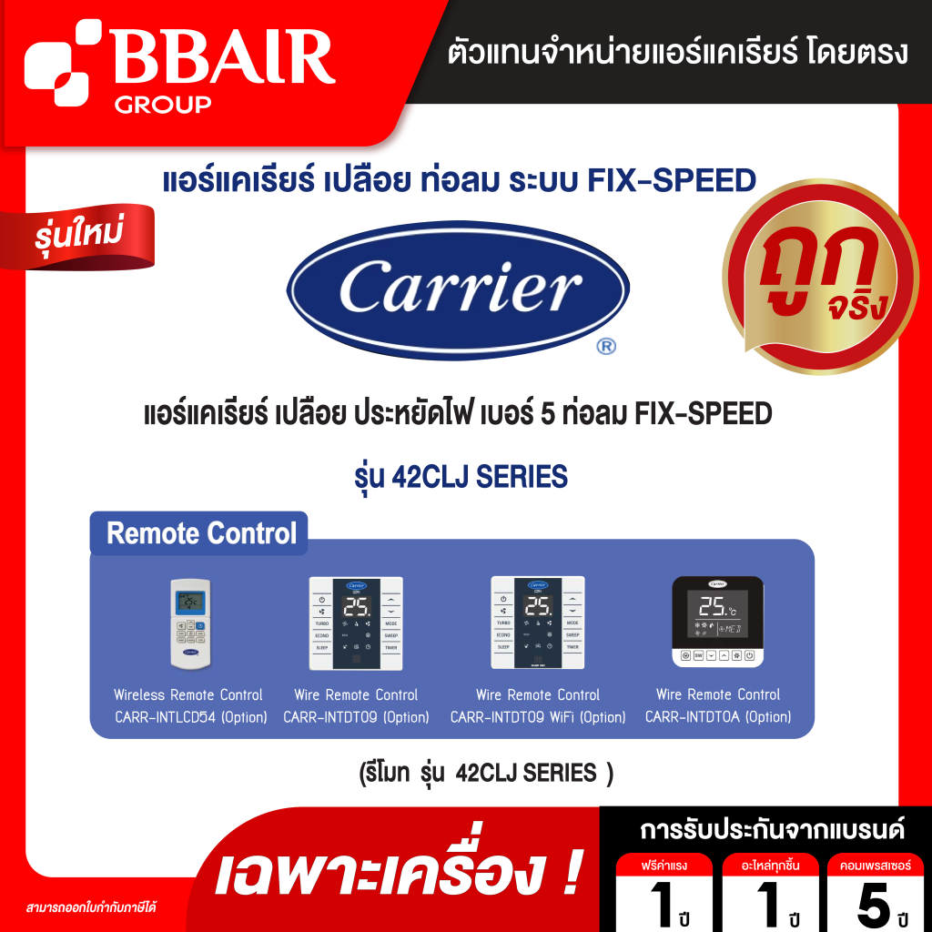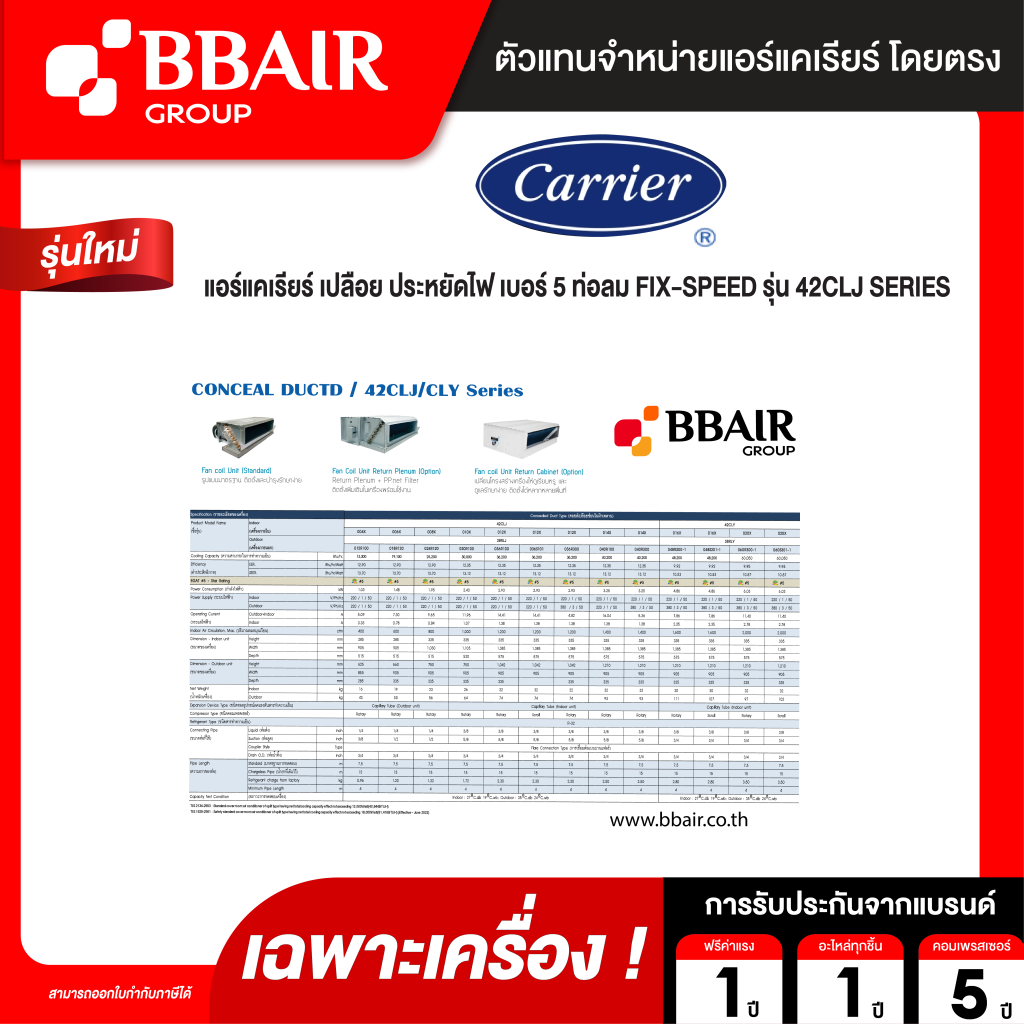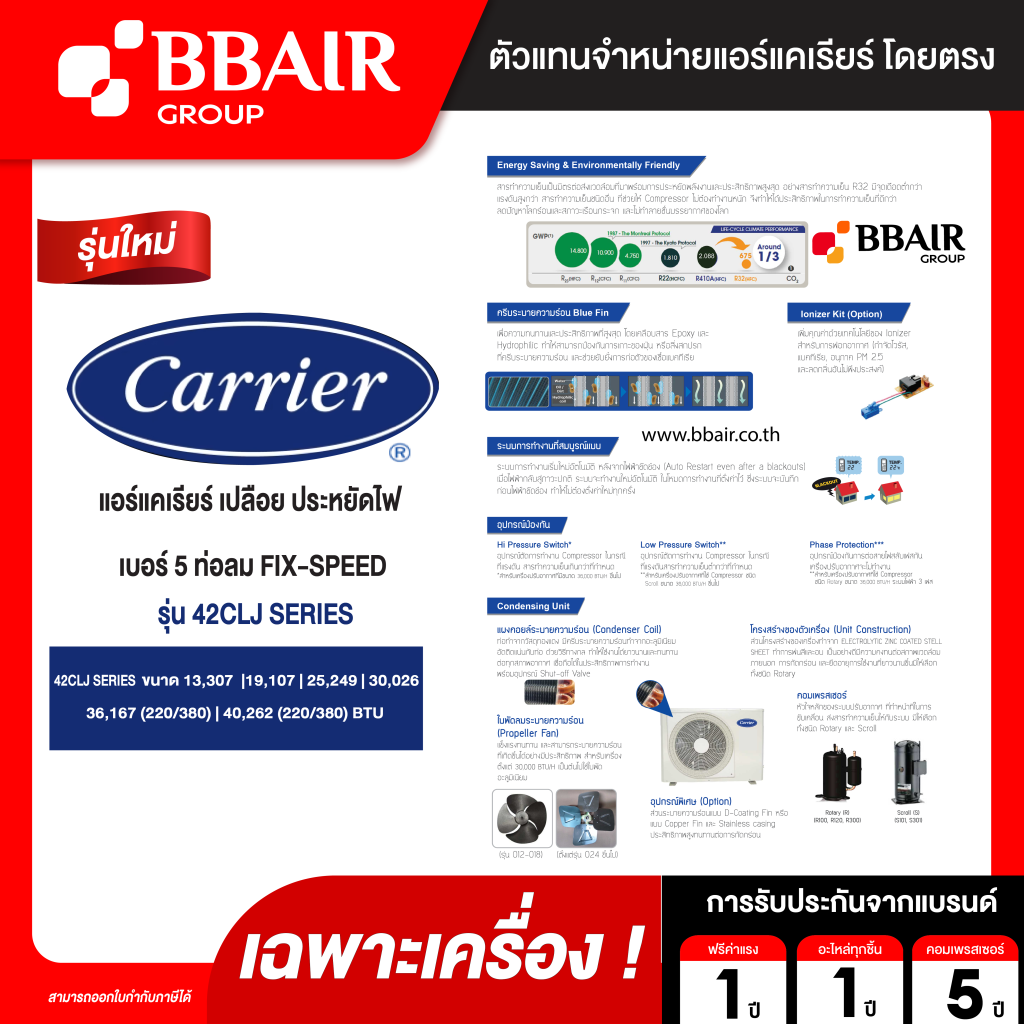 - รับประกันคอมเพรสเซอร์ 5 ปี (สำหรับ 42CLJ) / รับประกันคอมเพรสเซอร์ 1 ปี (สำหรับ 42CLY)