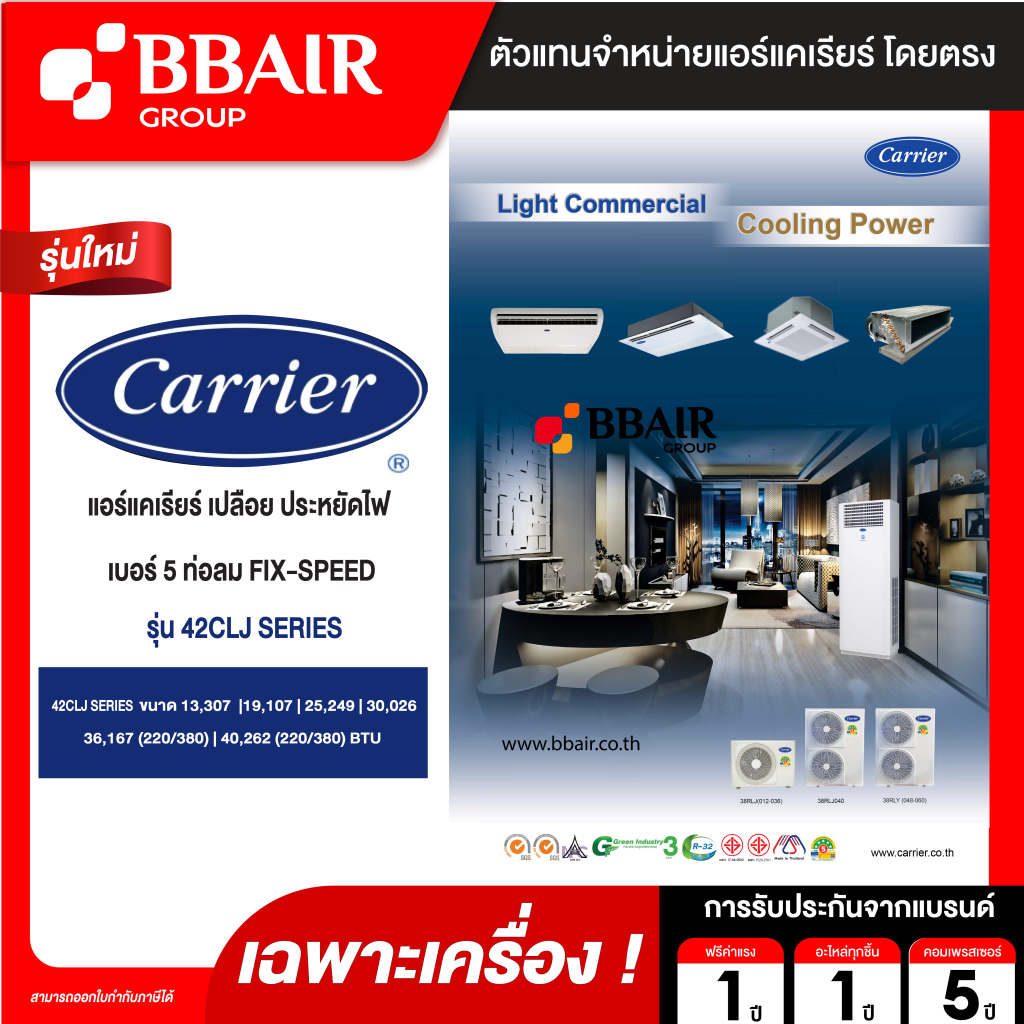คุณสมบัติสินค้าของแอร์แคเรียร์ แบบเปลือยท่อลม 42CLJ SERIES น้ำยาแอร์ R-32
