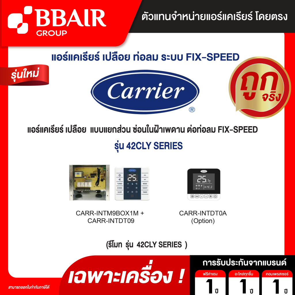 CARRIER แอร์เปลือย แบบแยกส่วน ซ่อนในฝ้าเพดาน ต่อท่อลม FIX-SPEEDรุ่น 42CLY SERIESระบบไฟ 220/380 V (ราคาไม่รวมชุดควบคุมอุณหูมิ)(เฉพาะเครื่อง)