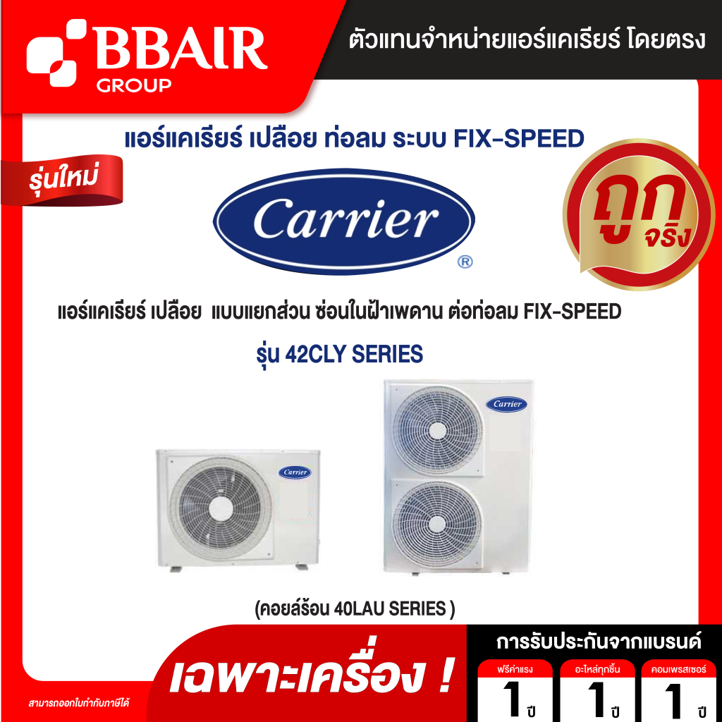 CARRIER แอร์เปลือย แบบแยกส่วน ซ่อนในฝ้าเพดาน ต่อท่อลม ประหยัดไฟ เบอร์ 5 FIX-SPEED