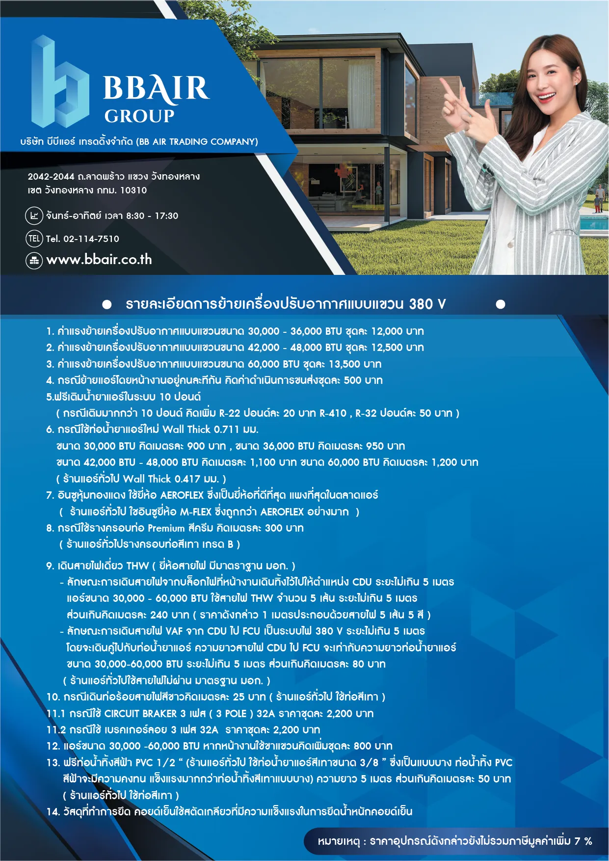 12. แอร์ขนาด 30,000 -60,000 BTU หากหน้างานใช้ขาแขวนคิดเพิ่มชุดละ 800 บาท