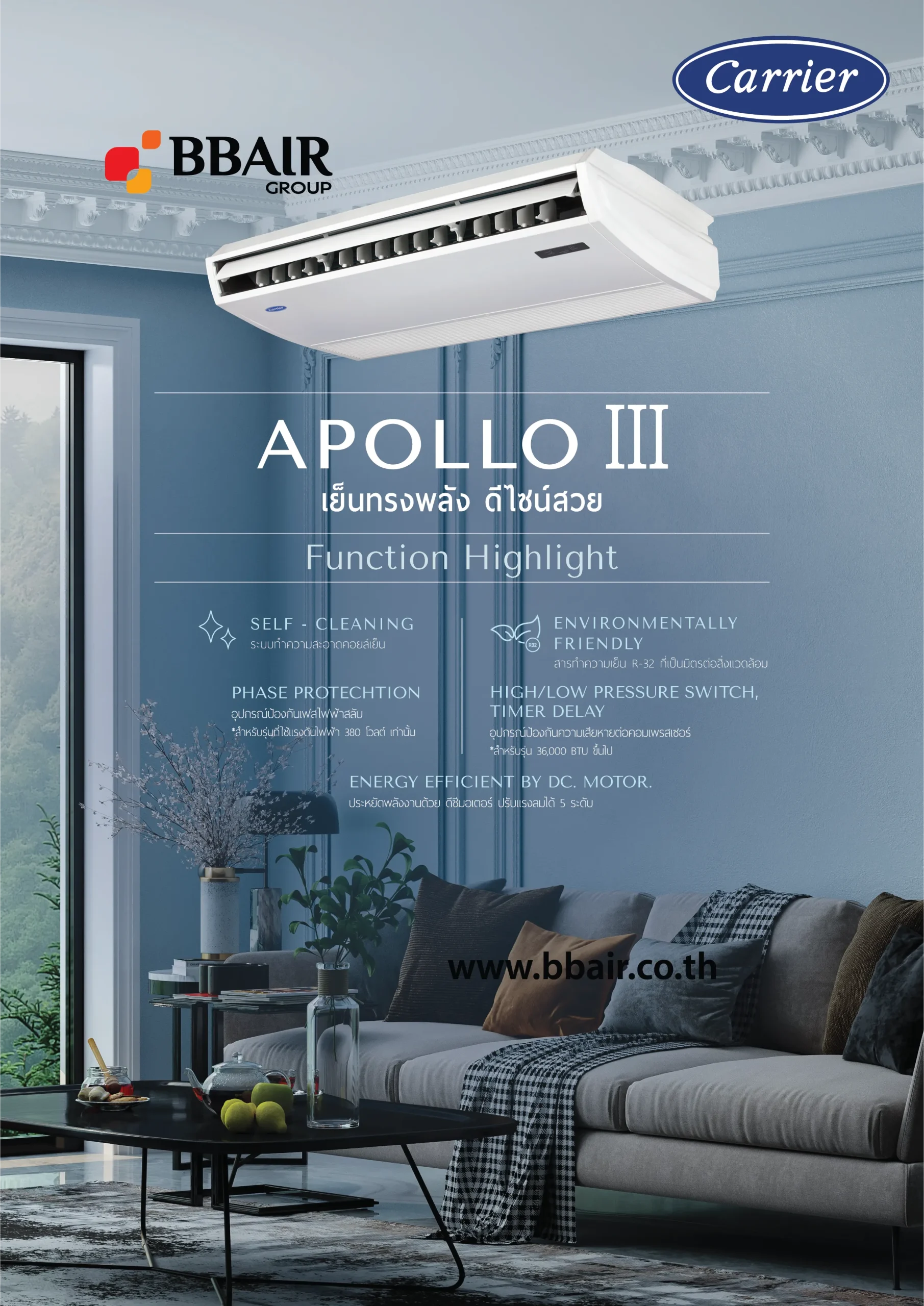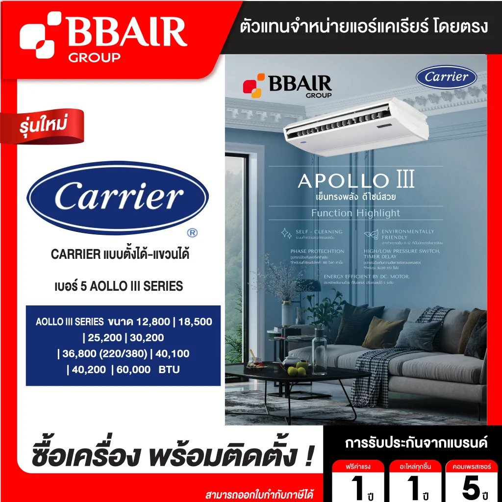 CARRIER แบบตั้งได้-แขวนได้ เบอร์ 5 AOLLO III SERIES