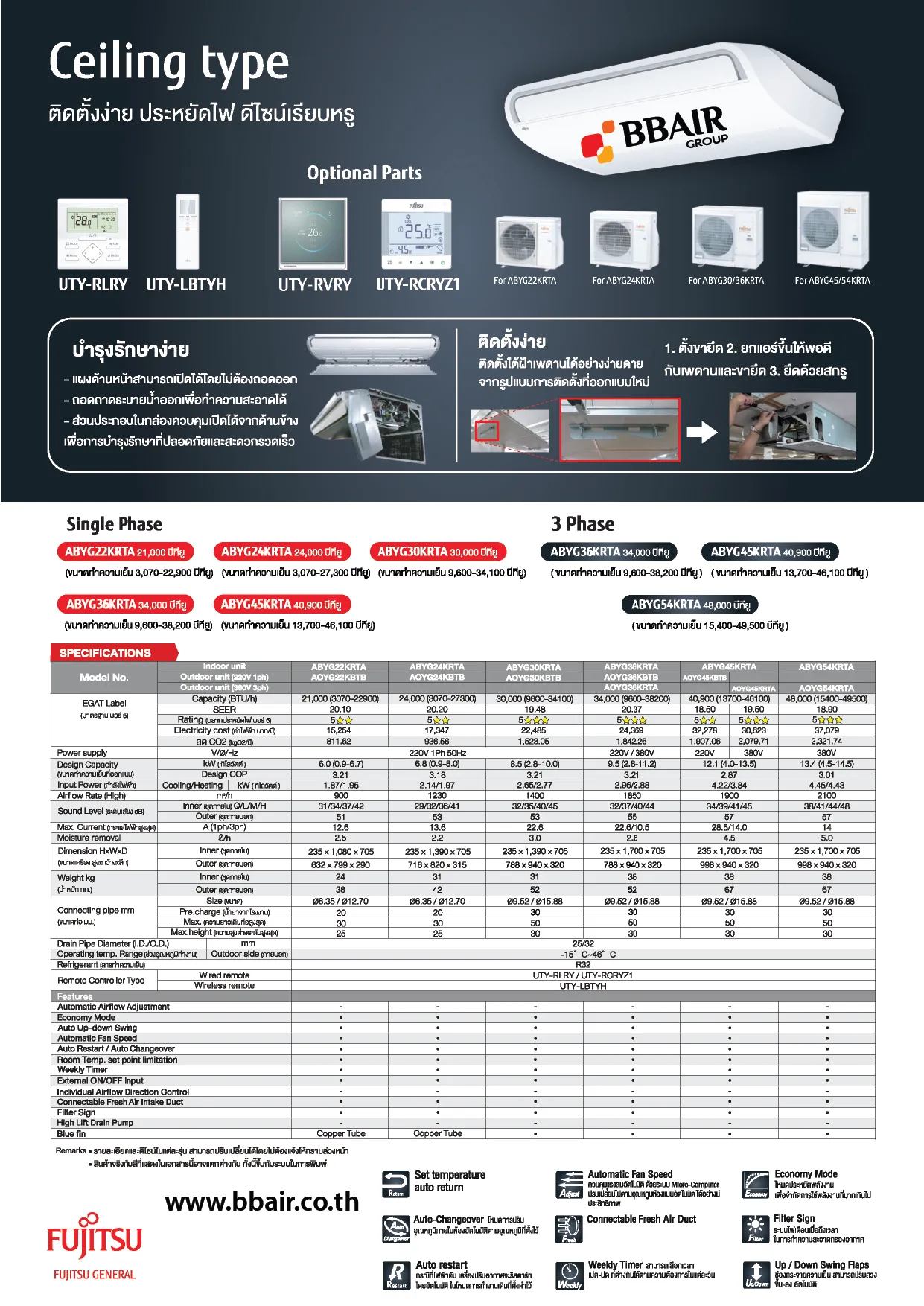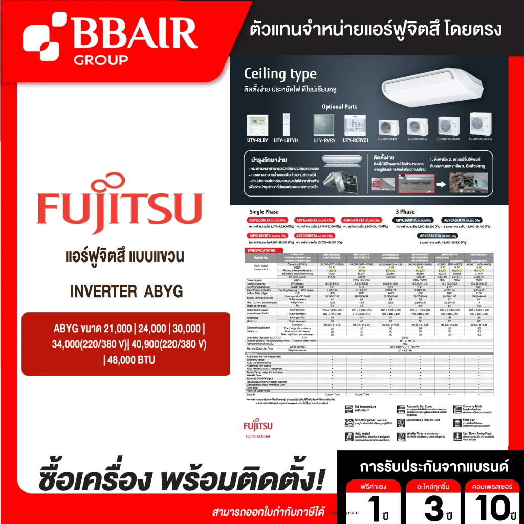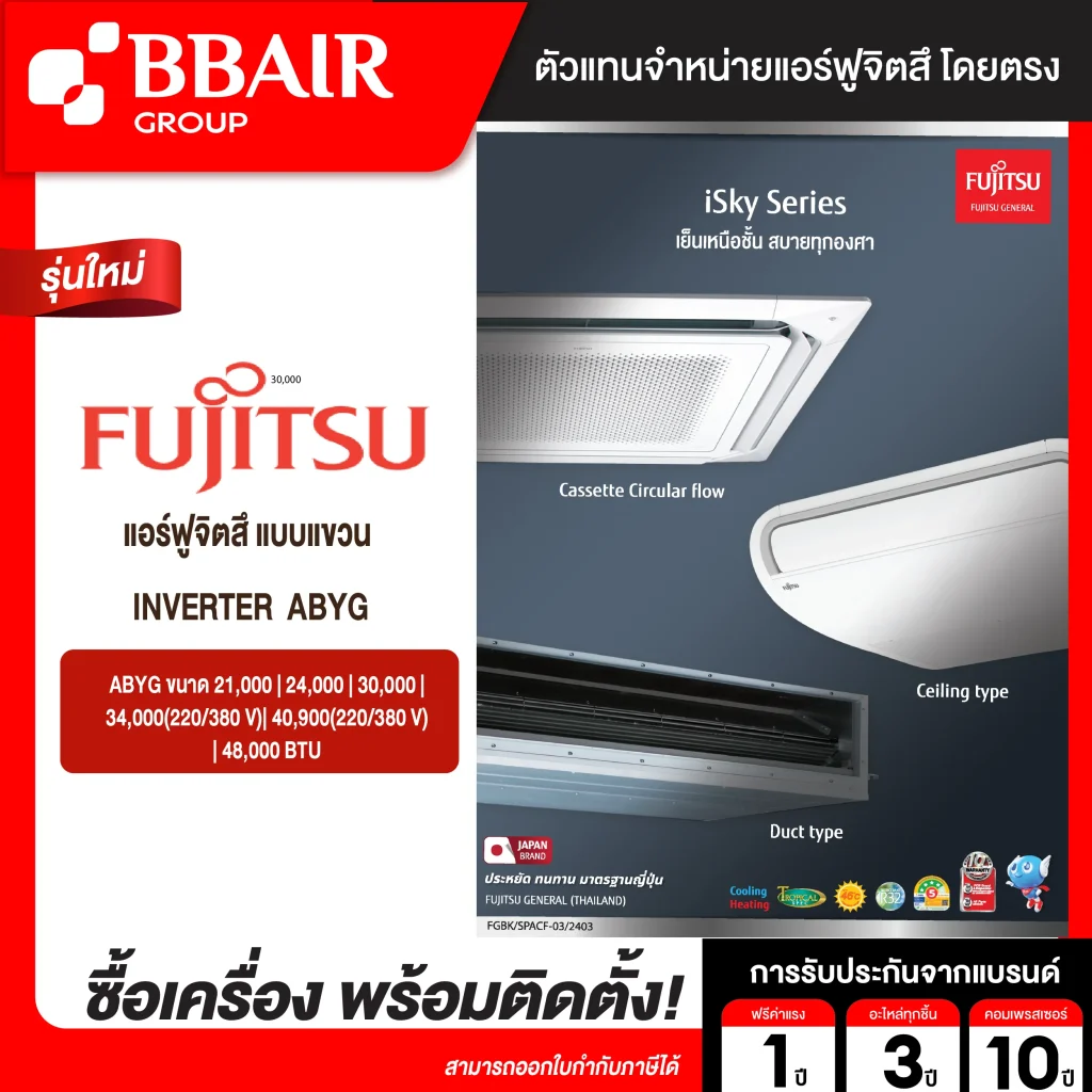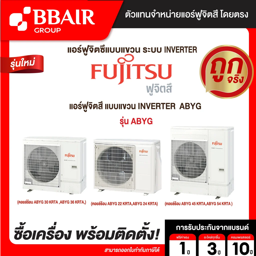 คุณสมบัติสินค้าของแอร์ฟูจิซึ Fujitsu แบบแขวนอินเวอร์เตอร์ ABYG น้ำยาแอร์ R-410
