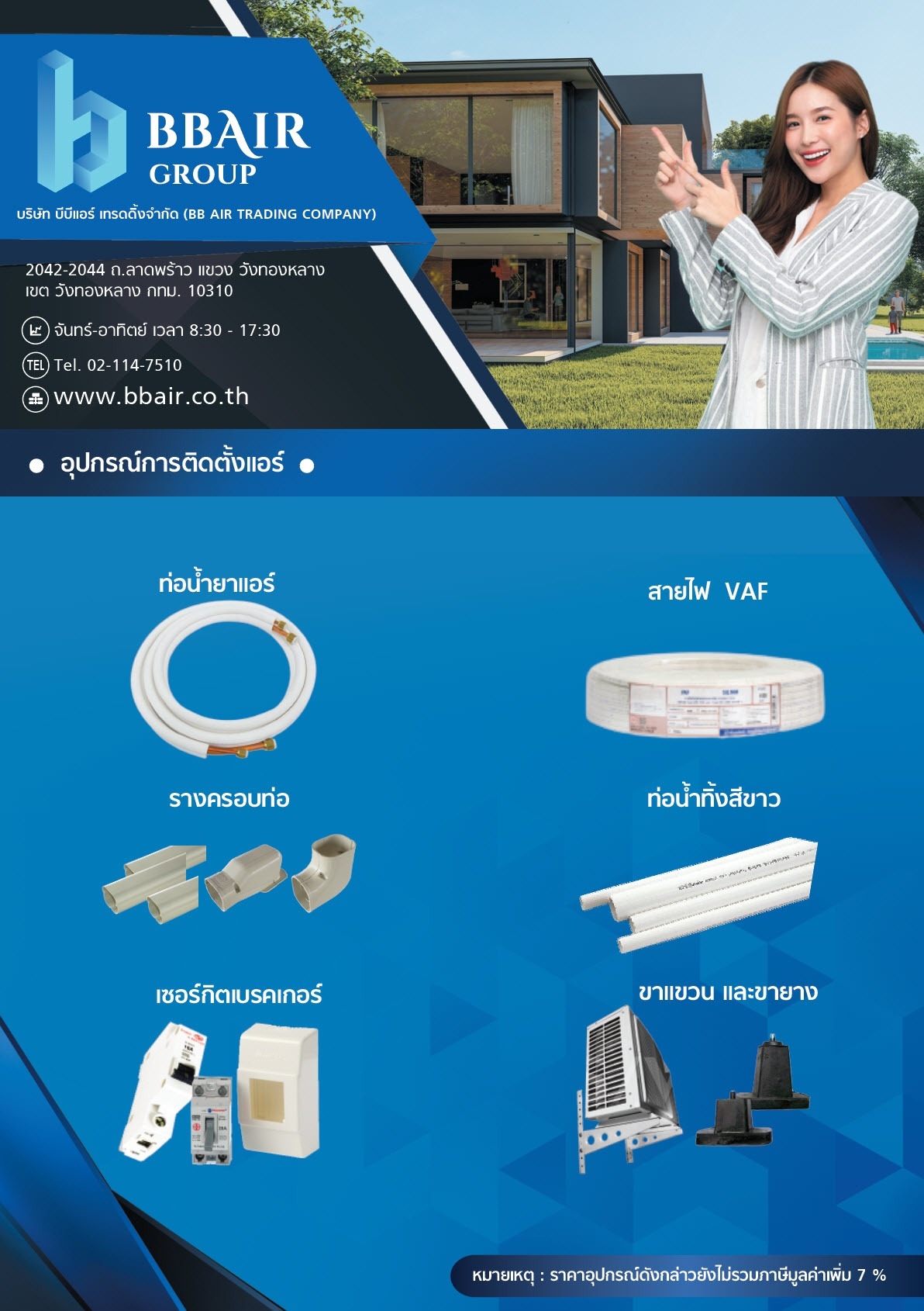 ขนาด 30,000 BTU ส่วนเกินคิดเมตรละ 1,050 บาท