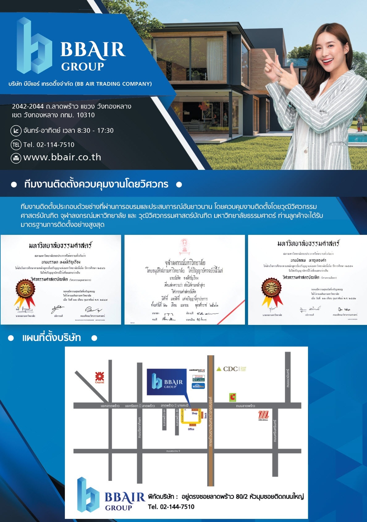 ขนาด 30,000-36,000 BTU ส่วนเกินคิดเมตรละ 80 บาท