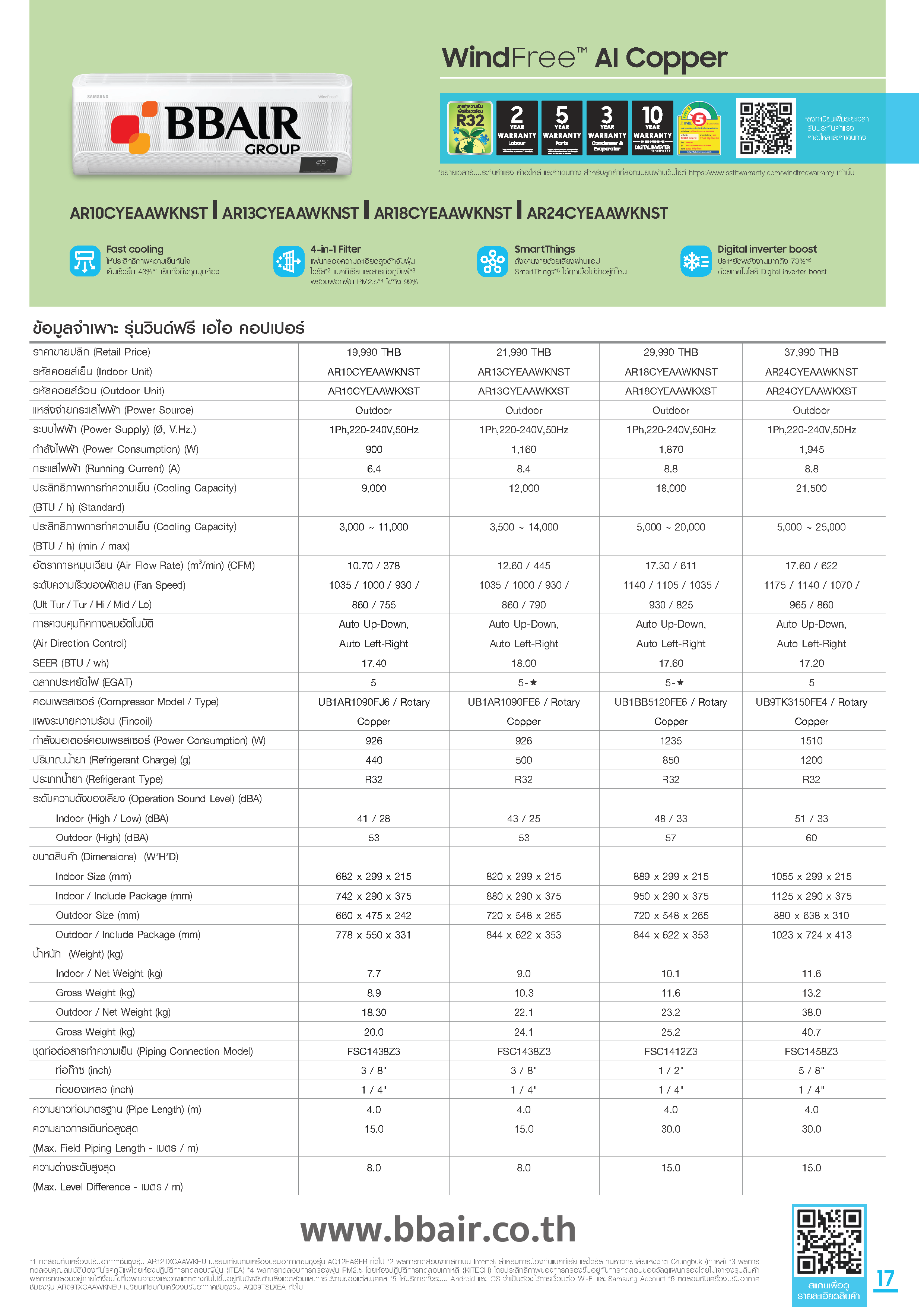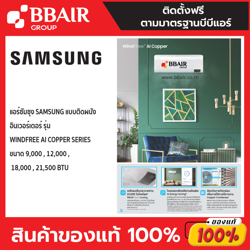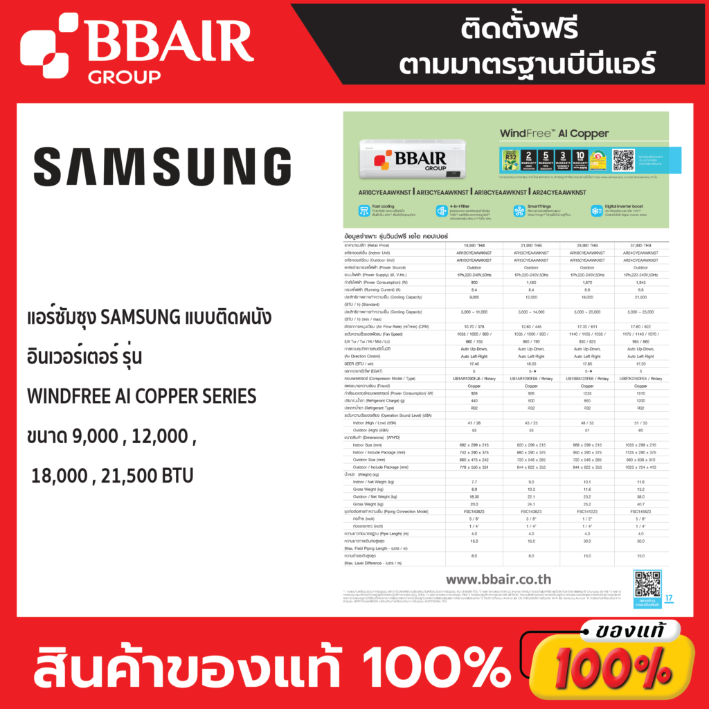 ขนาด 9,000-24,000 BTU ส่วนเกินคิดเมตรละ 950 บาท