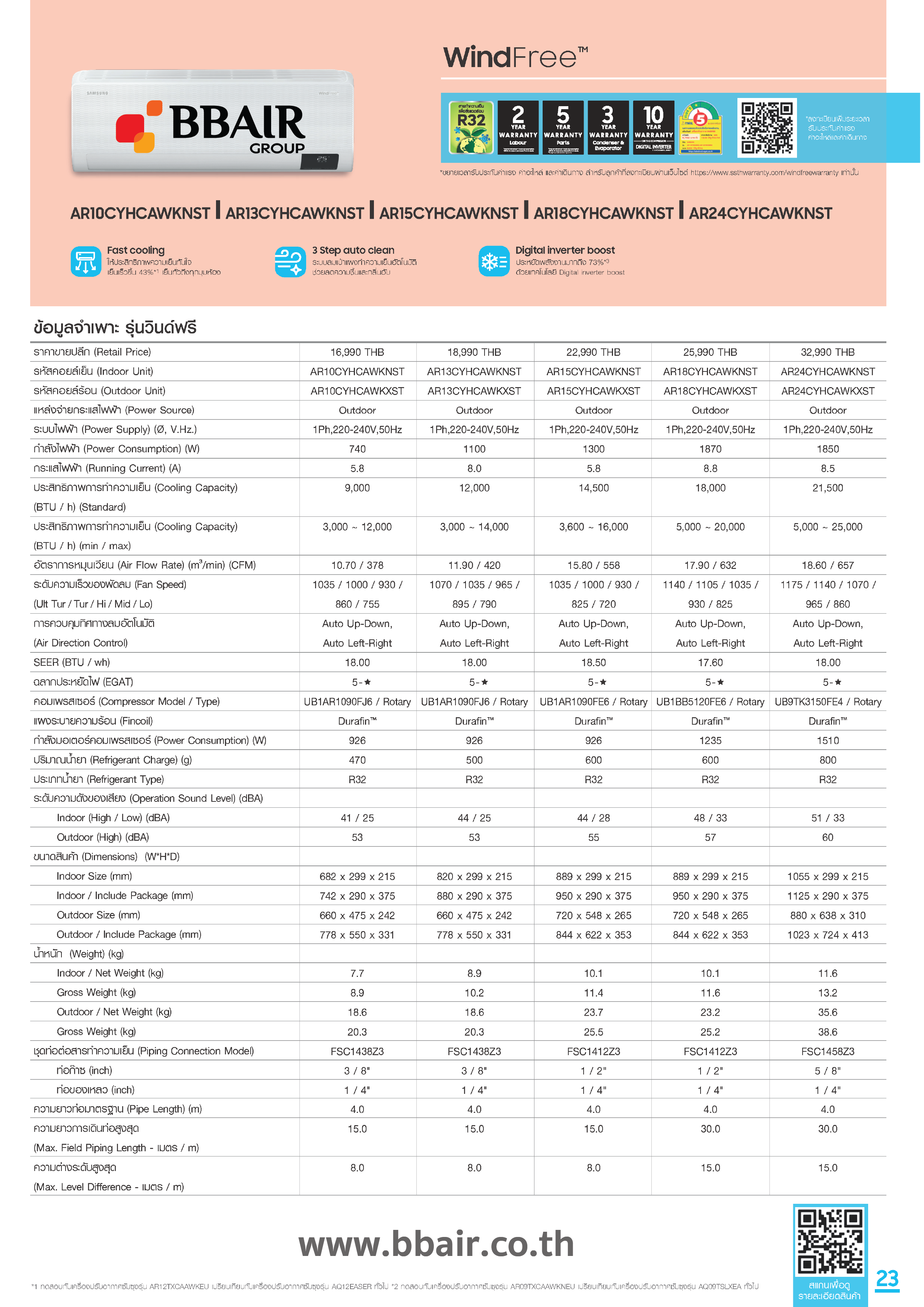• AR15CYHCAWKNST/AR15CYHCAWKXST ขนาด 14,500 (3,600-16,000) BTU