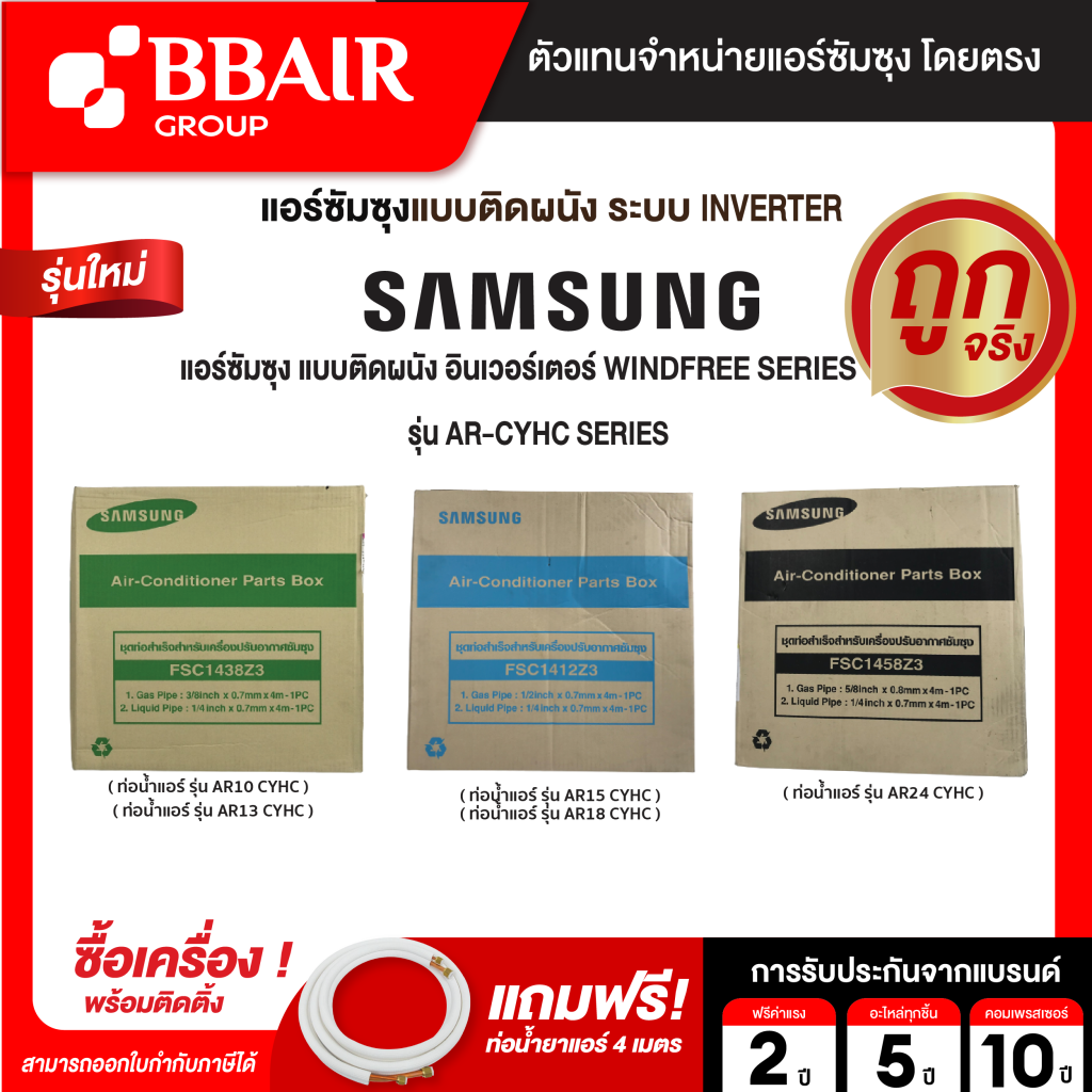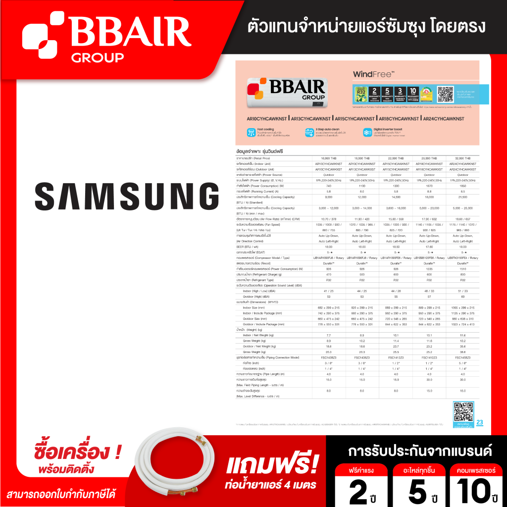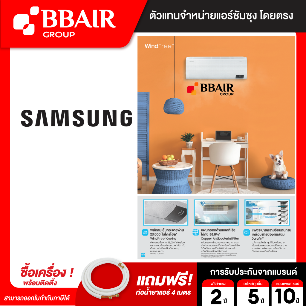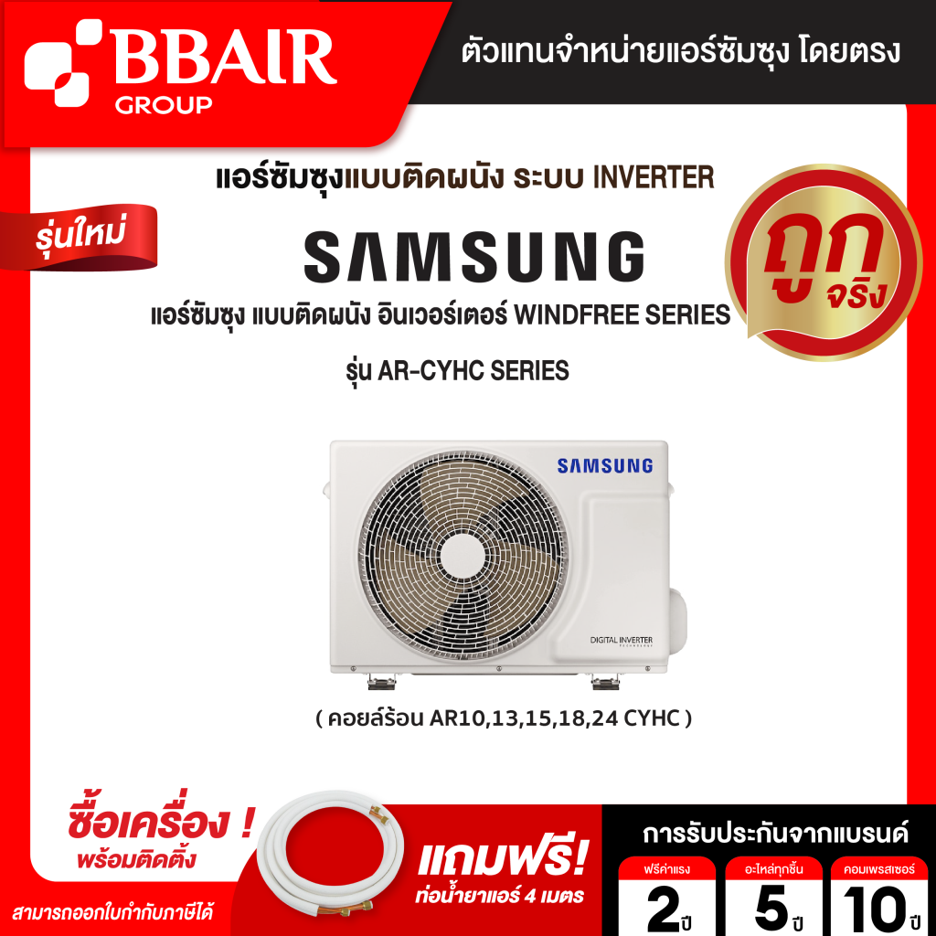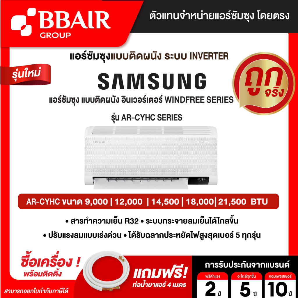 แอร์ซัมซุง Samsung แบบติดผนัง อินเวอร์เตอร์ WINDFREE SERIES รุ่น AR/CYHCAWKNST BTU รีโมทไร้สาย พร้อมติดตั้ง
