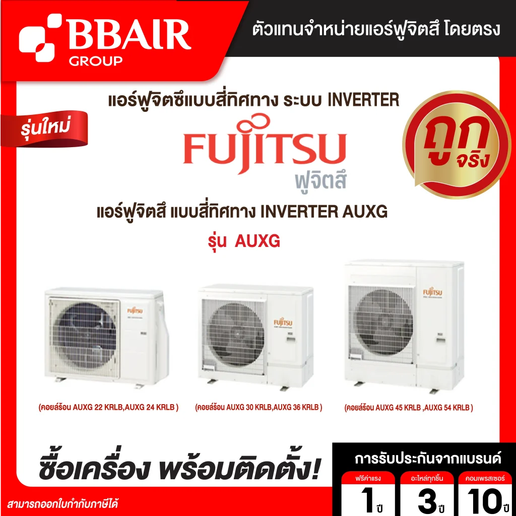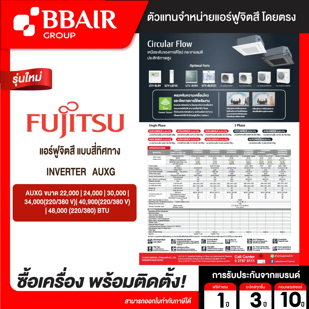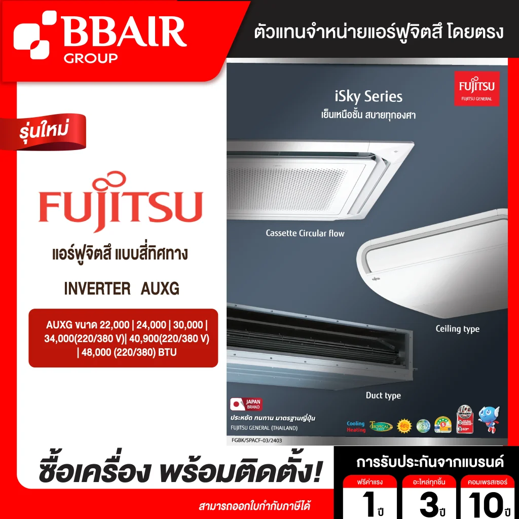 คุณสมบัติสินค้าของแอร์ฟูจิซึ Fujitsu แบบแขวนอินเวอร์เตอร์ AUXG รุ่น AUXG22KRLB/AOYG22KBTB น้ำยาแอร์ R-32