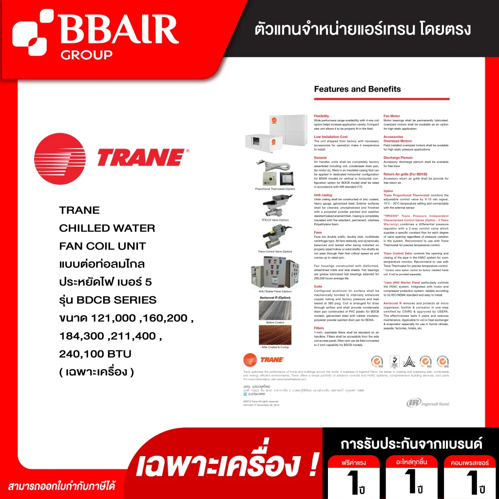 คุณสมบัติสินค้าของแอร์เทรน TRANE CHILLED WATER AIR HANDLING UNITแบบต่อท่อลมไกล BDCB SERIES