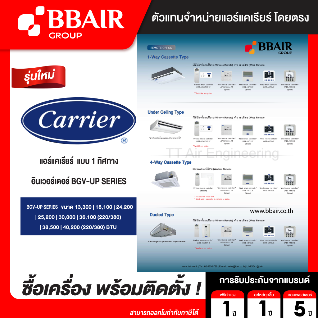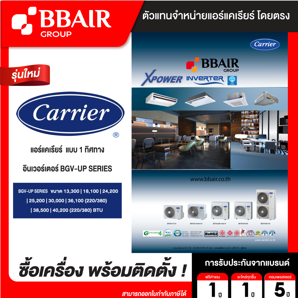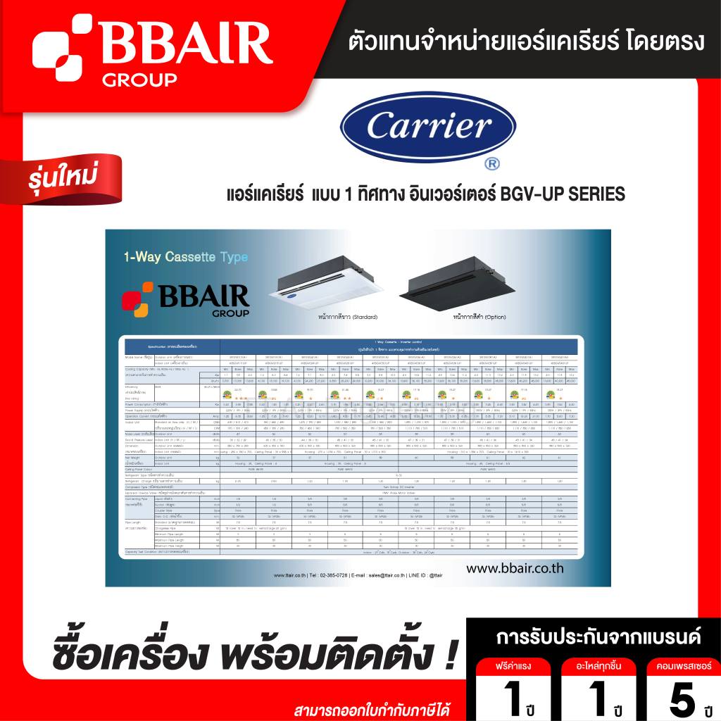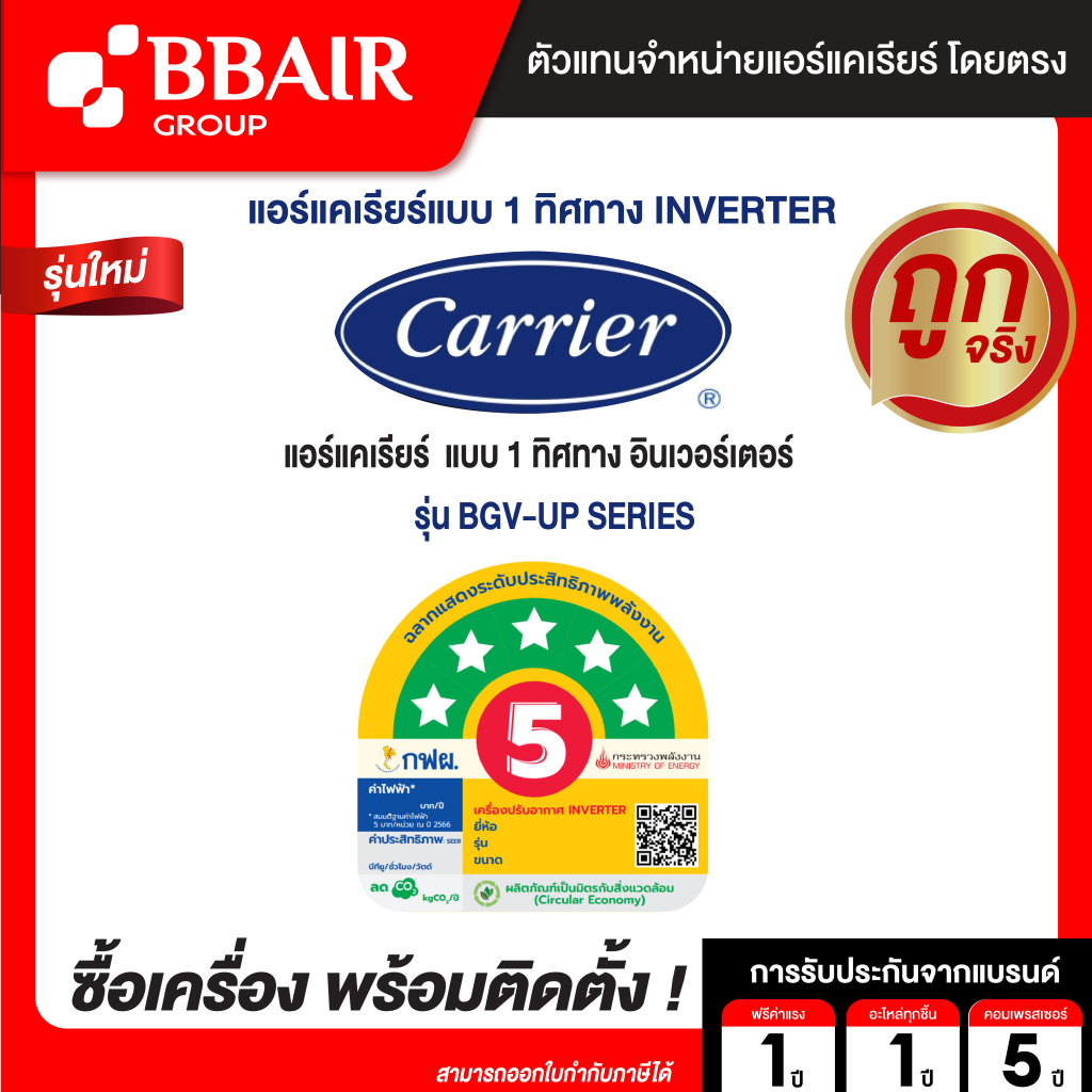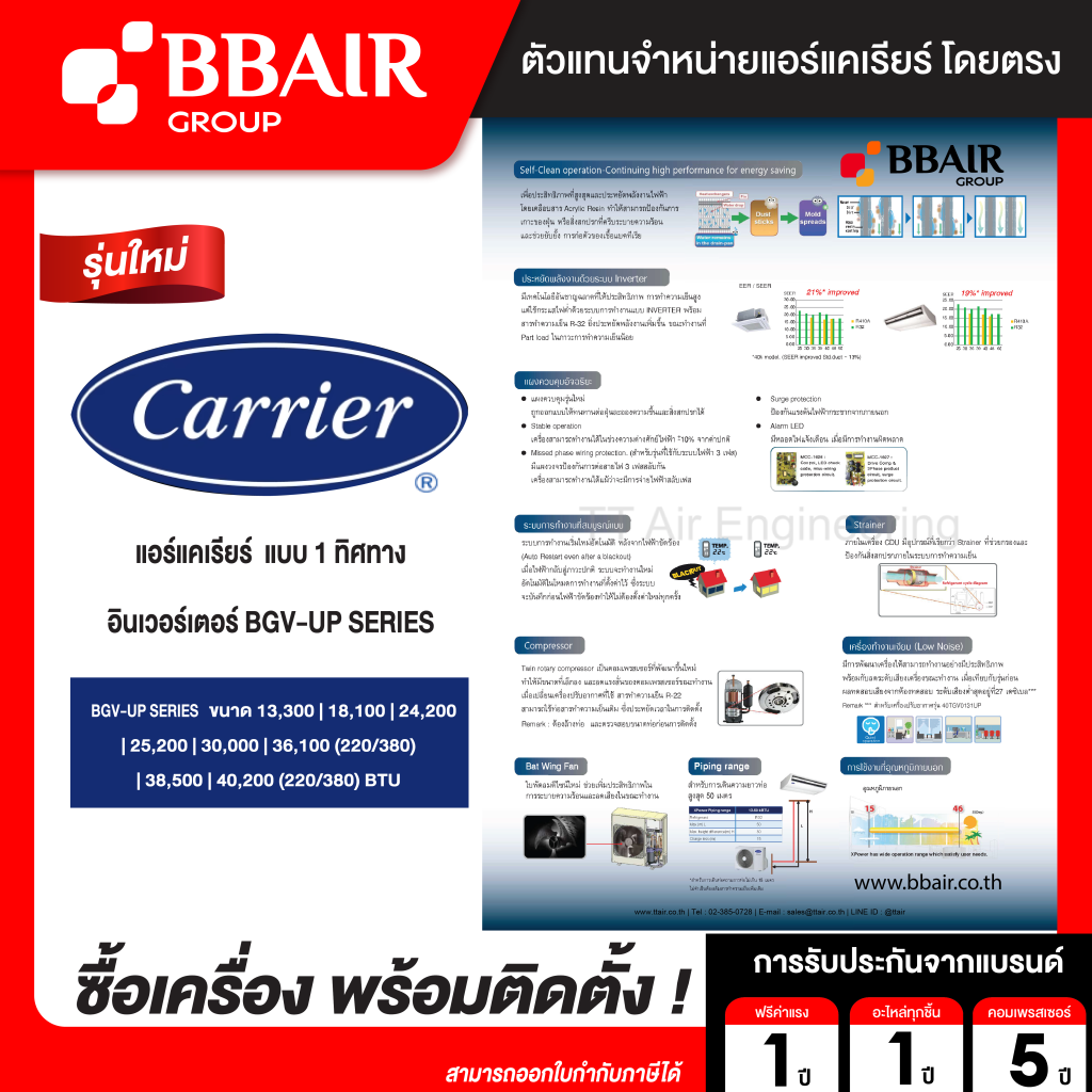 Carrier แบบ 1 ทิศทาง อินเวอร์เตอร์ BGV-UP SERIES น้ำยาแอร์ R-32 ระบบไฟ 220/380 V รีโมทไร้สาย พร้อมติดตั้ง