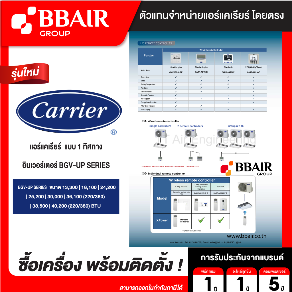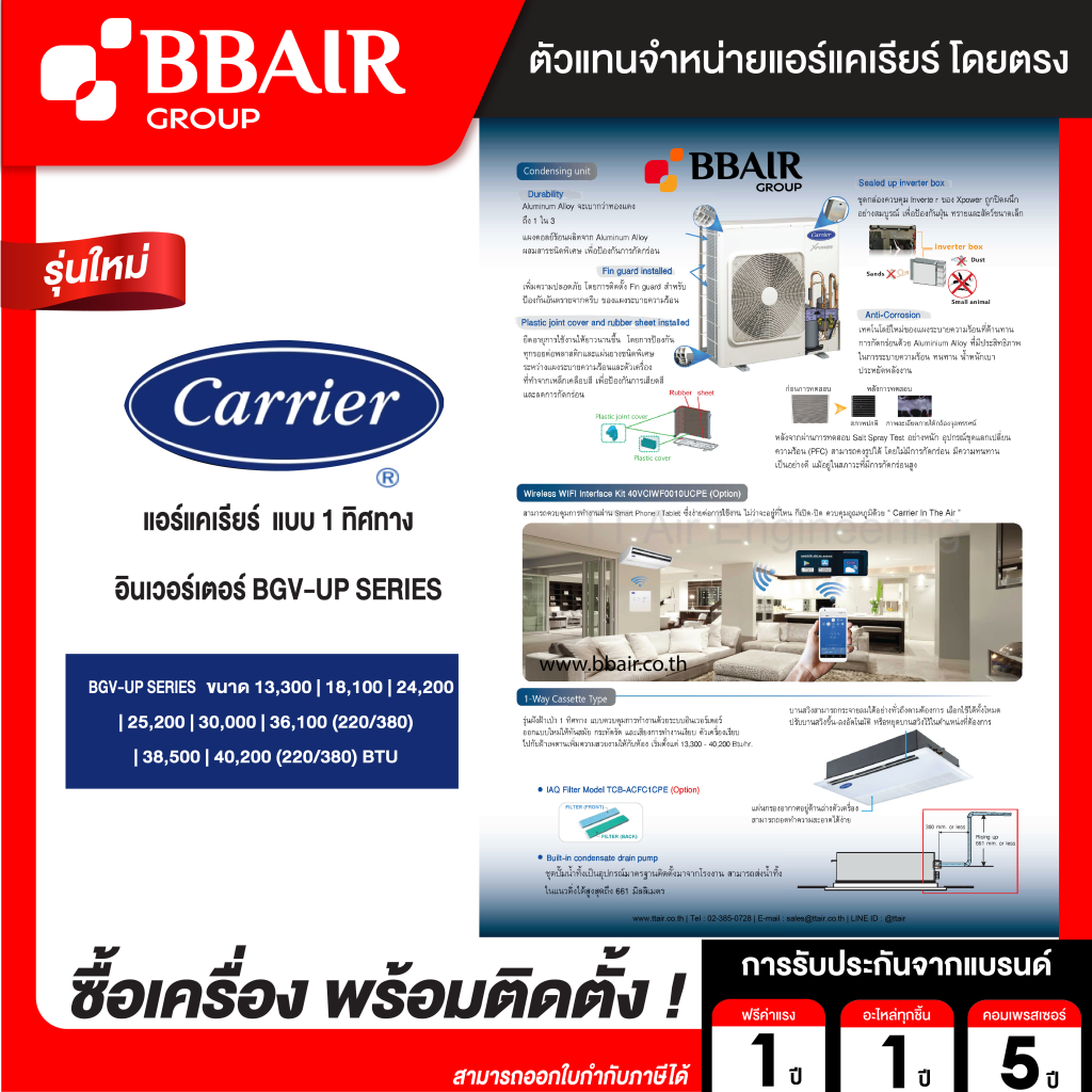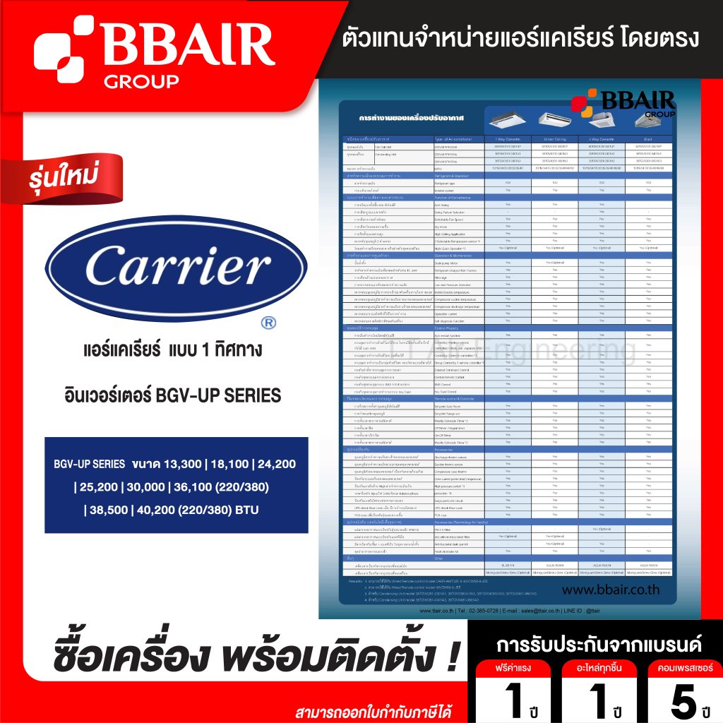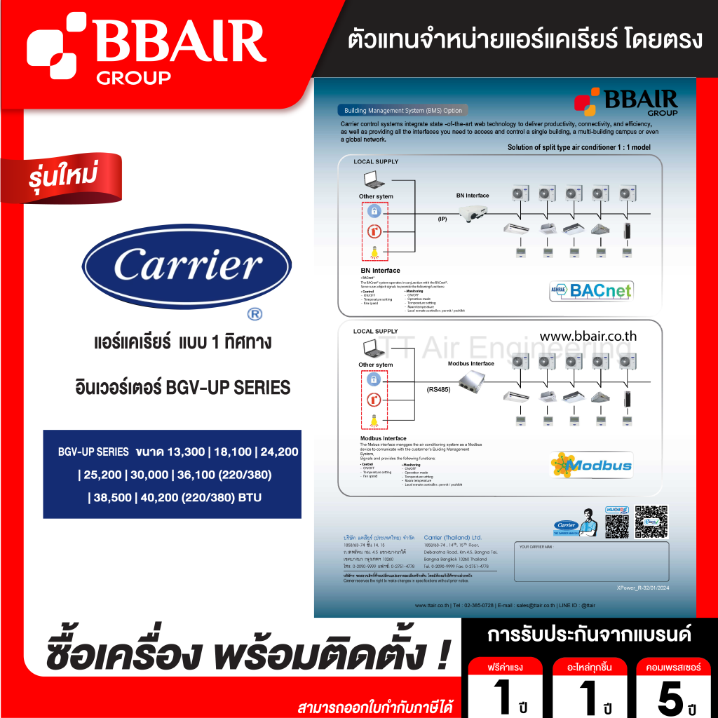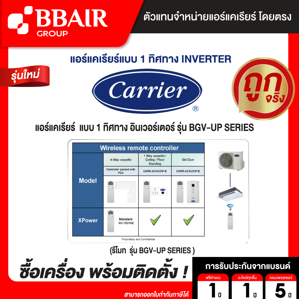 Carrier แบบ 1 ทิศทาง อินเวอร์เตอร์ BGV-UP SERIES น้ำยาแอร์ R-32 ระบบไฟ 220/380 V รีโมทไร้สาย พร้อมติดตั้ง