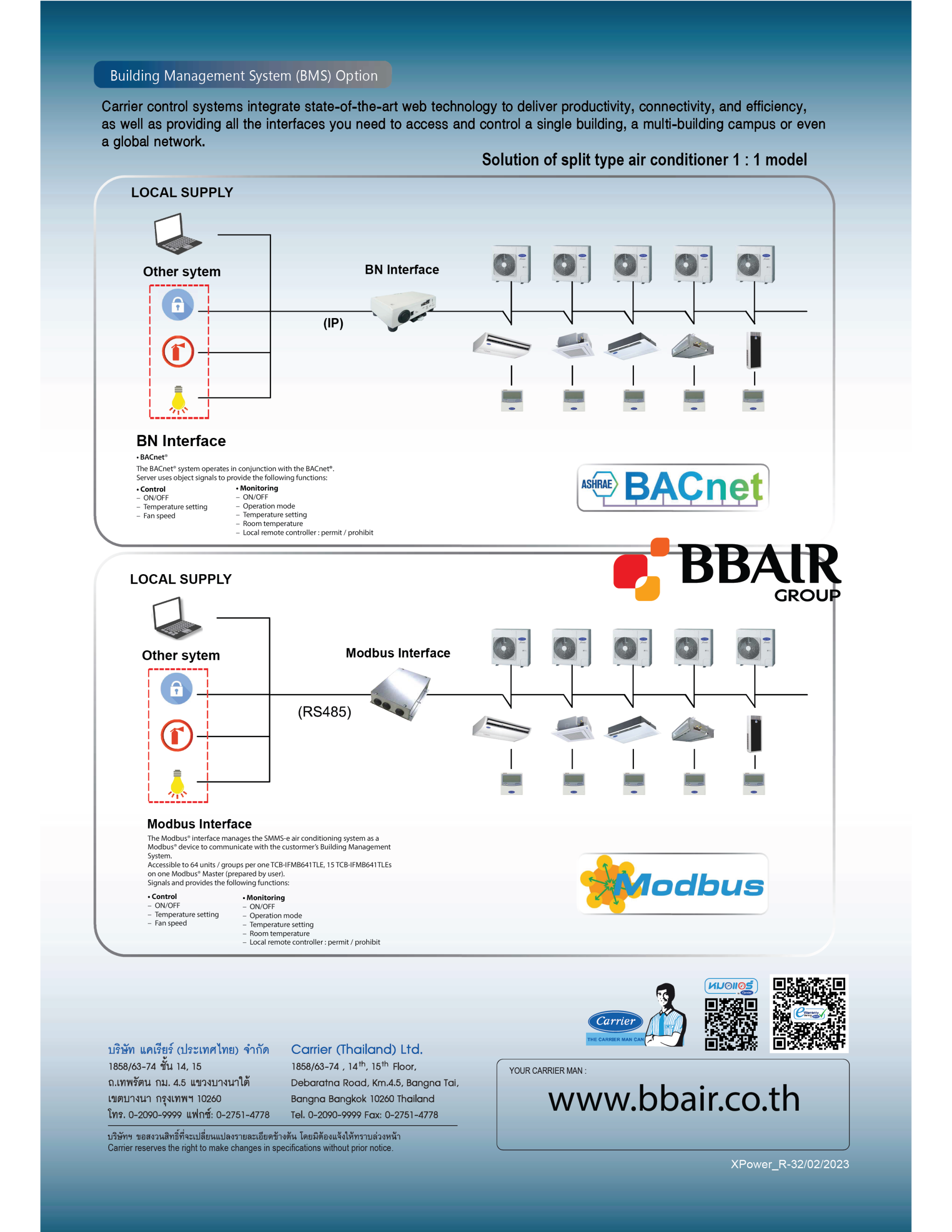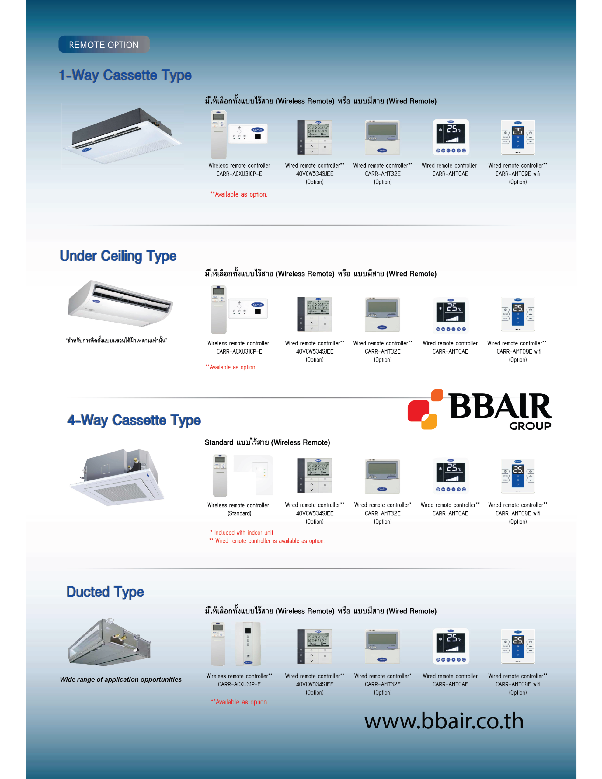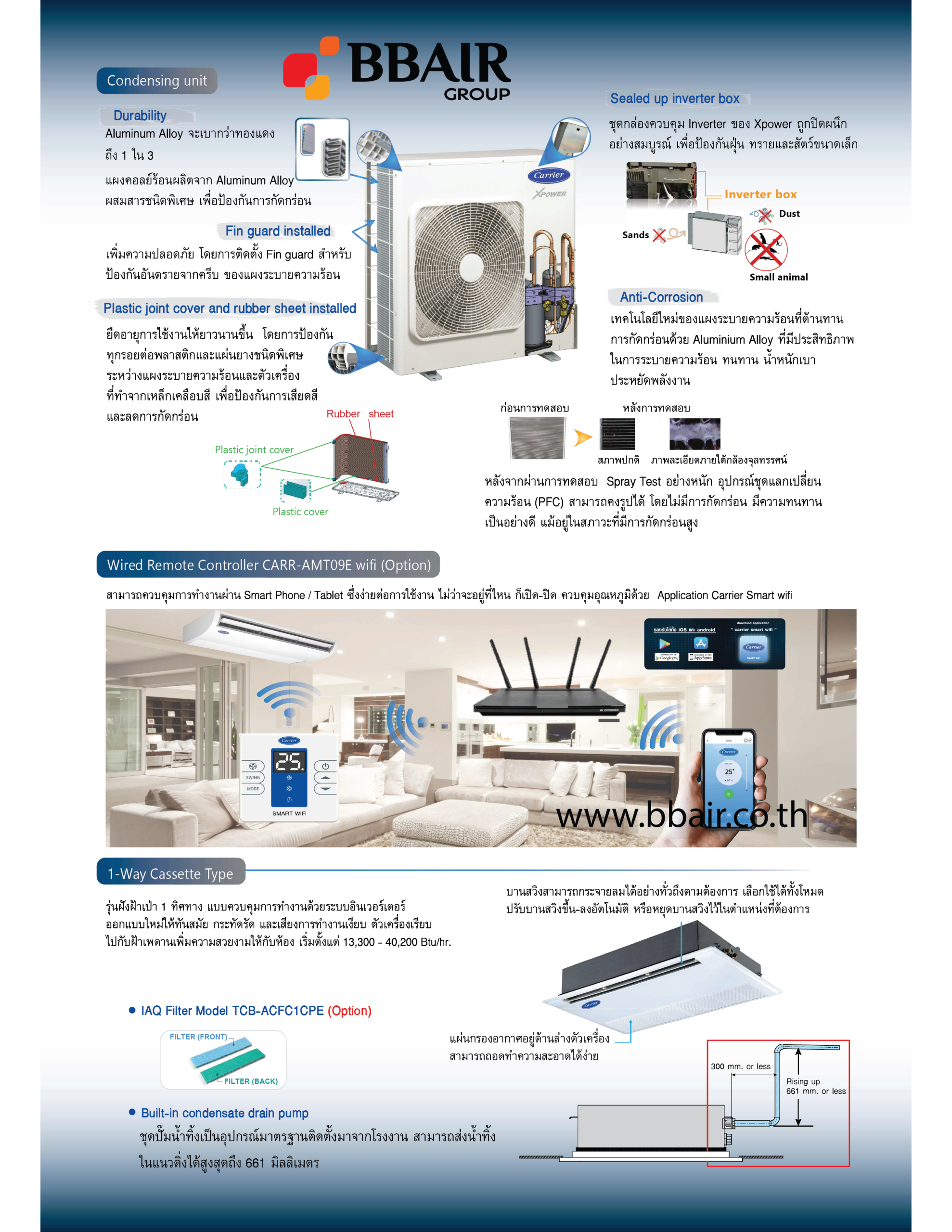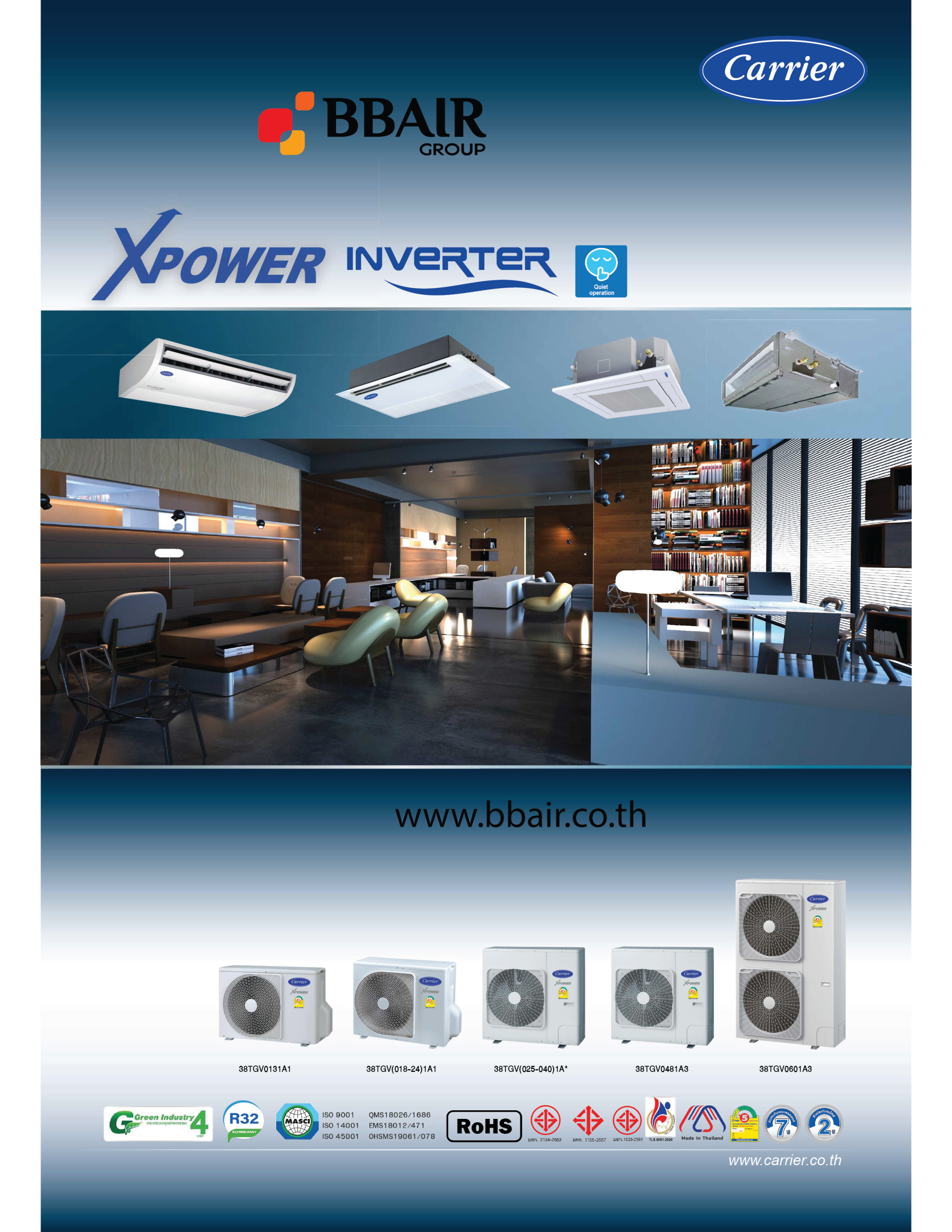 Carrier แบบ 1 ทิศทาง อินเวอร์เตอร์ BGV-UP SERIES น้ำยาแอร์ R-32 ระบบไฟ 220/380 V รีโมทไร้สาย พร้อมติดตั้ง