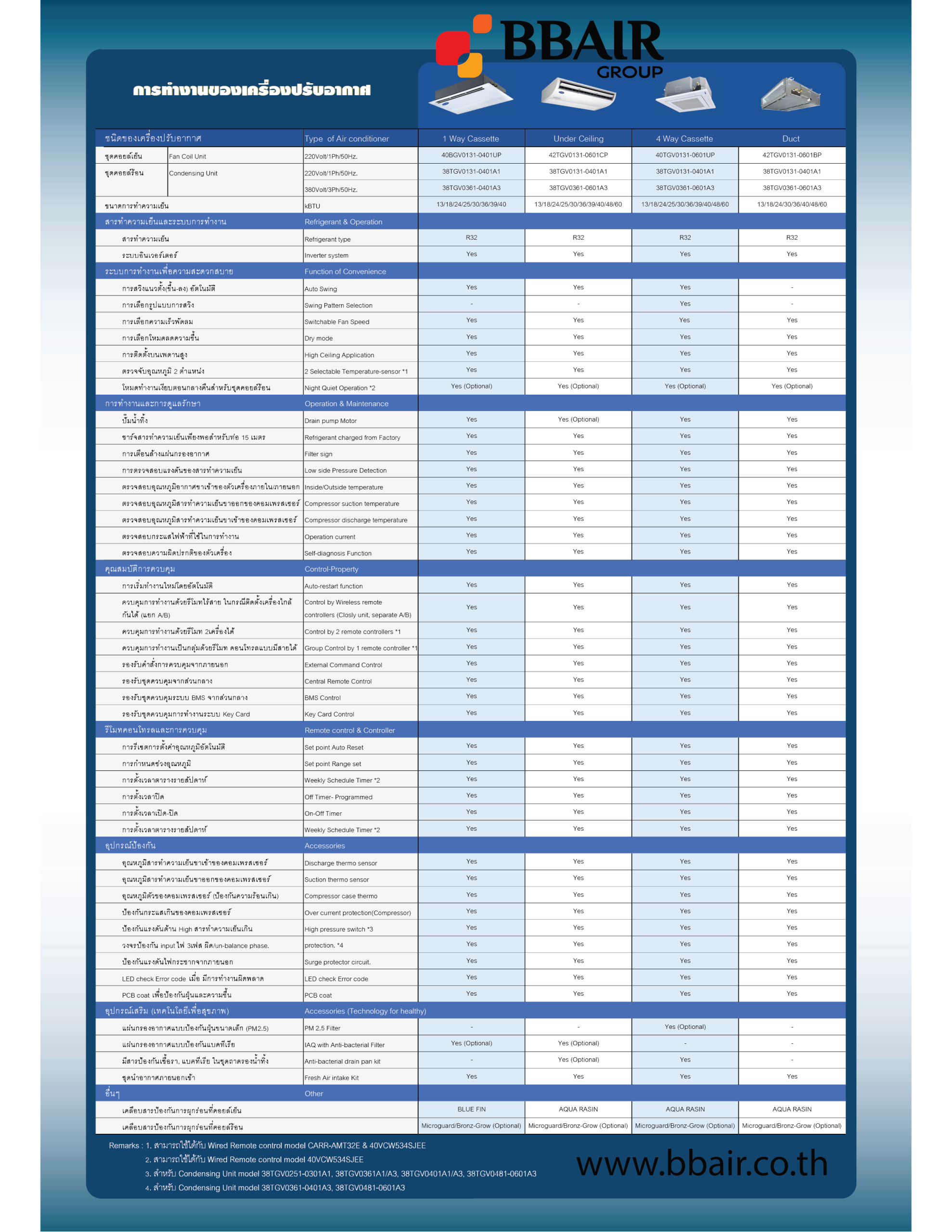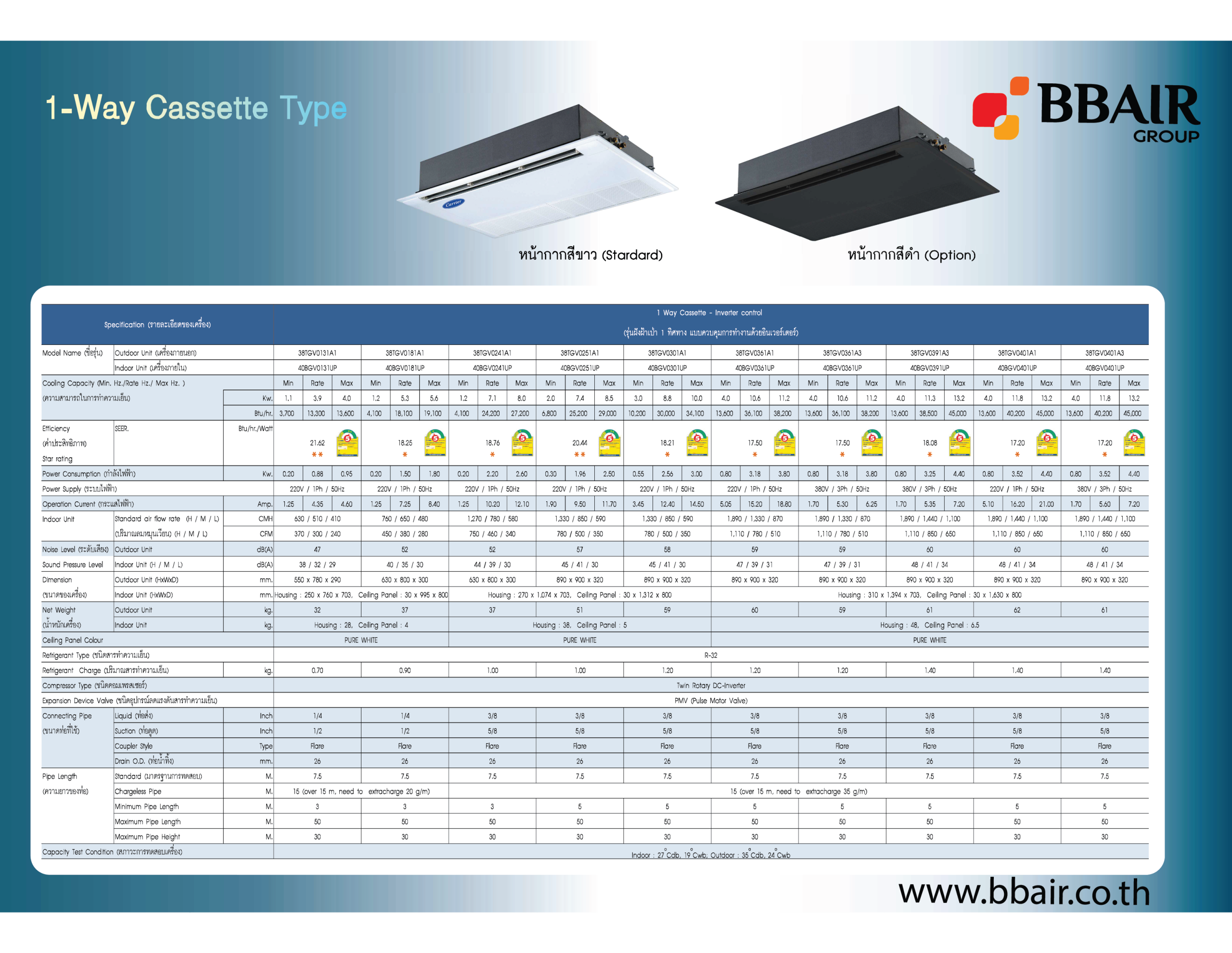 • 40BGV0361UP/38TGV0361A3 ( R-32) ขนาด 36,100 (13,600-38,200) BTU (380 V) รีโมทไร้สาย