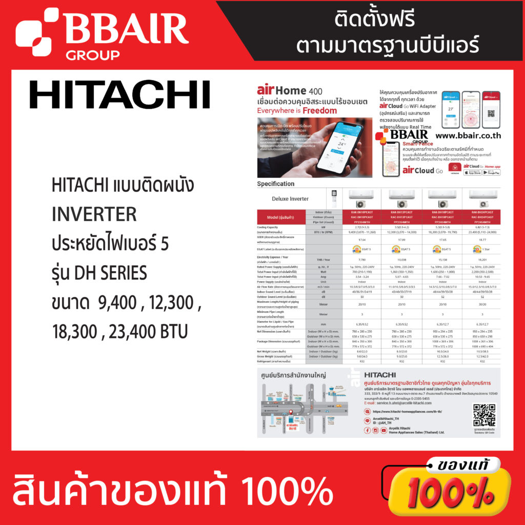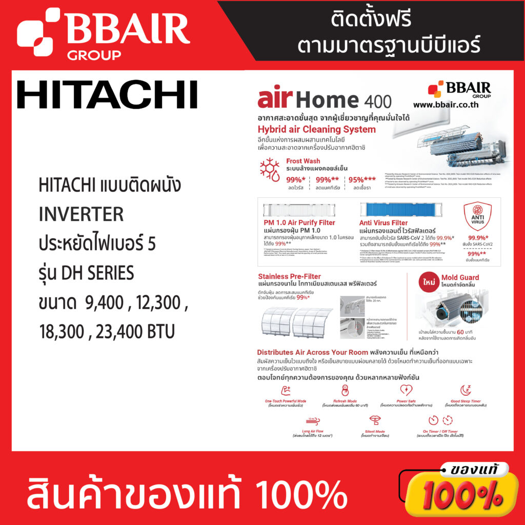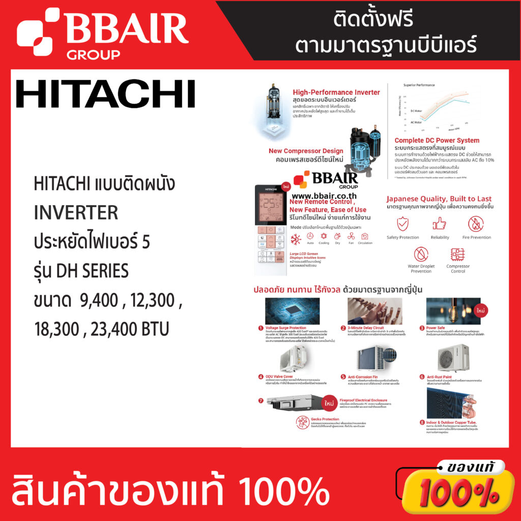 แอร์ฮิตาชิ HITACHI แบบติดผนัง ประหยัดไฟเบอร์ 5 INVERTER รุ่น DH SERIES พร้อมติดตั้ง