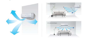 3D Airflowระบบกระจายลมฮัจฉริยะ ช่วยให้ส่งลมได้ทั่วถึงทุกมุมห้อง กระจายความเย็นได้ทั่วทุกพื้นที่การใช้งานมาพร้อมกับบานสวิง ซ้าย-ขวา แบบอัตโนมัติ