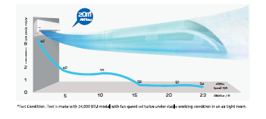 Long Distance Air Supplying ไม่ว่าไกลแค่ไหน ลมเย็นก็ไปถึง ด้วยการออกแบบผิดให้มีการกระจายลมเป็นได้ไกลมากยิ่งขึ้น โดยเฉพาะรุ่น 24,000 ปีมีบูสามารถส่งลมเย็นได้ไกลดึง 20 เมตร
