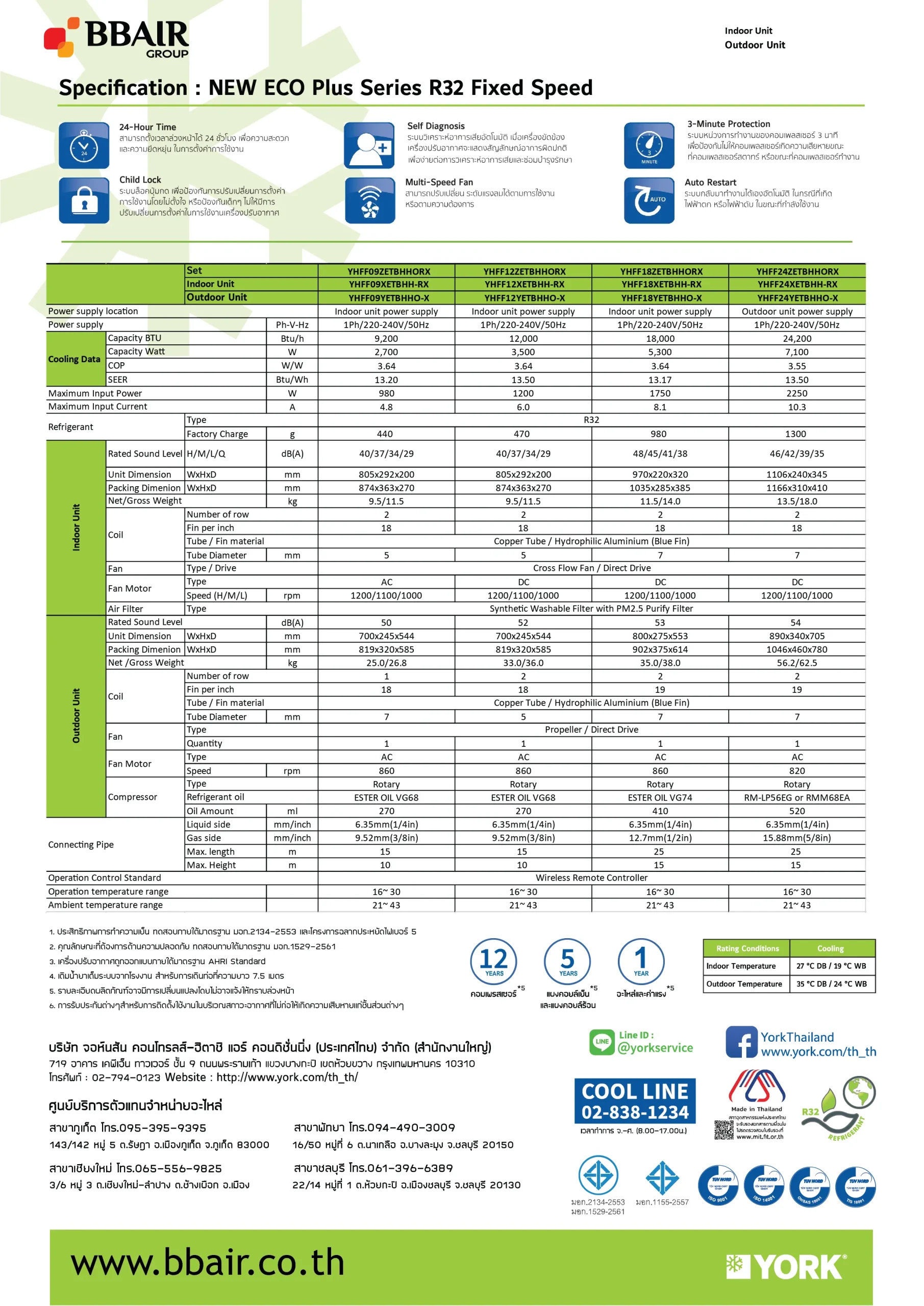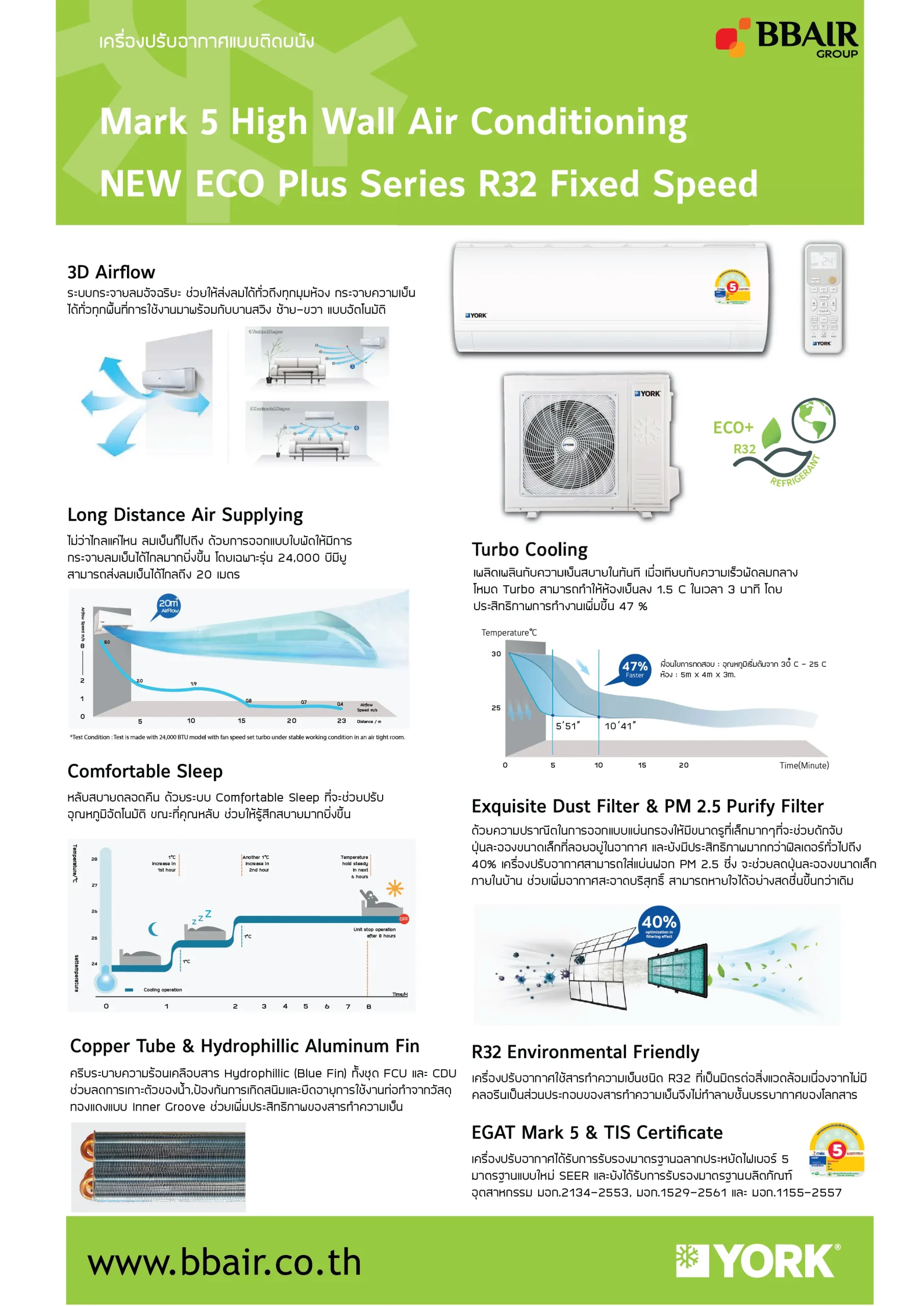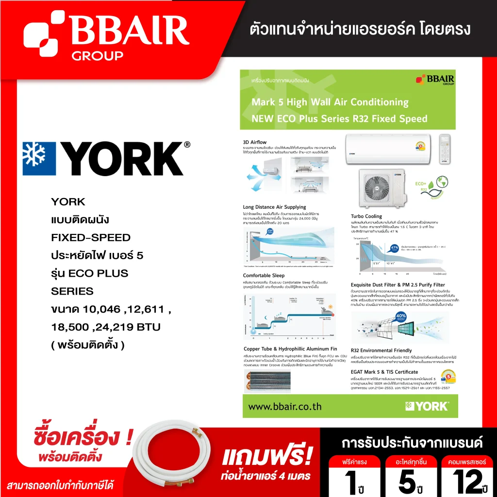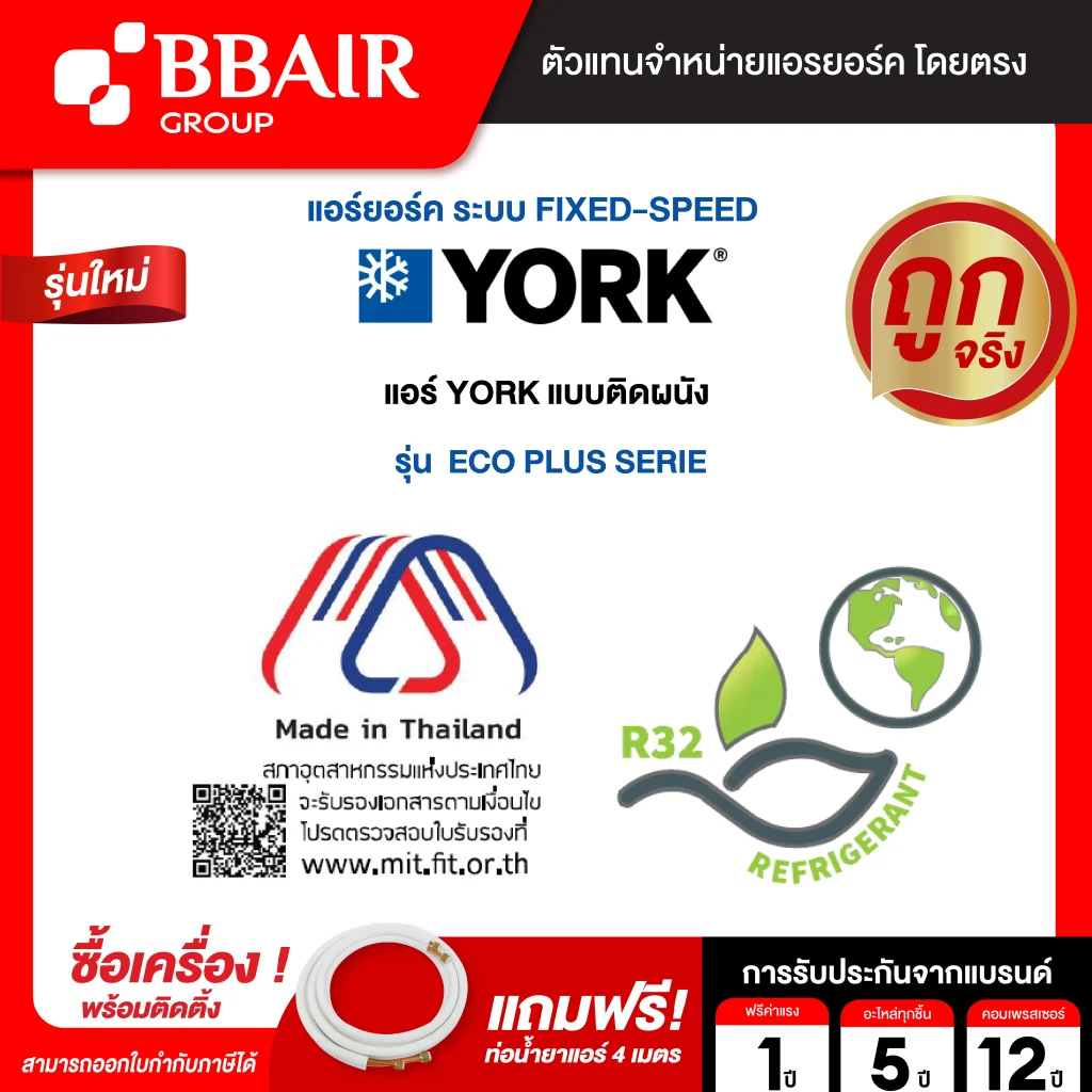 คุณสมบัติสินค้าของแอร์ยอร์ค แบบติดผนัง Eco Plus SERIE น้ำยาแอร์ R-32