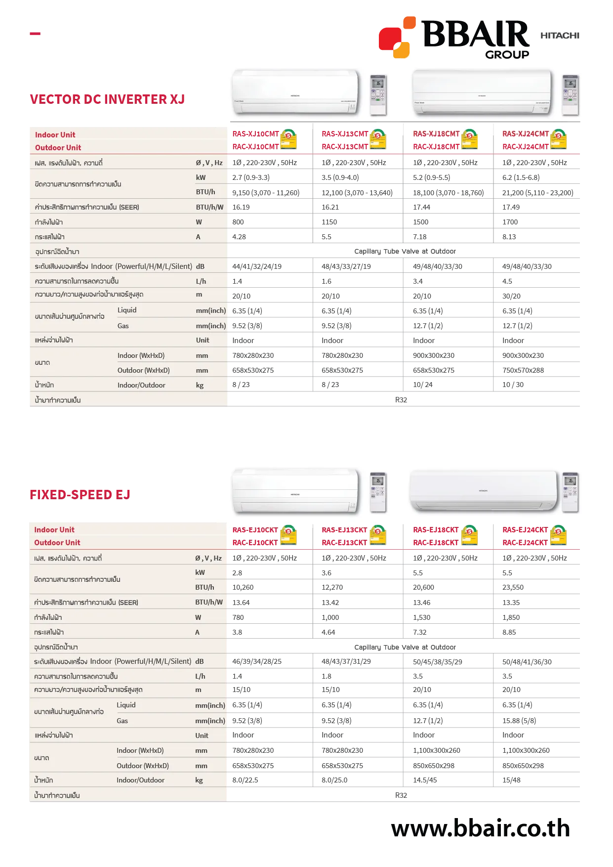 คุณสมบัติสินค้าของแอร์ฮิตาชิ แบบติดผนัง FIXED SPEED EJ SERIES น้ำยาแอร์ R-32