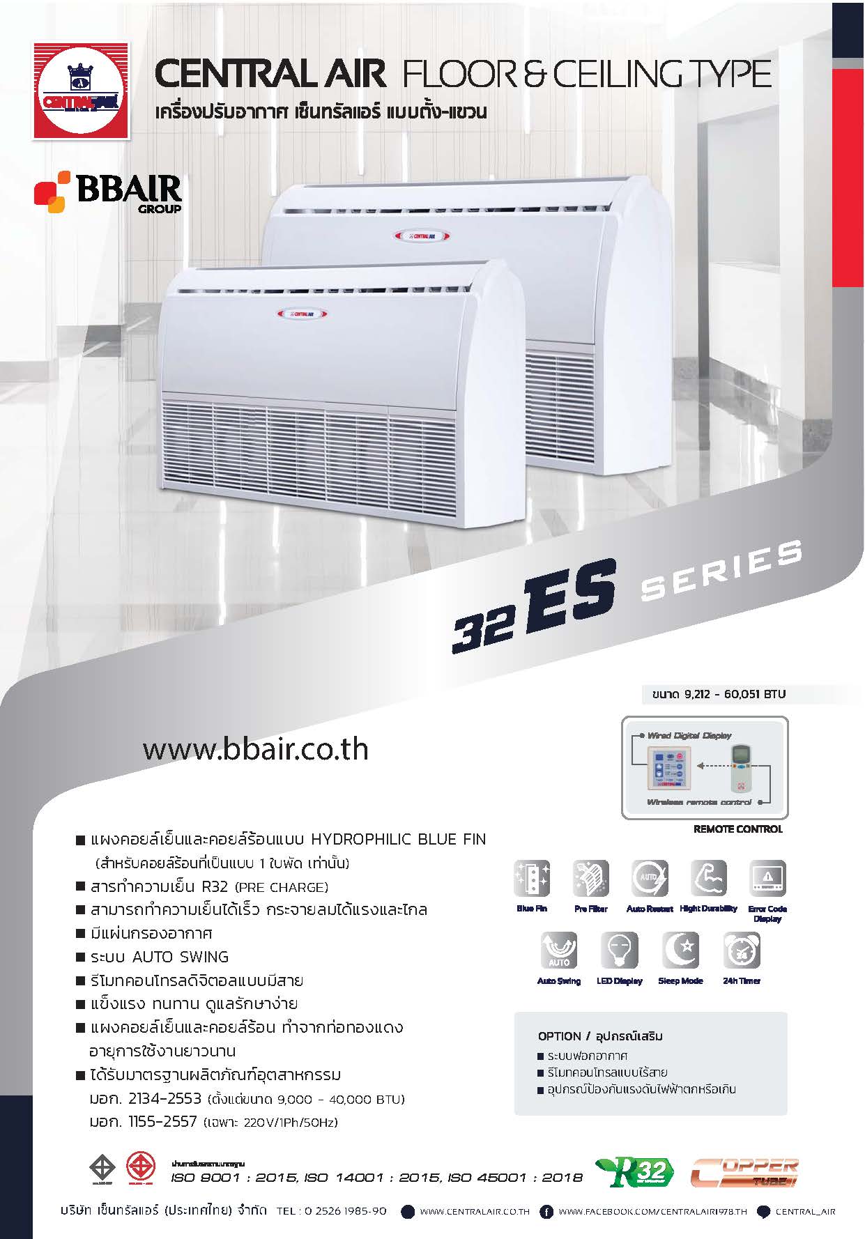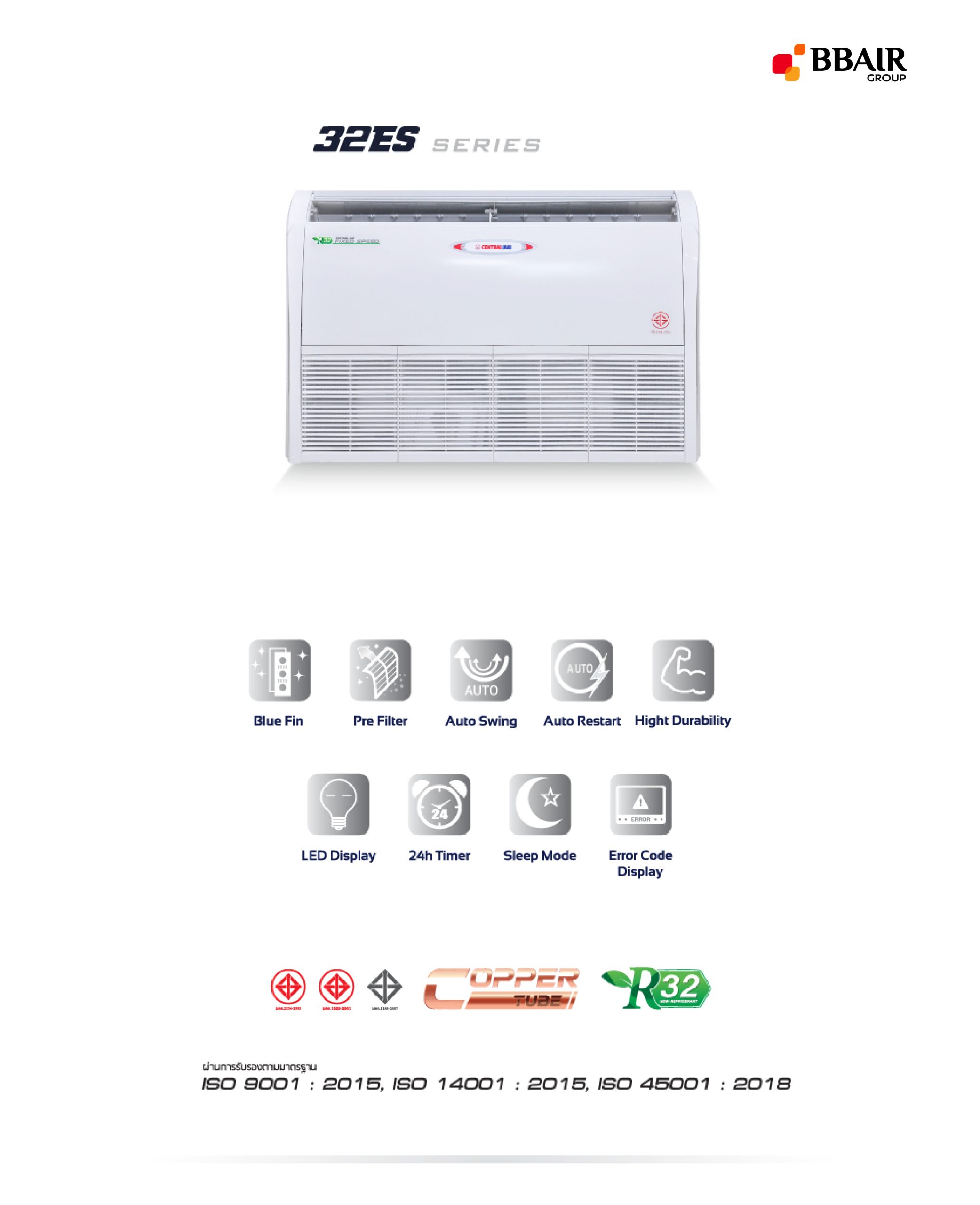คุณสมบัติสินค้าของเซ็นทรัลแอร์ แบบแขวน มอก. 32 ES SERIES  น้ำยาแอร์ R-32