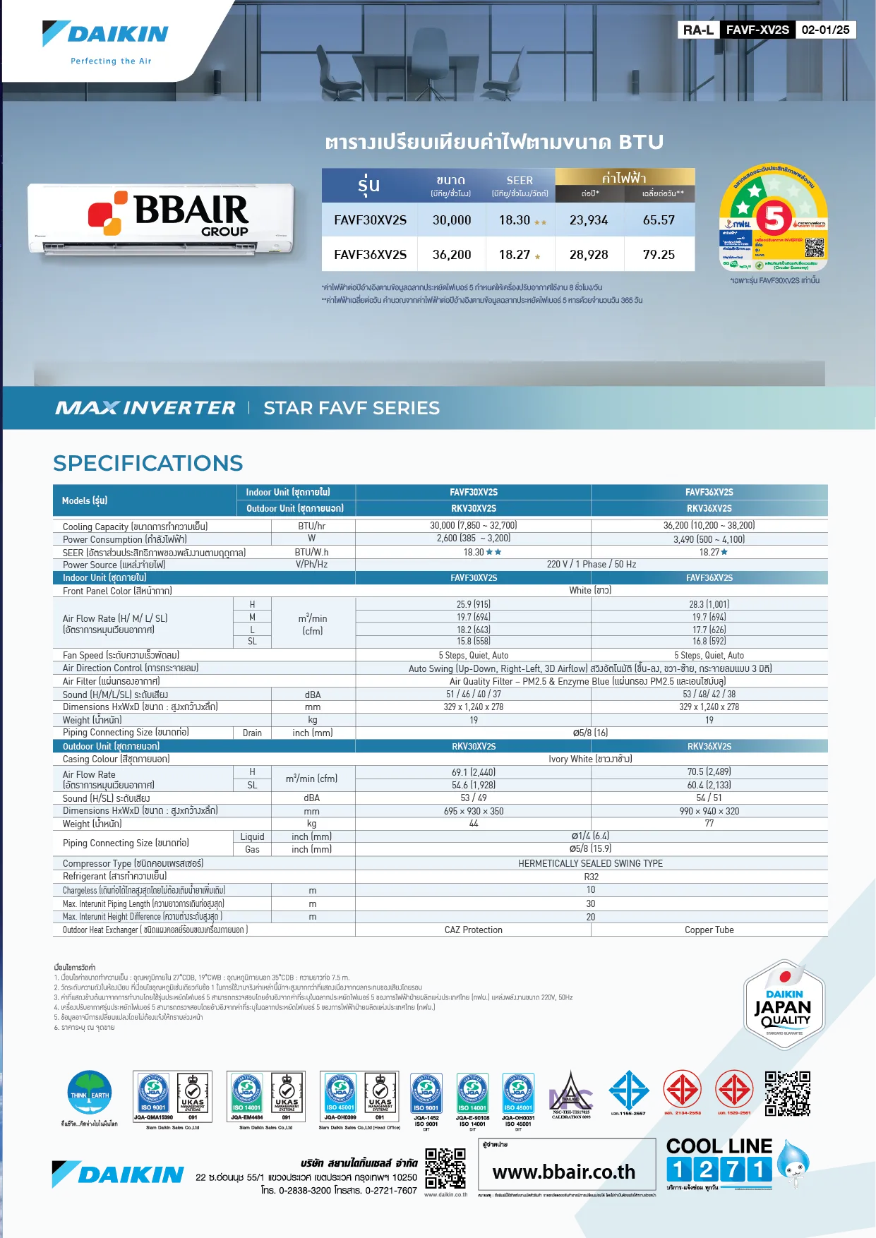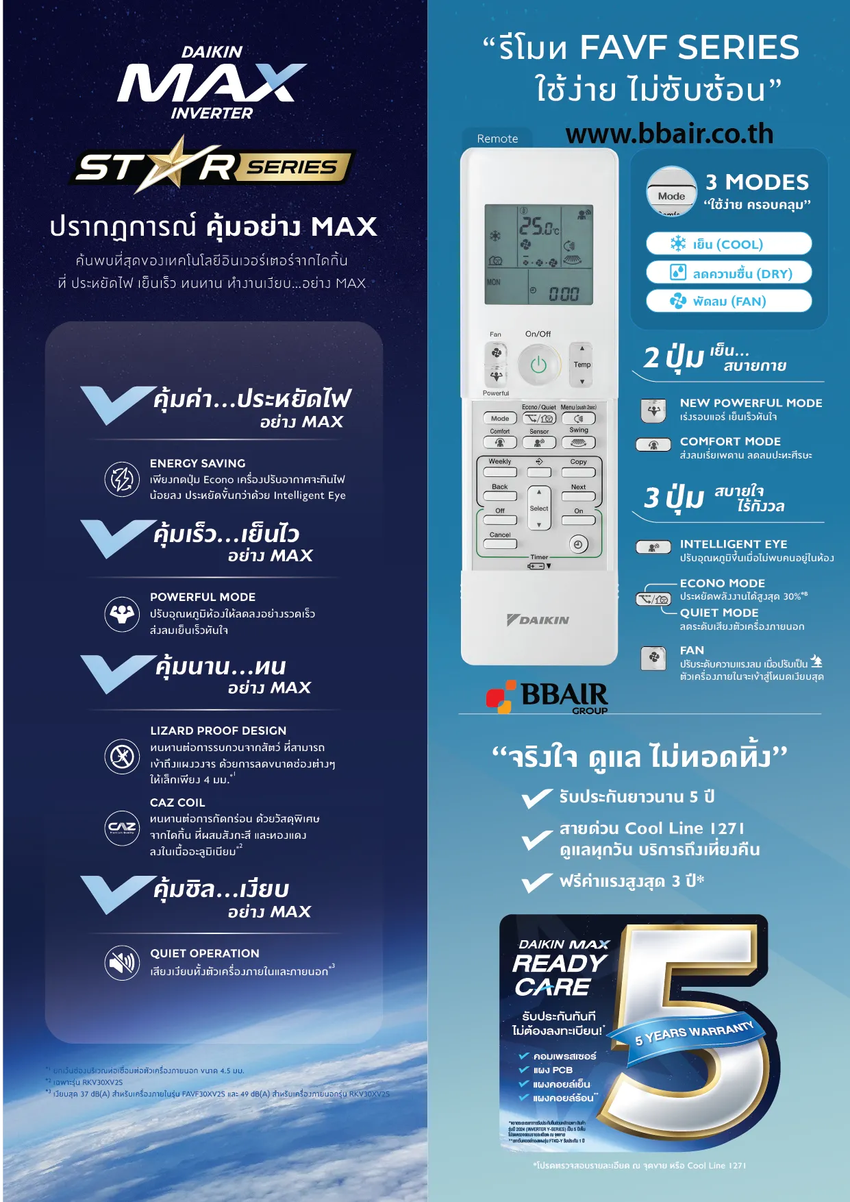 DAIKIN แบบติดผนัง อินเวอร์เตอร์ MAX INVERTER FAVF-XV SERIES