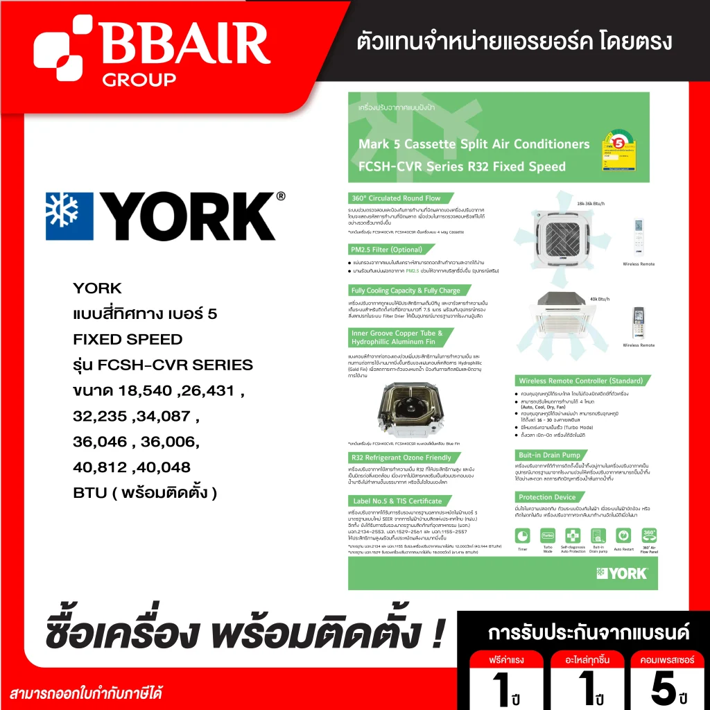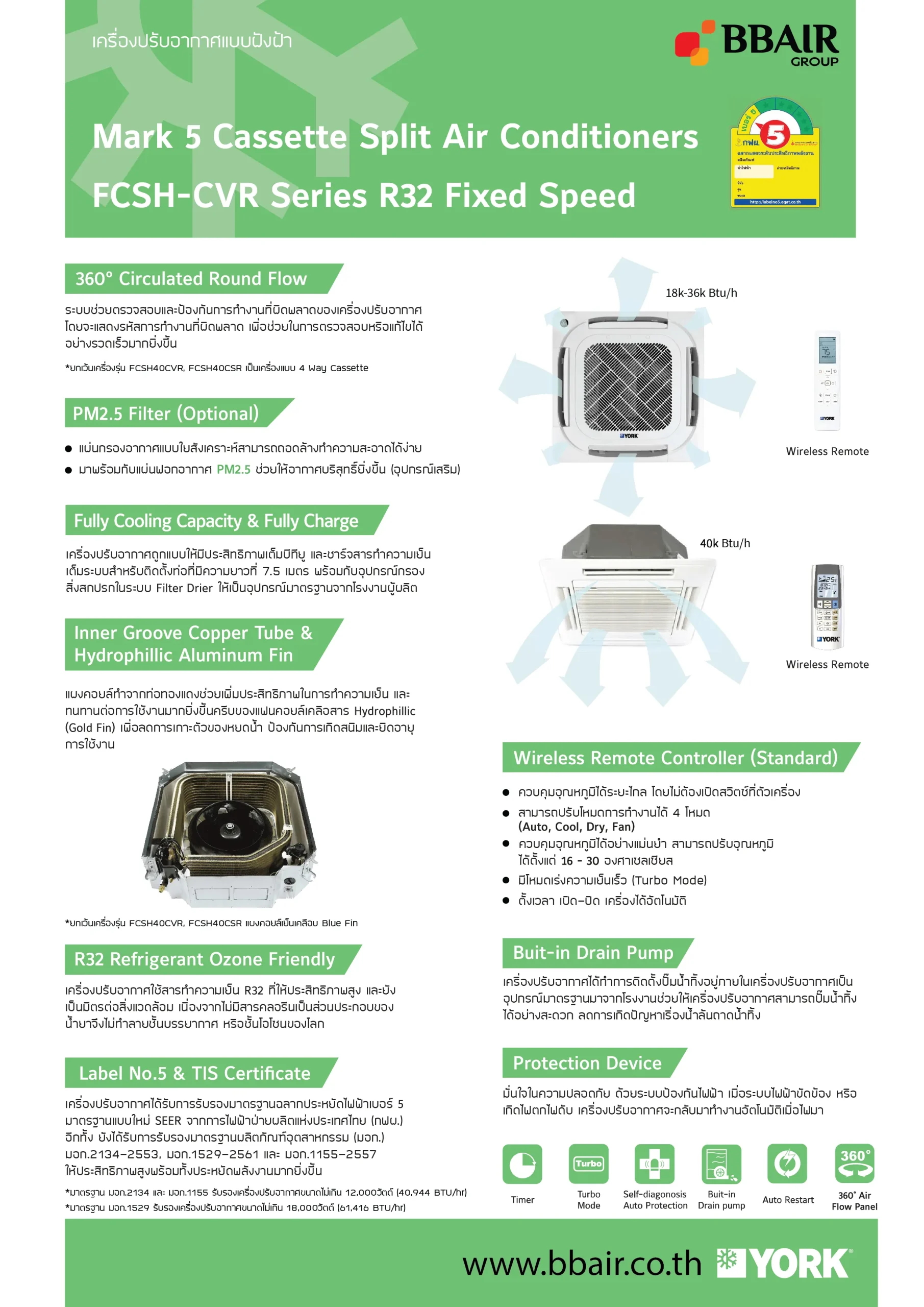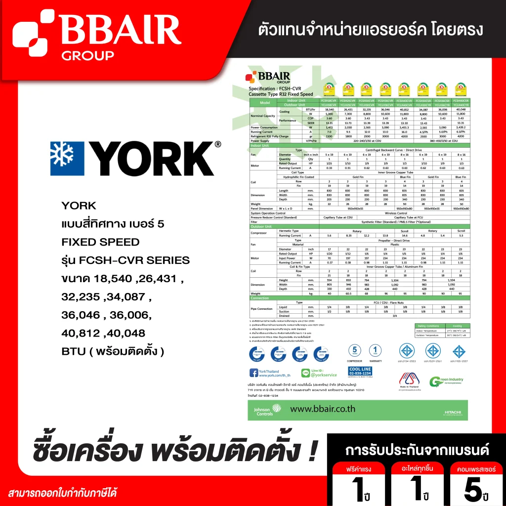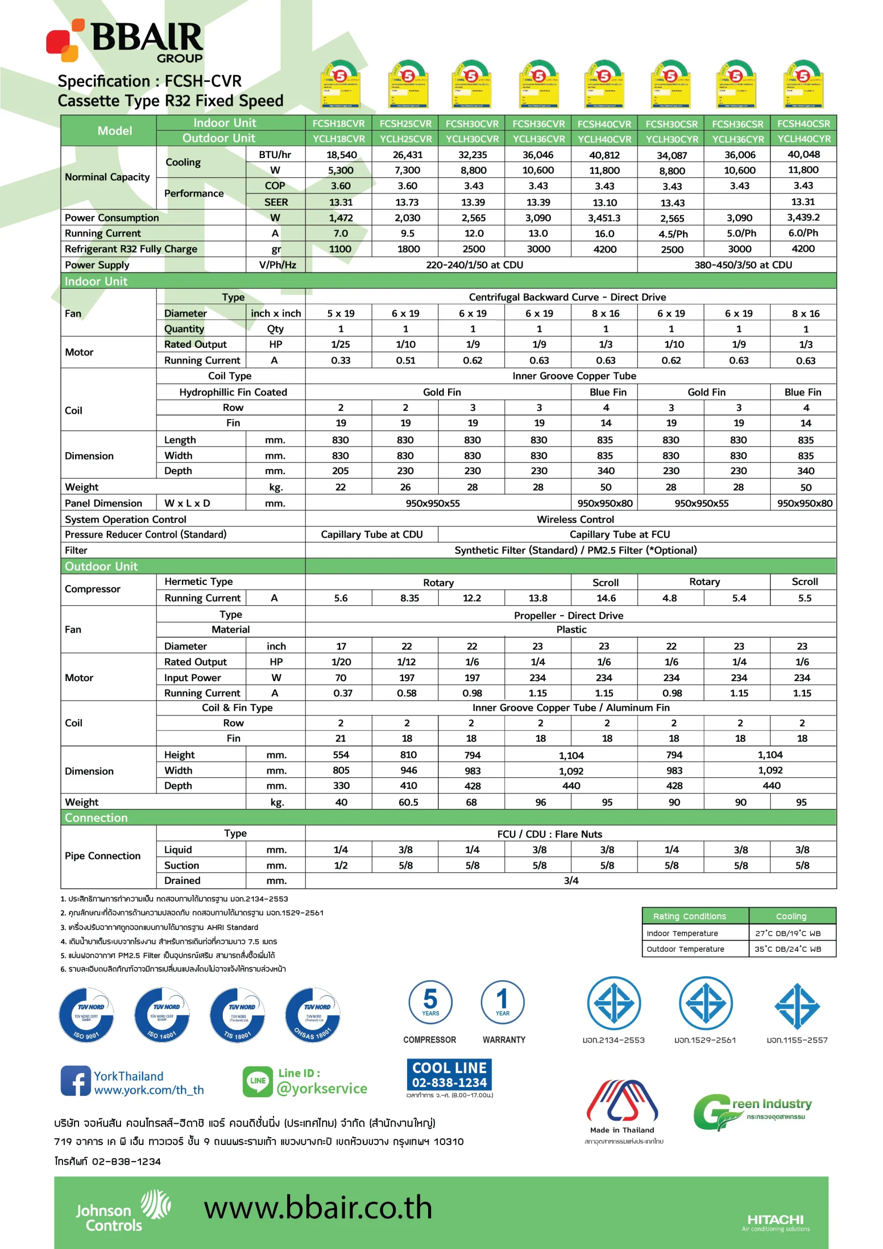 คุณสมบัติสินค้าของแอร์ยอร์ค แบบสี่ทิศทาง เบอร์ 5 FCSH-CVR SERIES น้ำยาแอร์ R-32