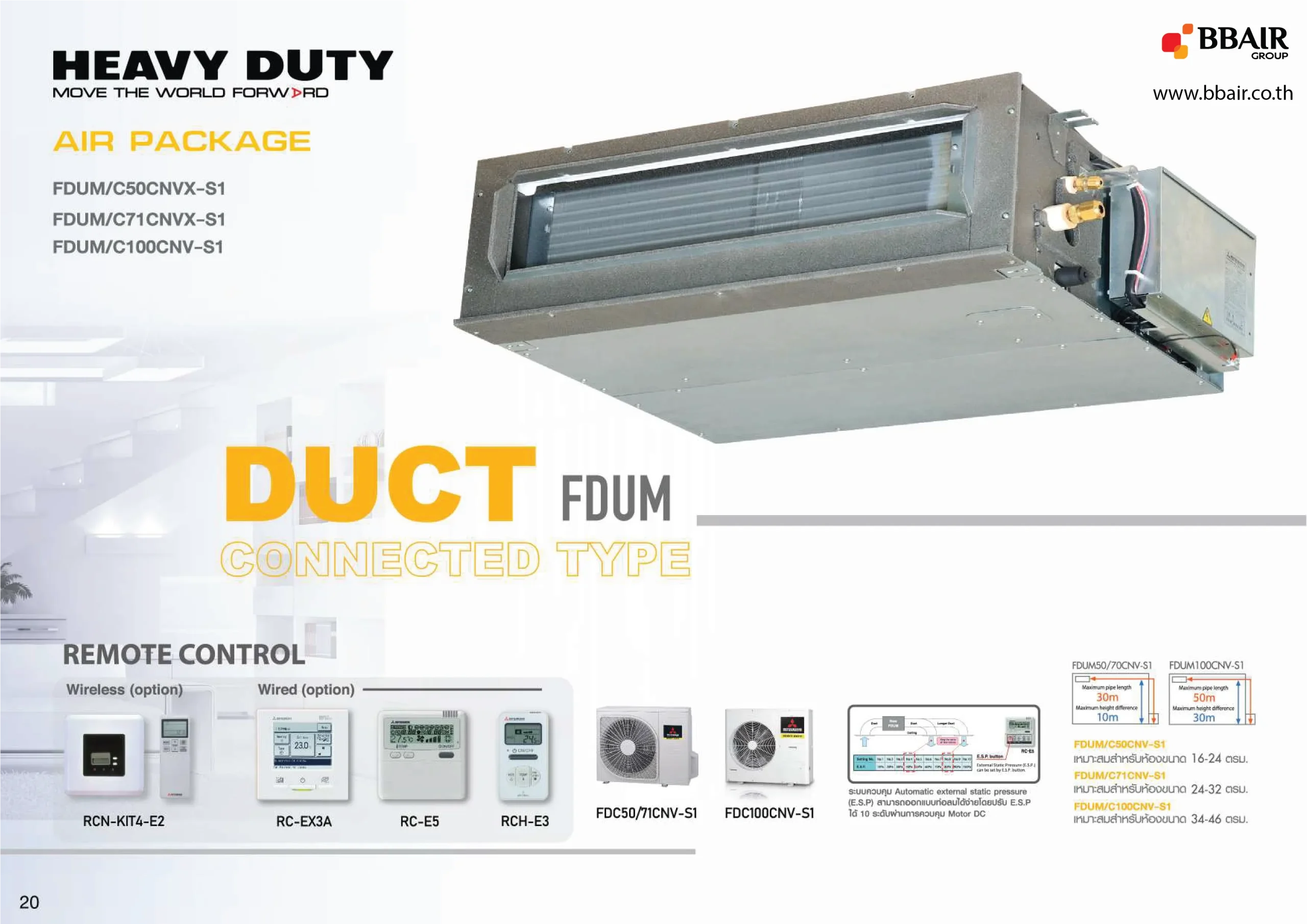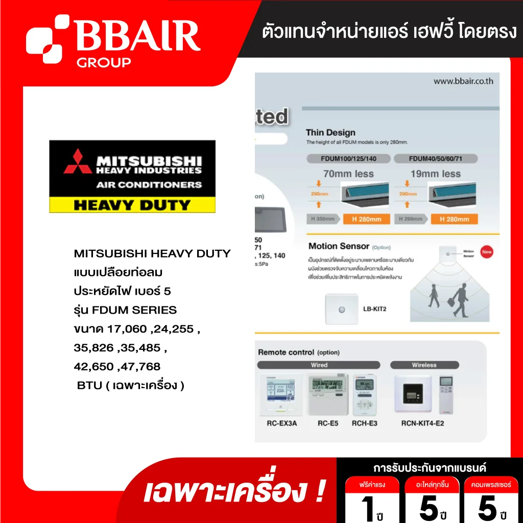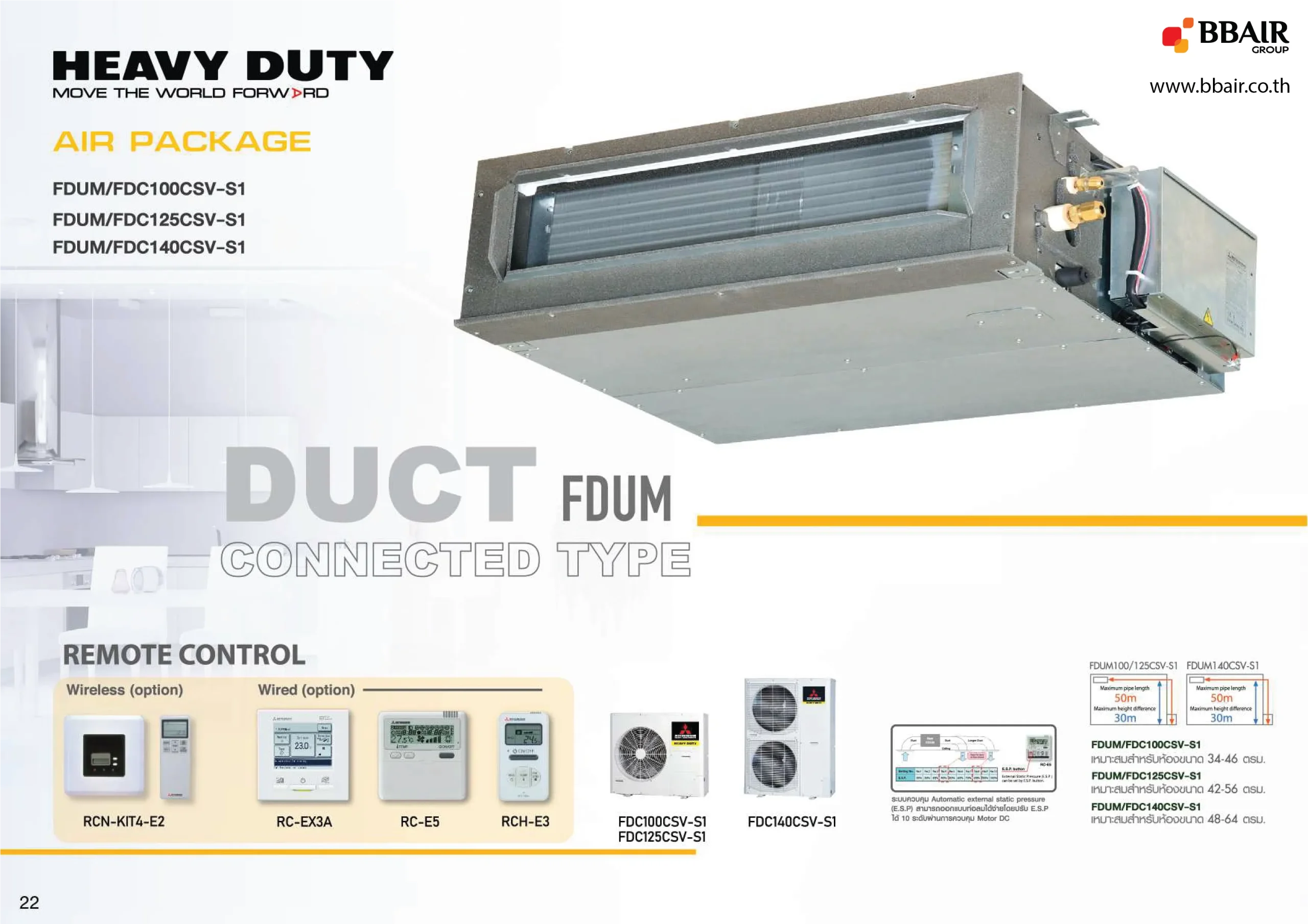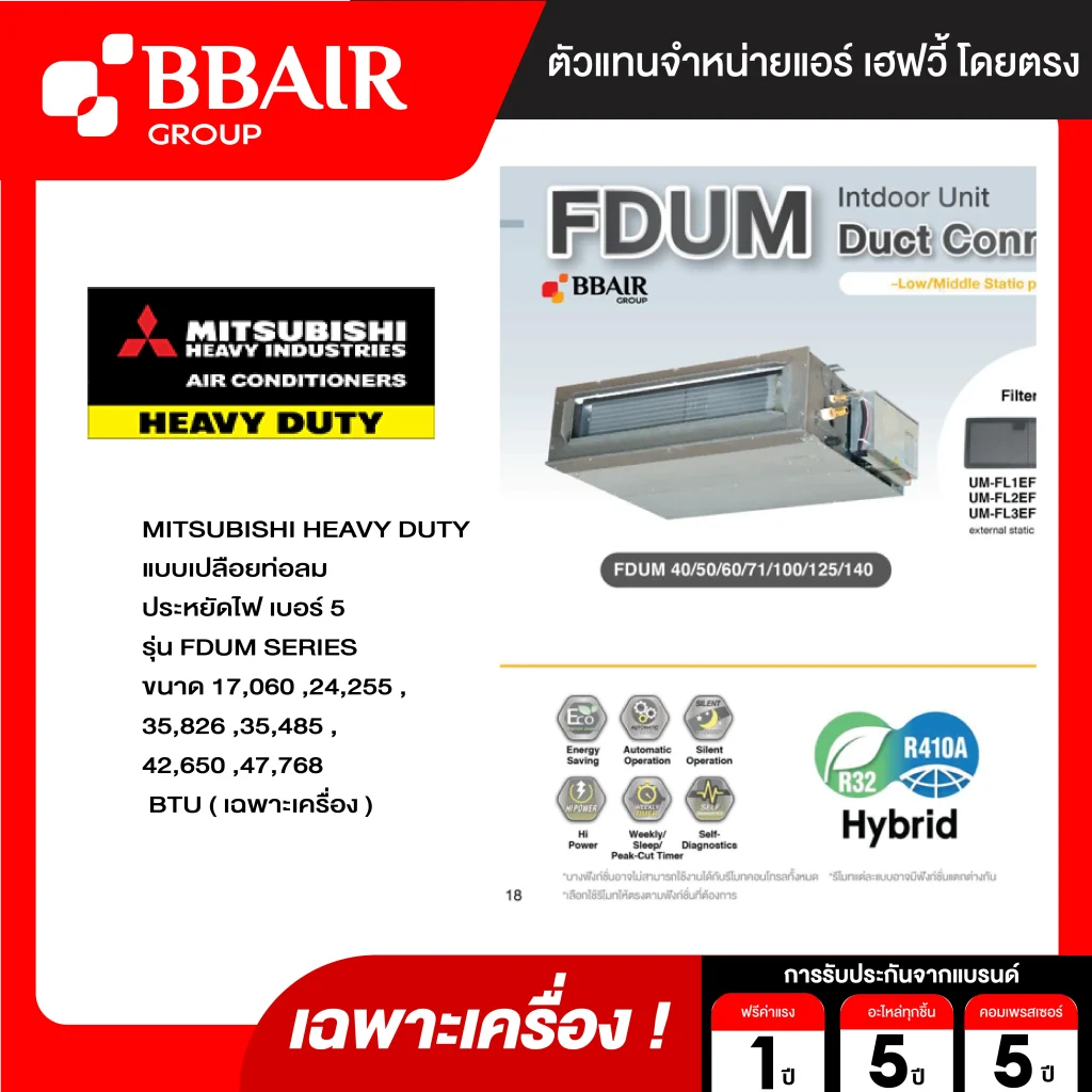คุณสมบัติสินค้าของแอร์มิตซูบิชิ เฮฟวีดิวตี้ Mitsubishi Heavy Duty แบบเปลือยท่อลม FDUM SERIES FDT-CRS น้ำยาแอร์ R-410A