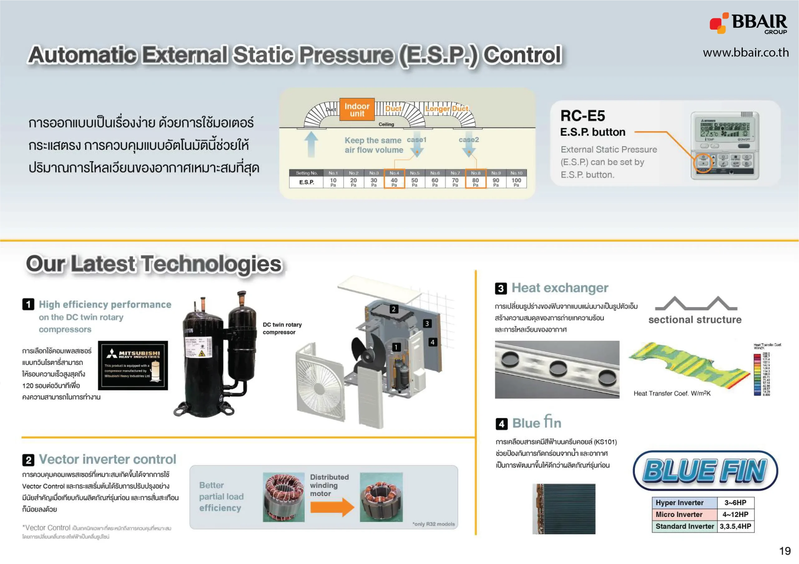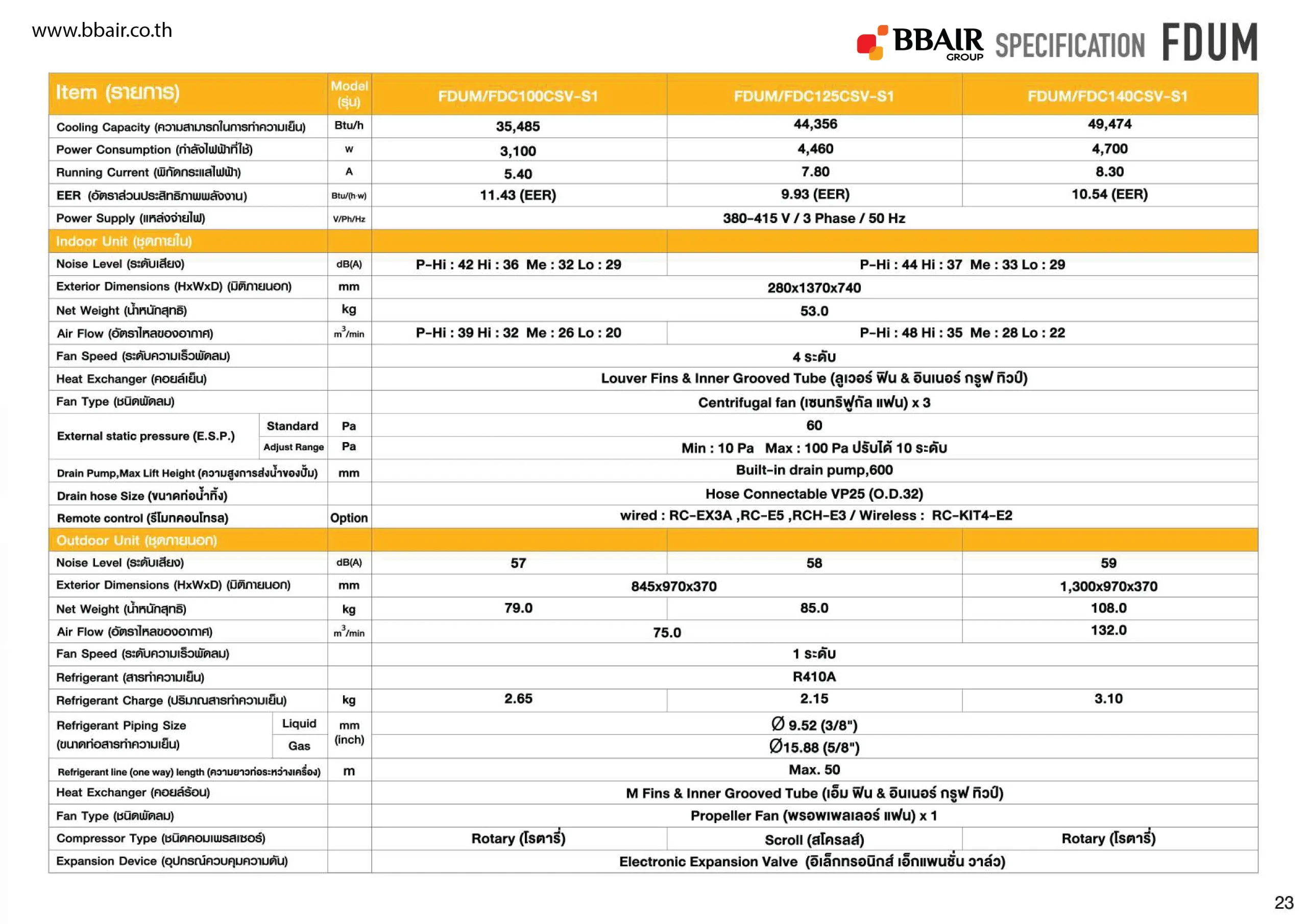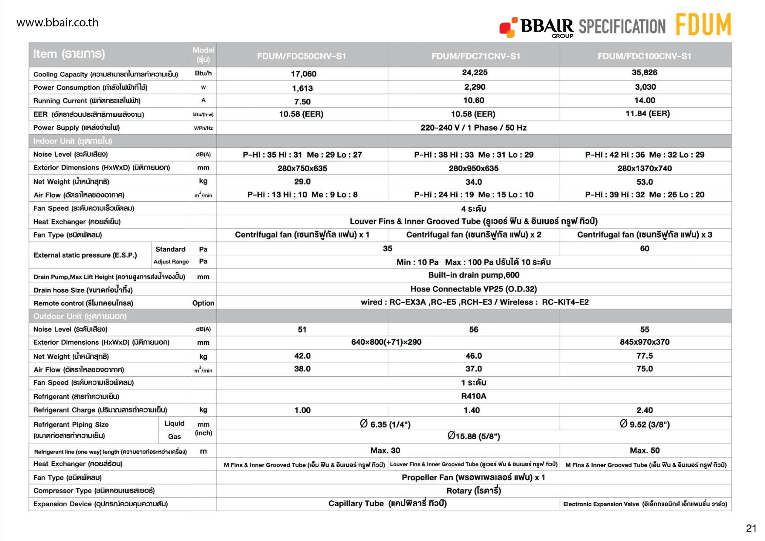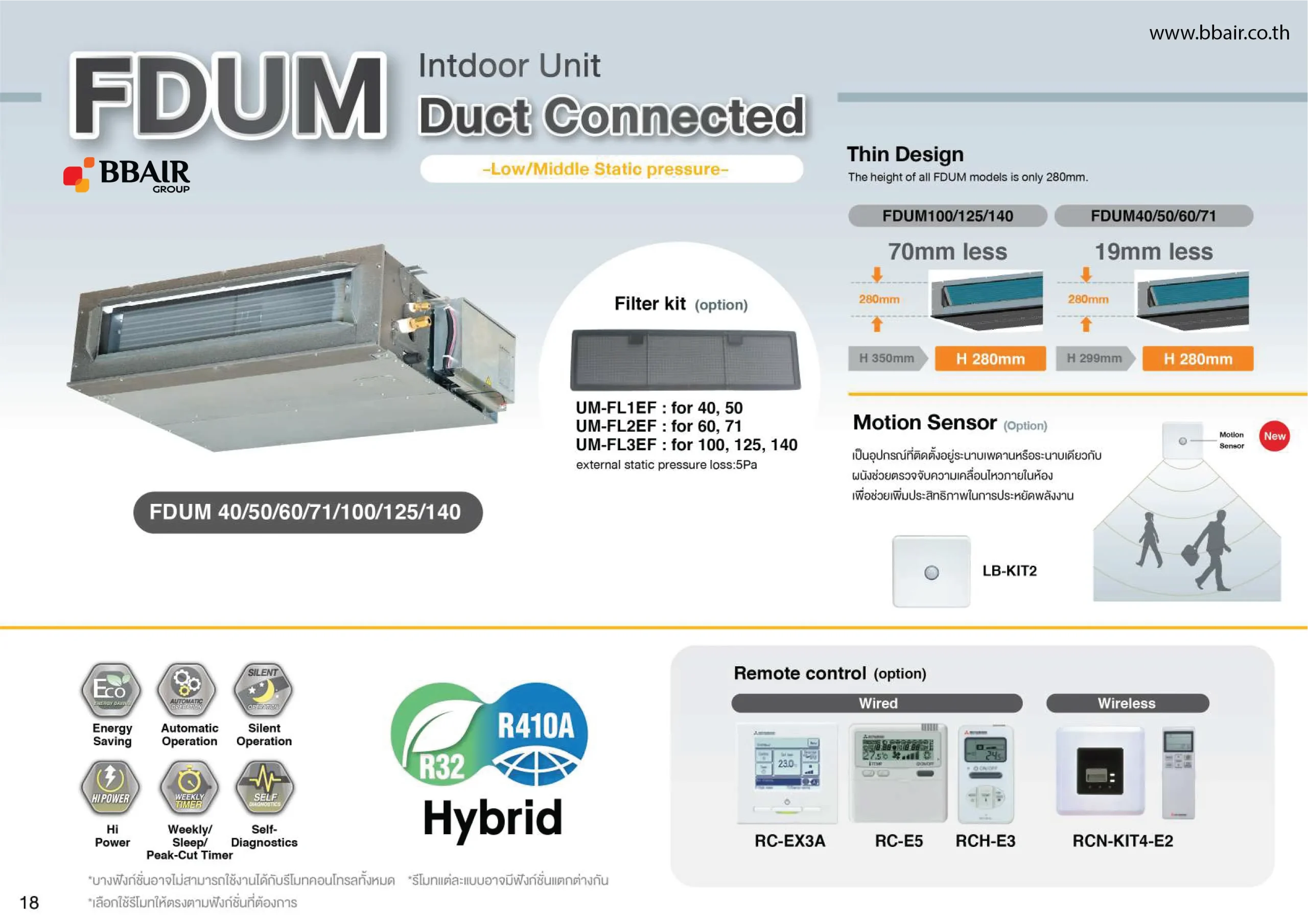 คุณสมบัติสินค้าของแอร์มิตซูบิชิ เฮฟวีดิวตี้ Mitsubishi Heavy Duty แบบเปลือยท่อลม FDUM SERIES FDT-CRS น้ำยาแอร์ R-410A