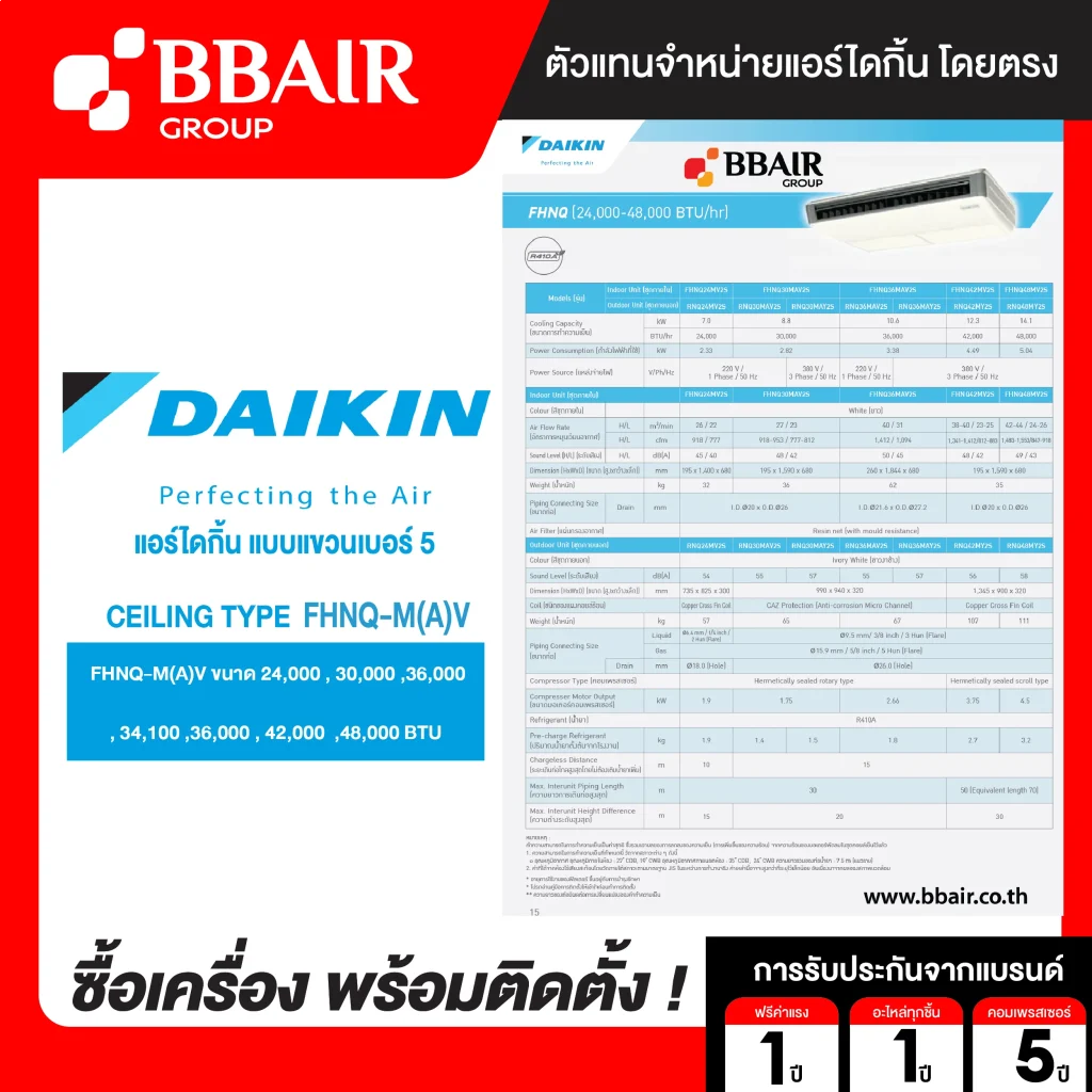 คุณสมบัติสินค้าของแอร์ไดกิ้น แบบแขวนใต้ฝ้า มอก. FHNQ-M(A)V น้ำยาแอร์ R-410