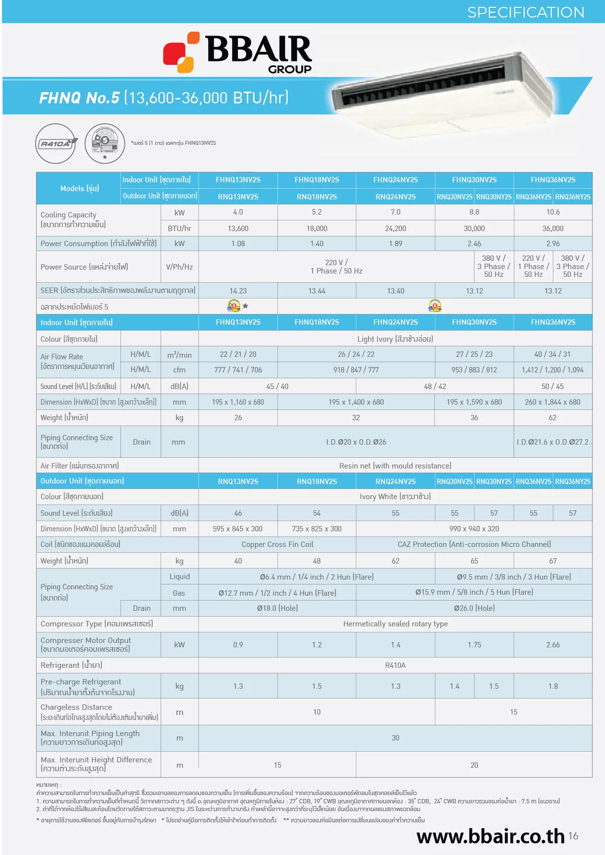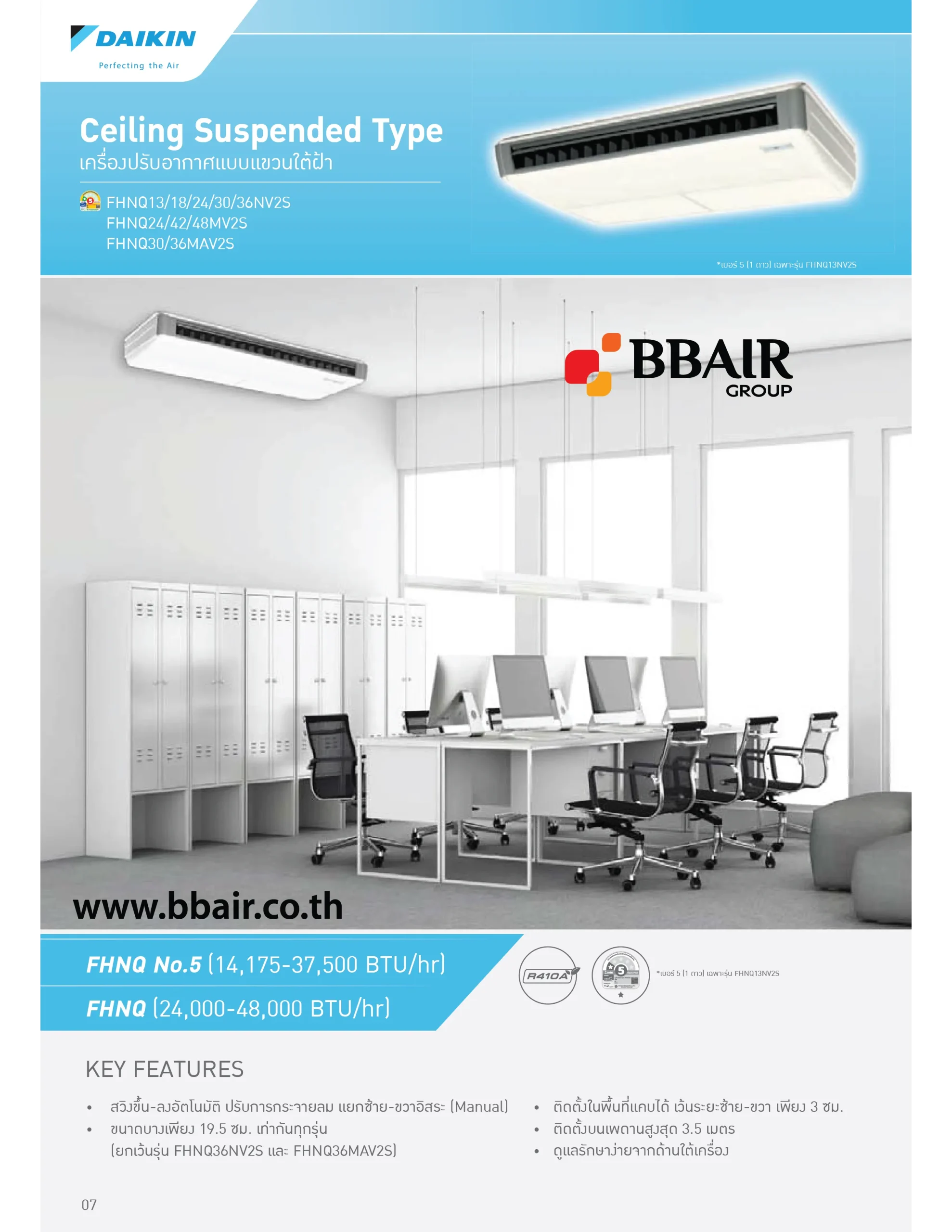 คุณสมบัติสินค้าของแอร์ไดกิ้น แบบแขวนเบอร์ 5 FHNQ-NV2S น้ำยาแอร์ R-410