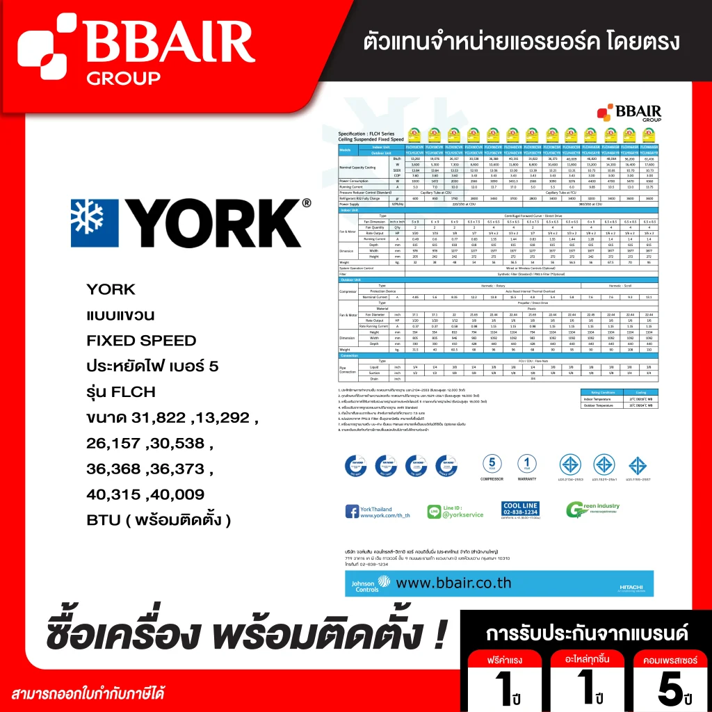 แอร์ยอร์ค แบบแขวน ประหยัดไฟเบอร์ 5 FLCH SERIES น้ำยาแอร์ R-32 พร้อมติดตั้ง