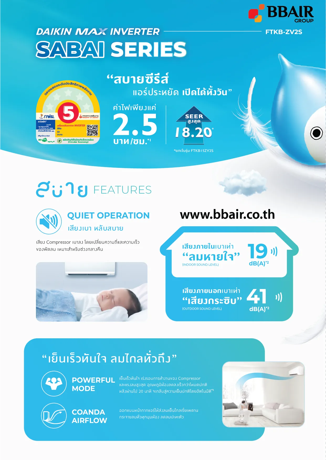 MAX INVERTER SABAI SERIES FTKB-ZV2S แมกซ์ อินเวอร์เตอร์ สบาย ซีรีส์ FTKB-ZV2S