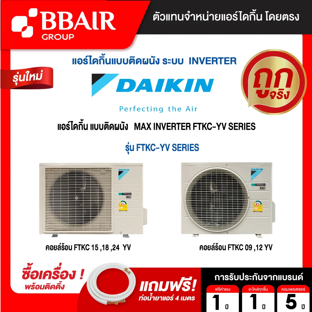 ขนาด 36,000 BTU ส่วนเกินคิดเมตรละ 850 บาท