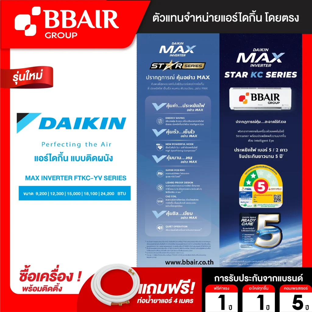 คุณสมบัติสินค้าของแอร์ไดกิ้น แบบติดผนัง อินเวอร์เตอร์ MAX Inverter Sereis น้ำยาแอร์ R-32