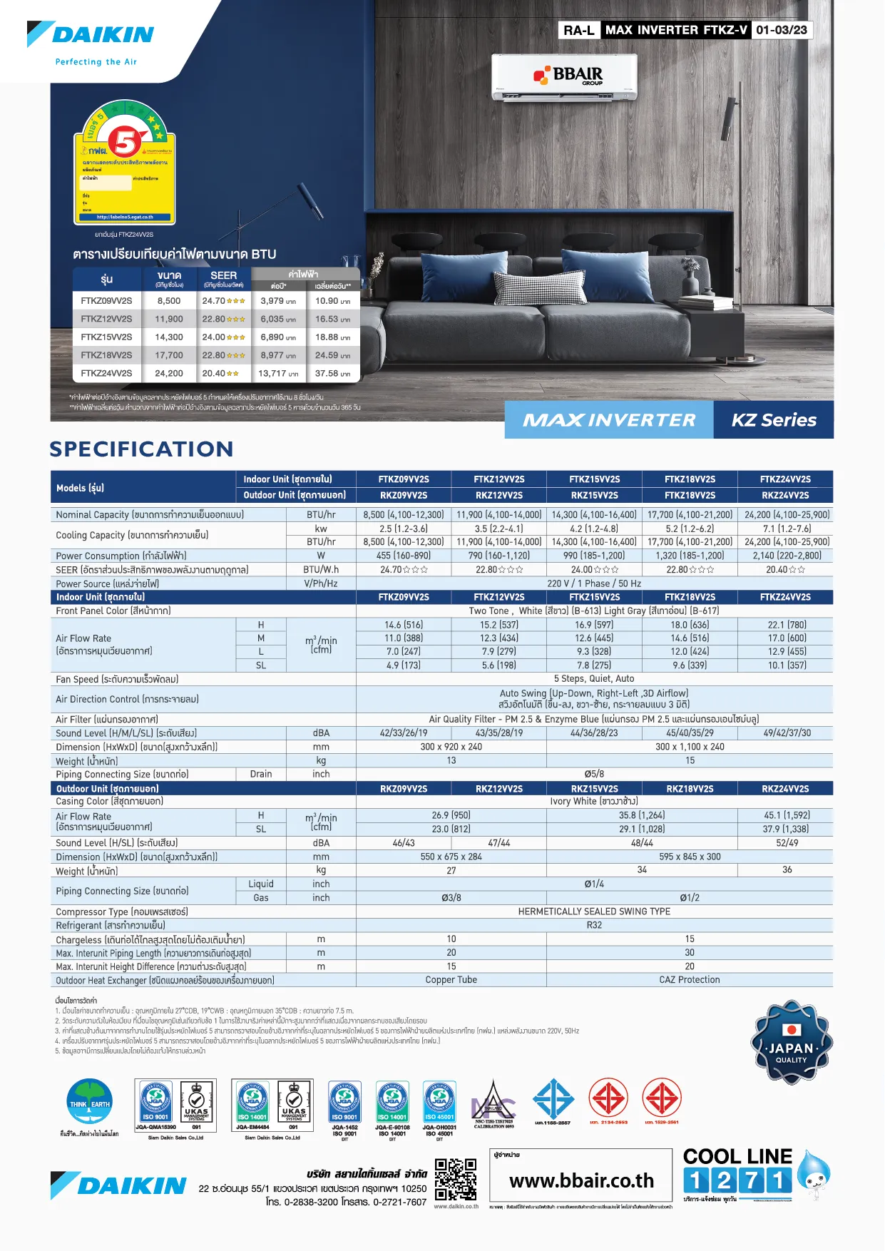 *3 เฉพาะรุ่น FTKZ09/12VV2S