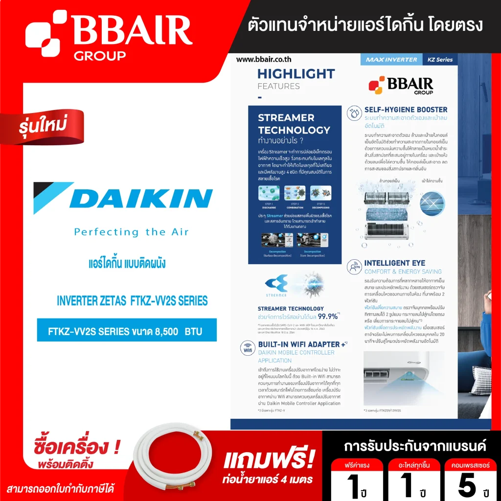 คุณสมบัติสินค้าของแอร์ไดกิ้น แบบติดผนัง อินเวอร์เตอร์ FTKZ-VV2S SERIES น้ำยาแอร์ R-32