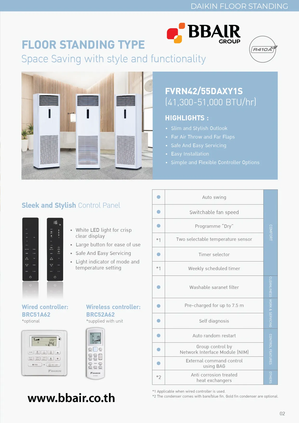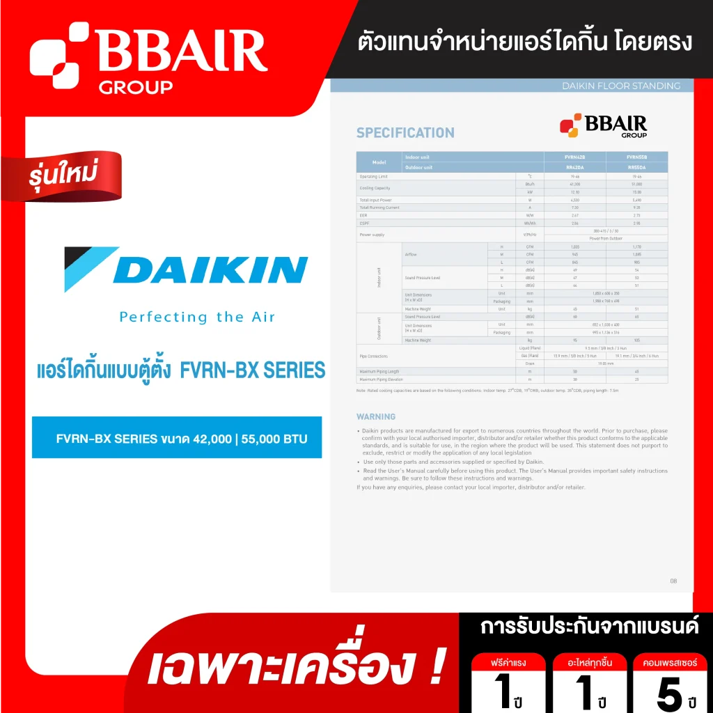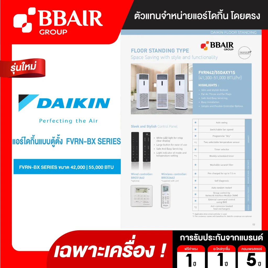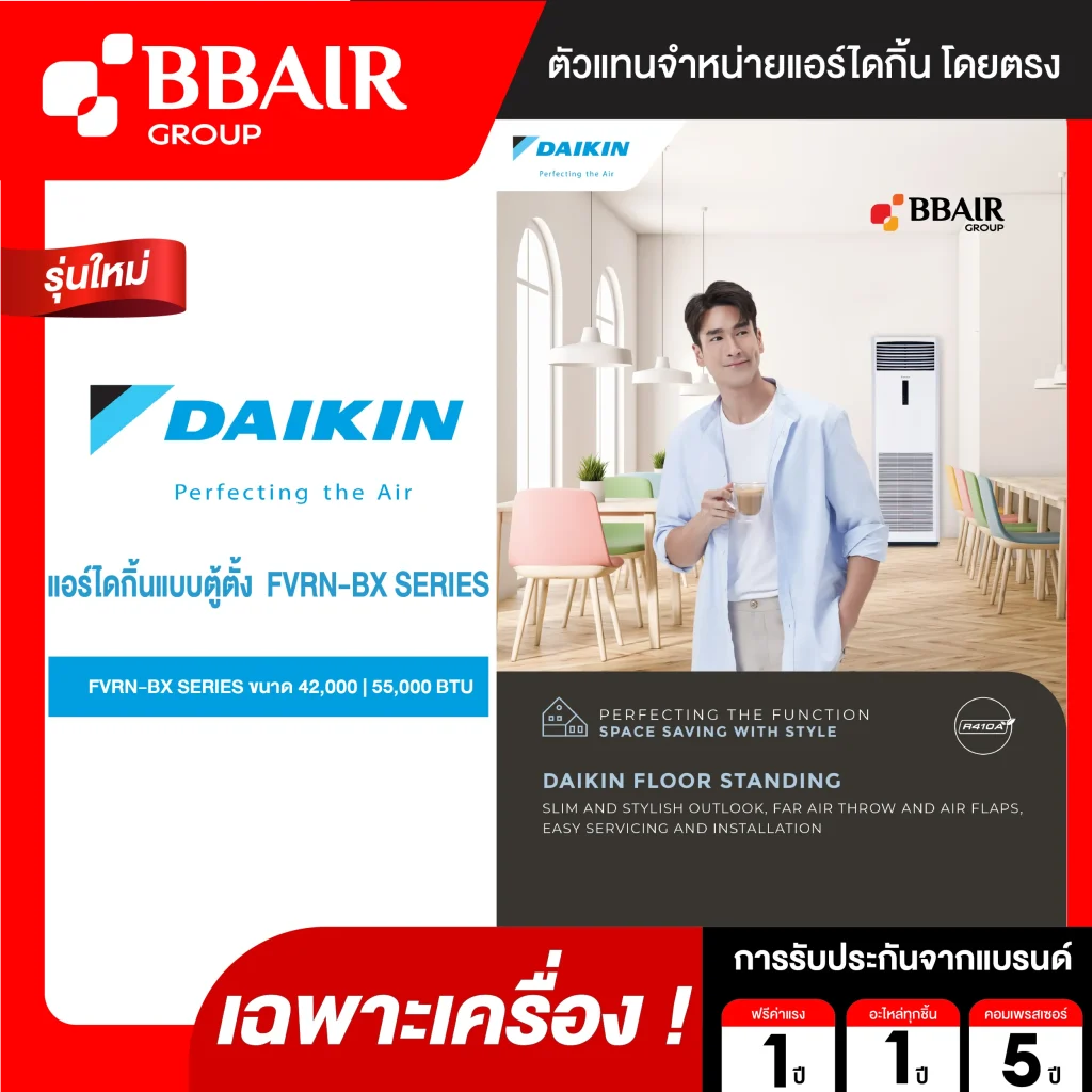 คุณสมบัติสินค้าของแอร์ไดกิ้น Daikin แบบตู้ตั้ง รุ่น FVRN-BX SERIES น้ำยาแอร์ R-410