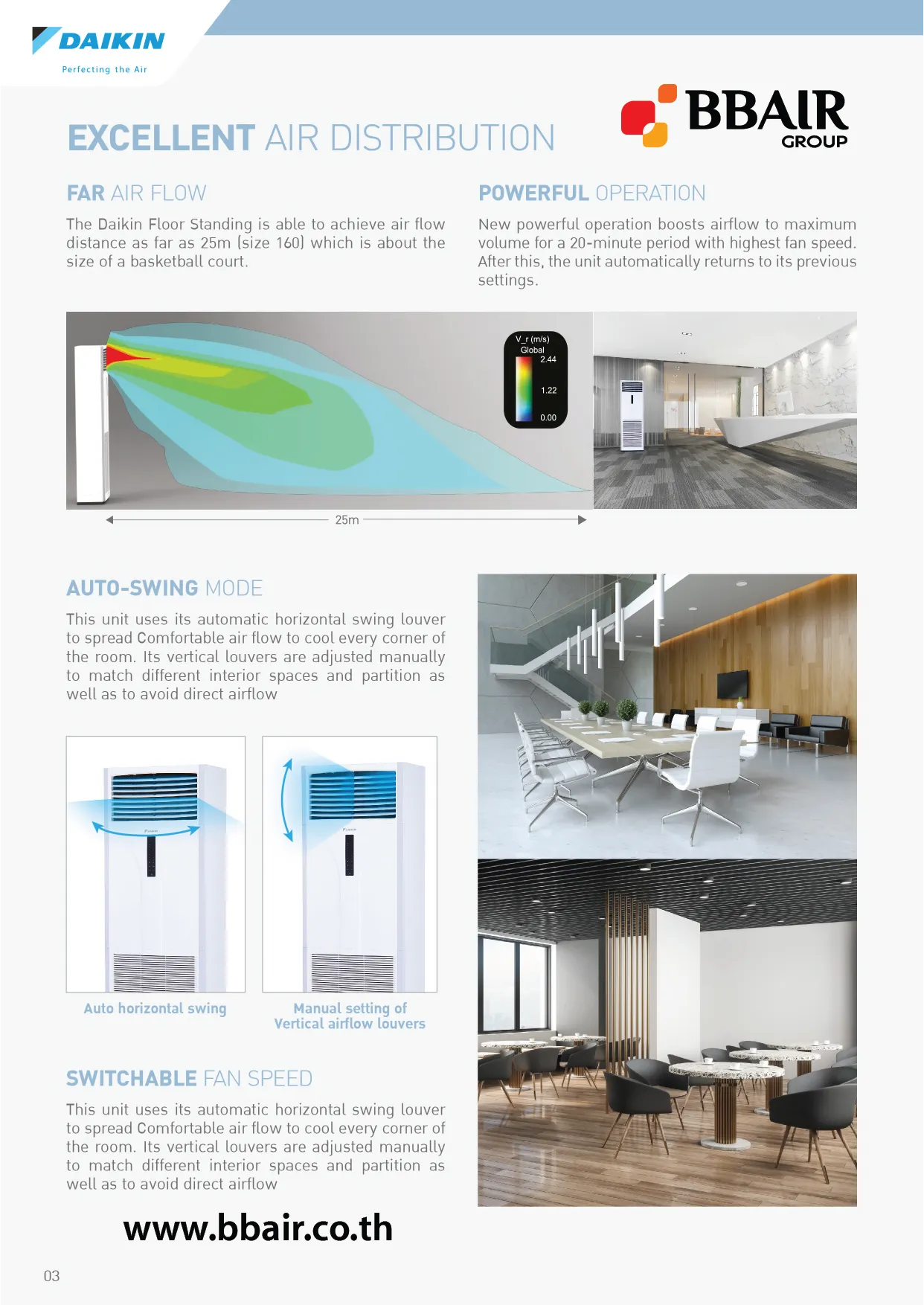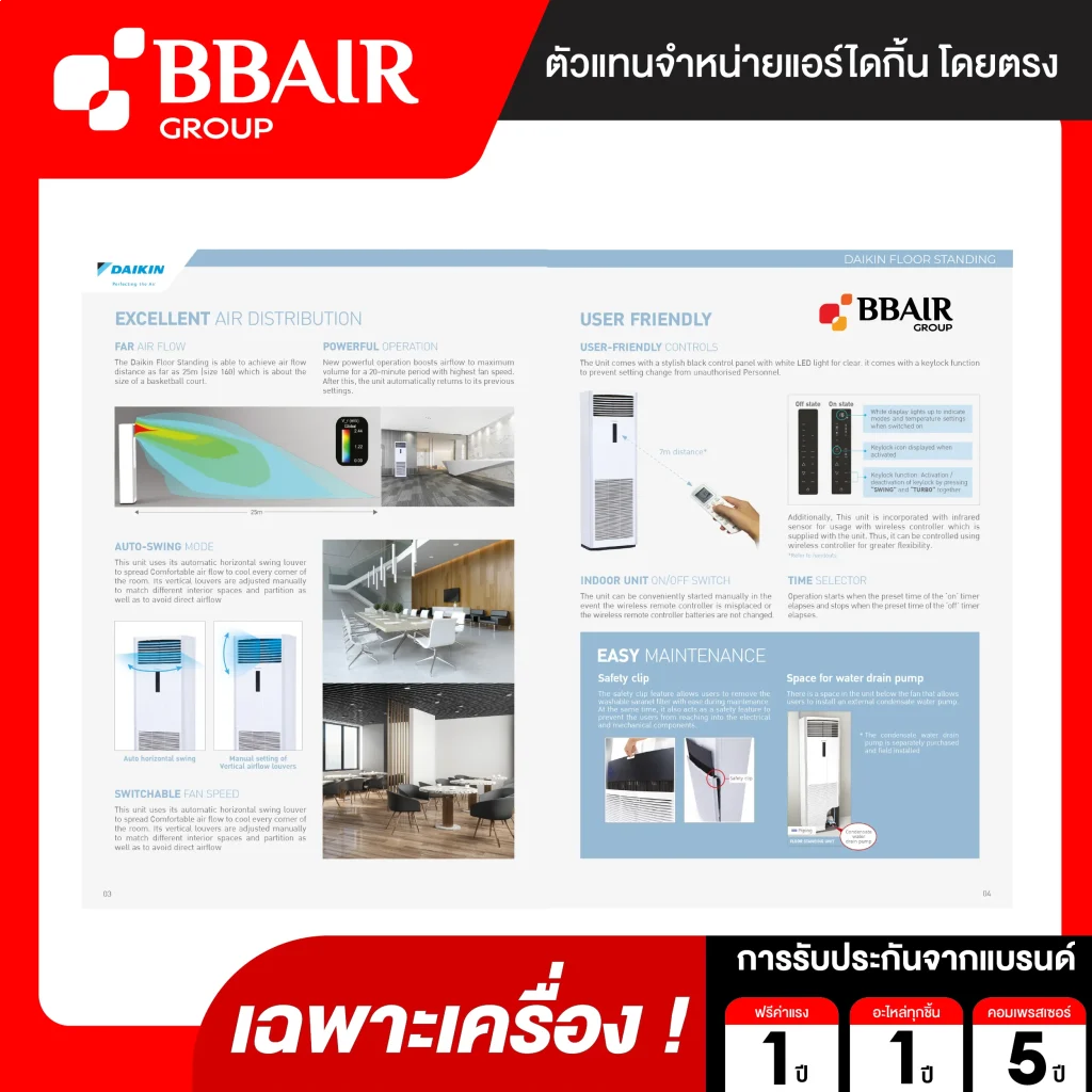ส่งลมเย็นได้ไกล ถึง 25m ทำให้เหมาะแก่การใช้งานในบริเวณที่มีพื้นที่กว้าง
