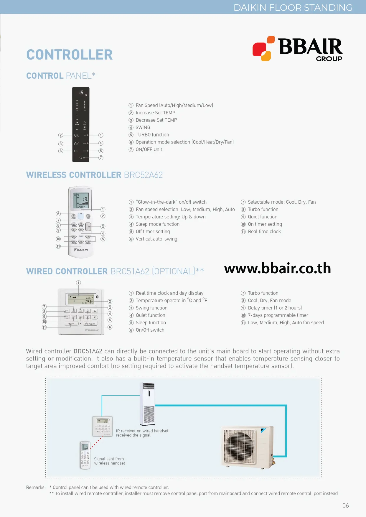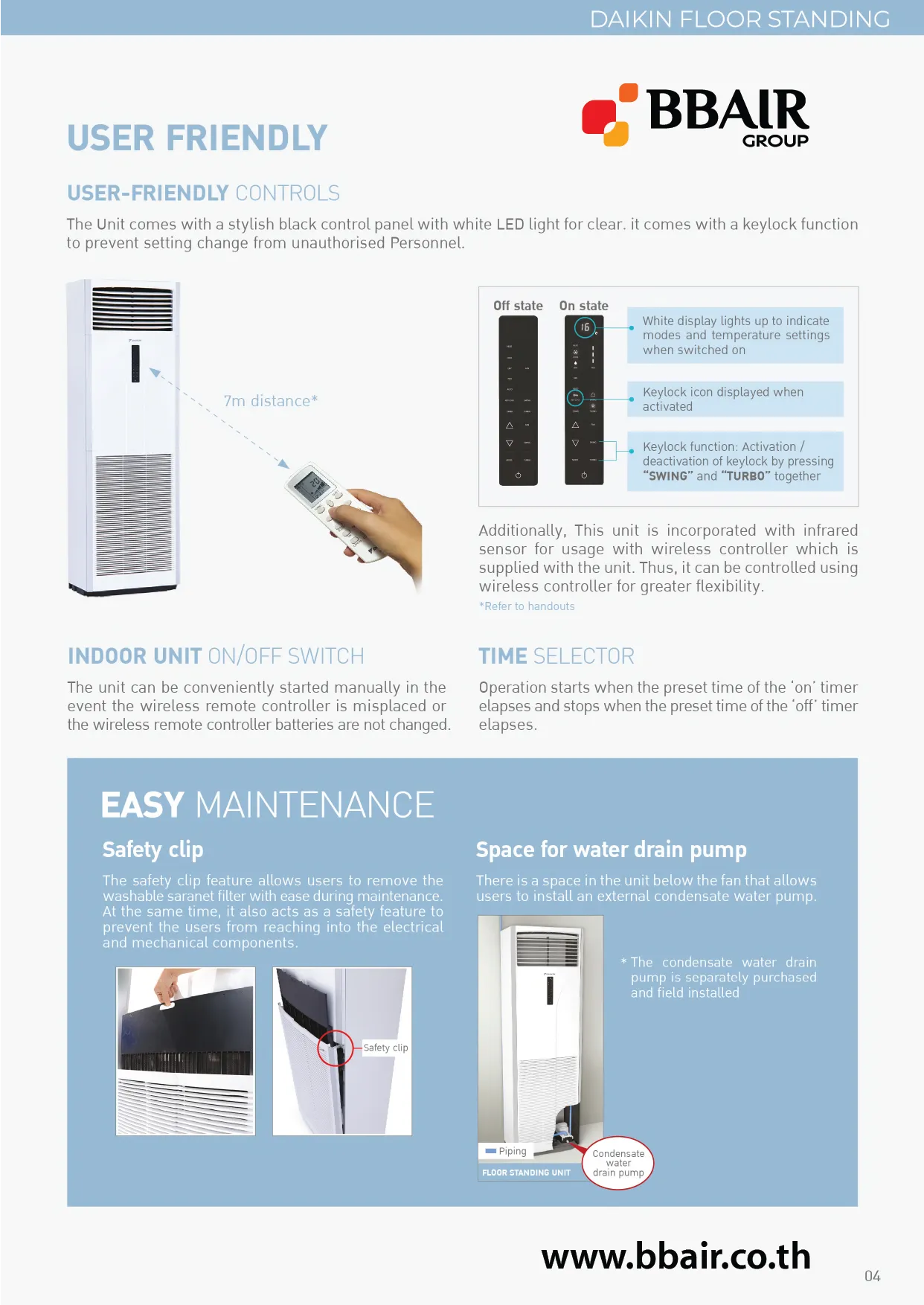 รีโมทคอนสำหรับควบคุมการใช้งานภายในห้อง สามารถควบคุมอุณหภูมิได้ด้วยปุ่มกดบนรีโมท เลขอุณหภูมิจะแสดงผลอย่างชัดเจนบนหน้าจอ LED