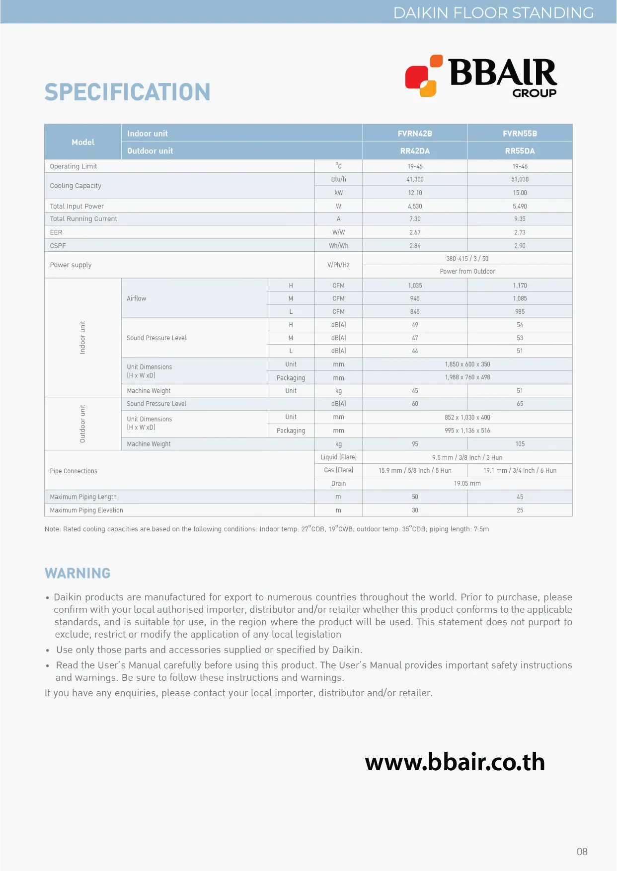 Air Daikin Floor Standing FVRN-BX SERIES ,Refrigerant R-410