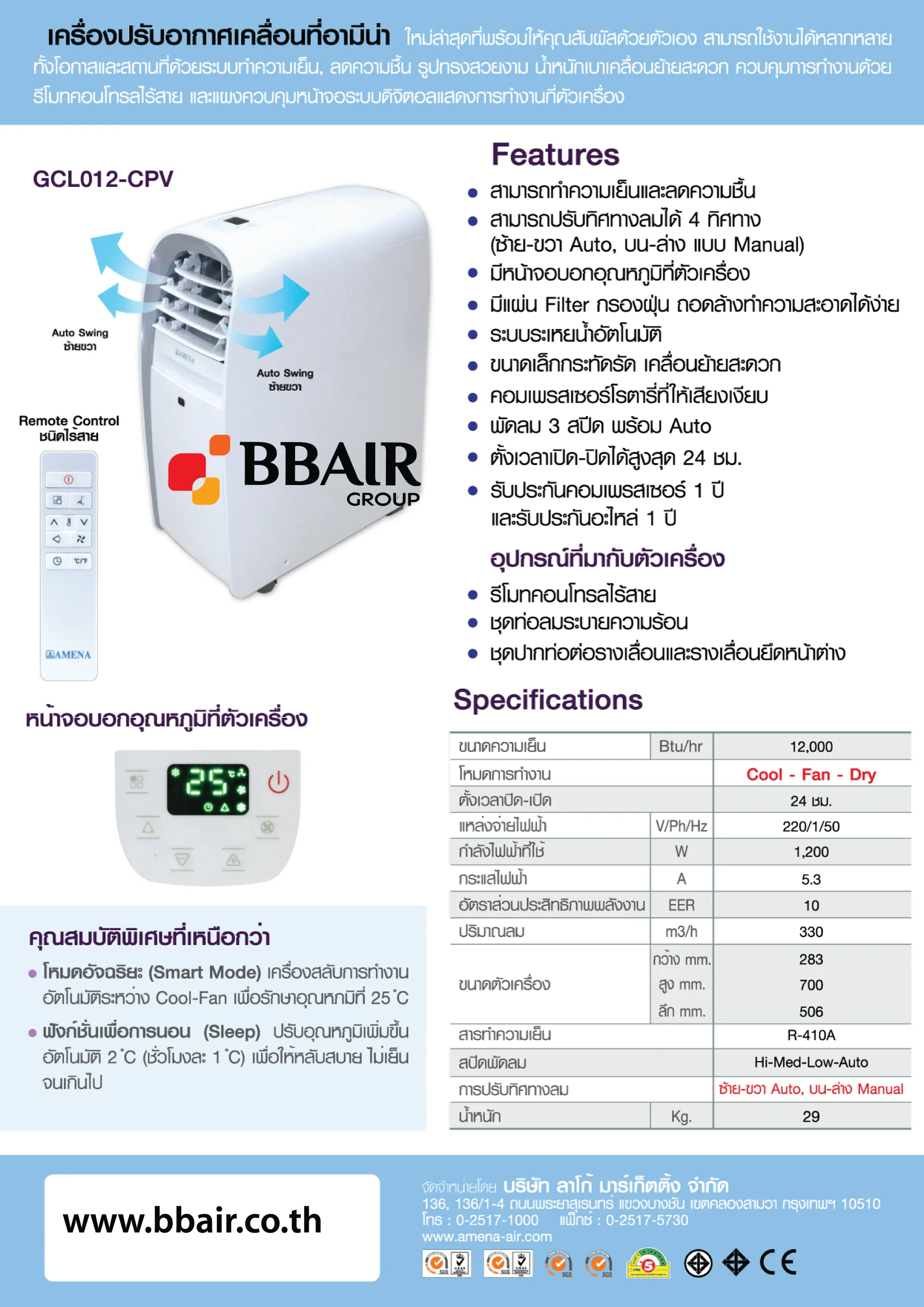 คุณสมบัติสินค้าของแอร์เคลื่อนที่ Amena Air Portable