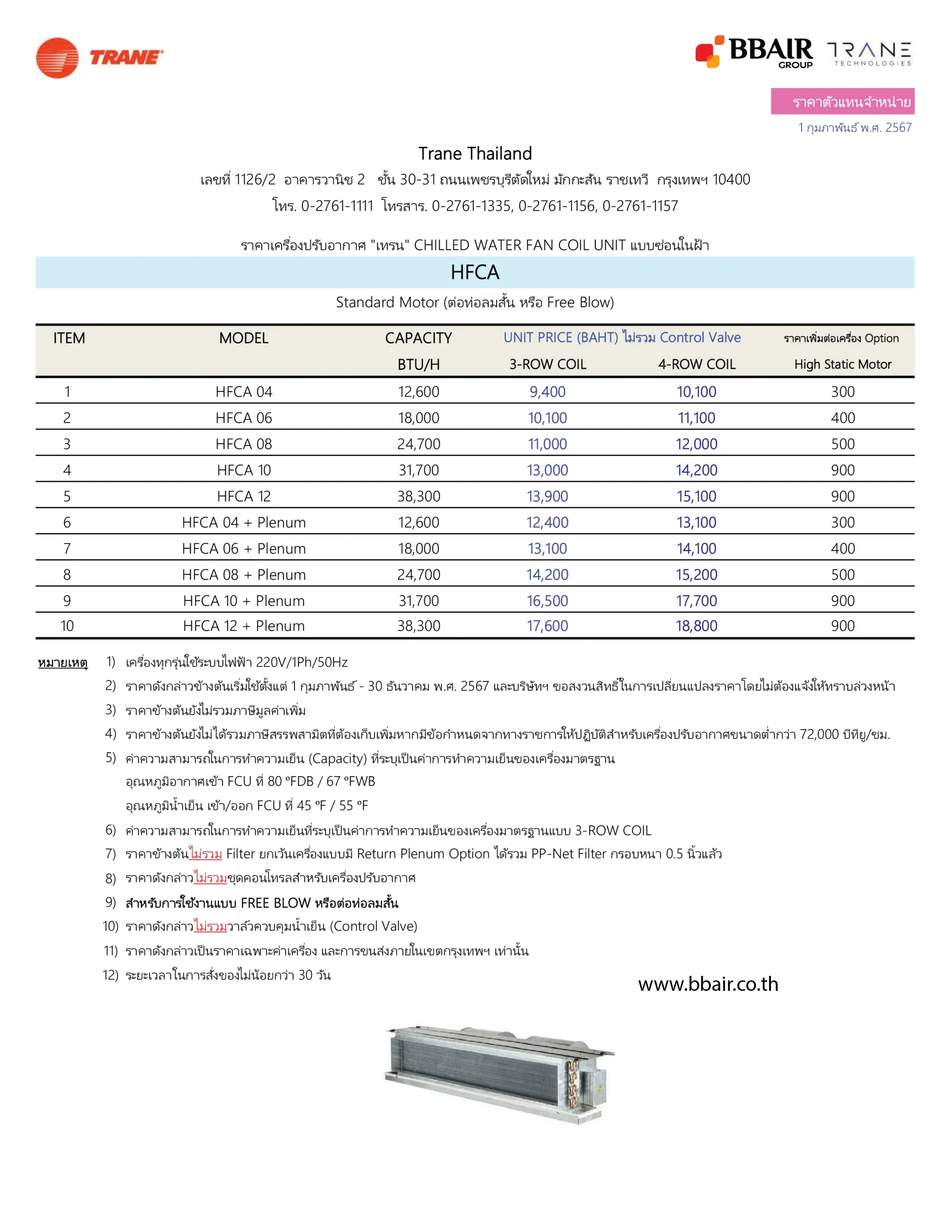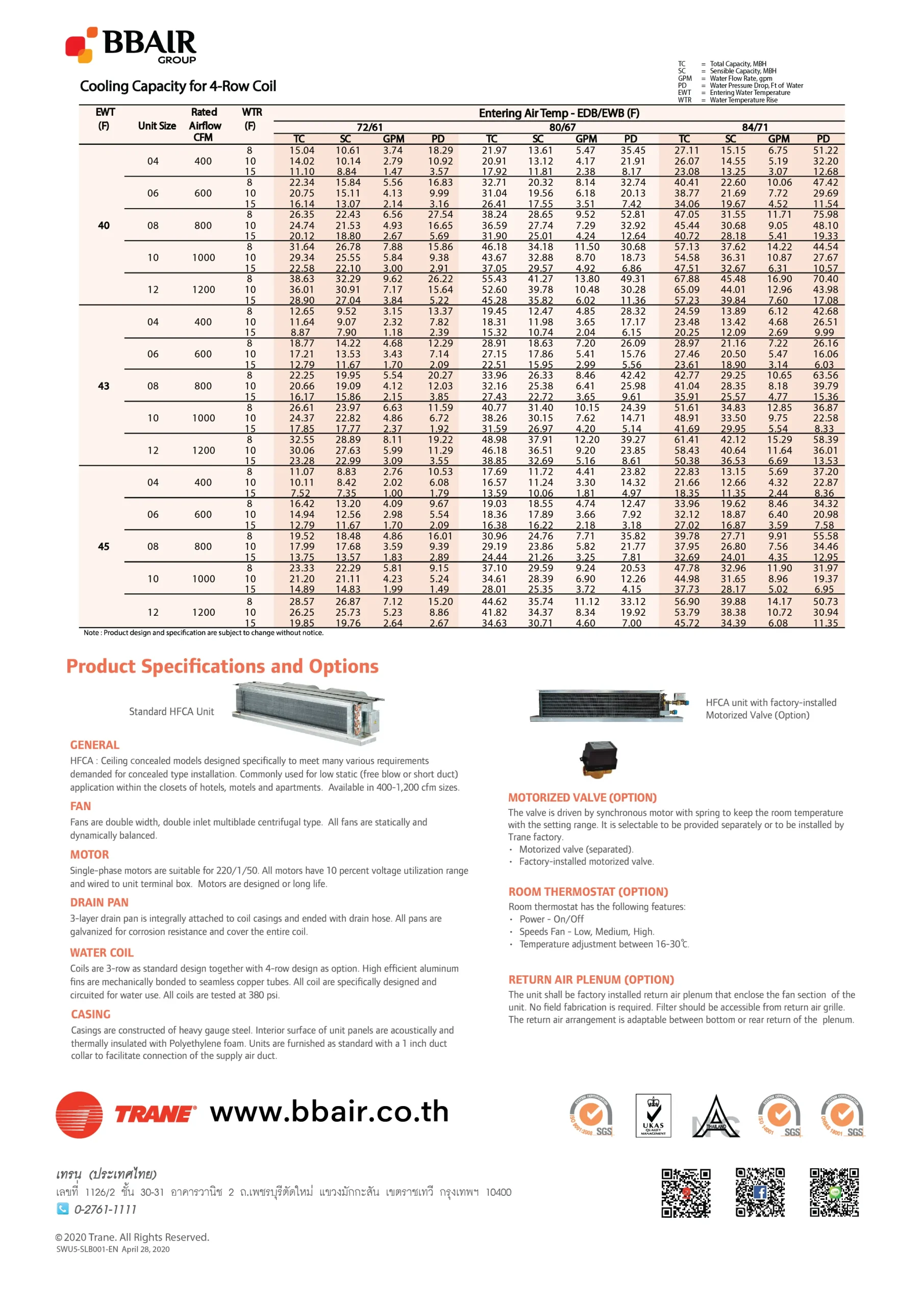 คุณสมบัติสินค้าของแอร์เทรน TRANE CHILLED WATER FAN COIL UNIT แบบซ่อนในฝ้า HFCA SERIES