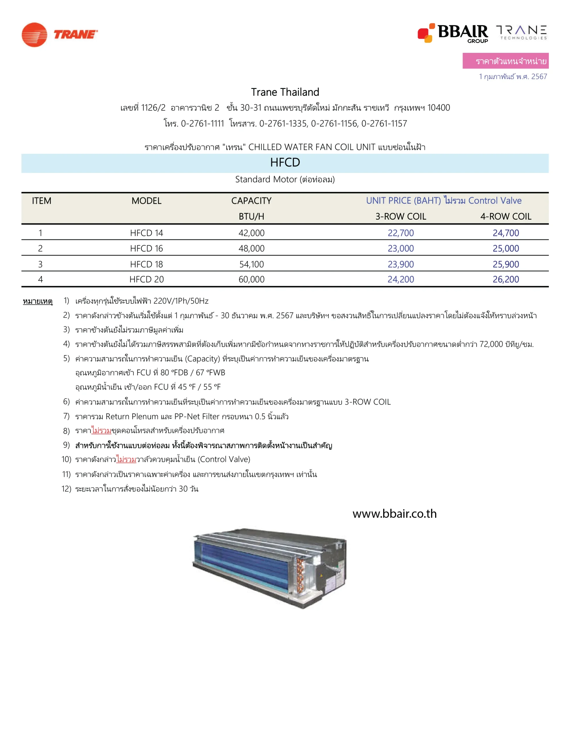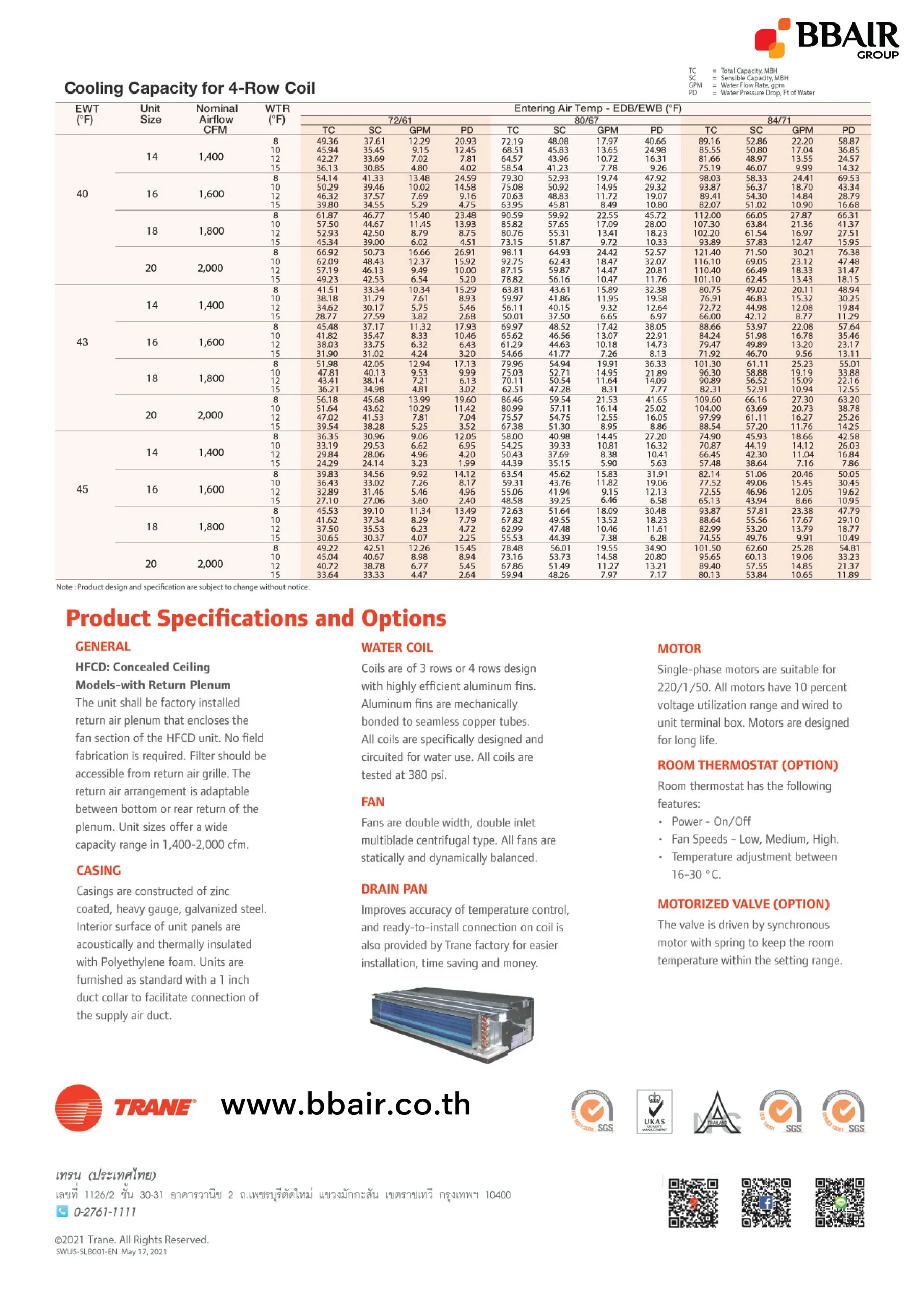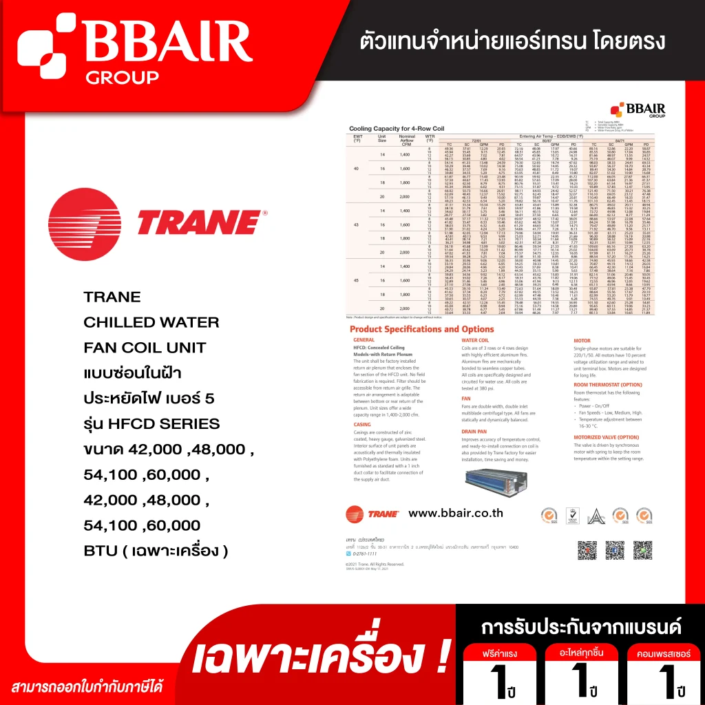 คุณสมบัติสินค้าของแอร์เทรน TRANE CHILLED WATER FAN COIL UNIT แบบซ่อนในฝ้า HFCD SERIES