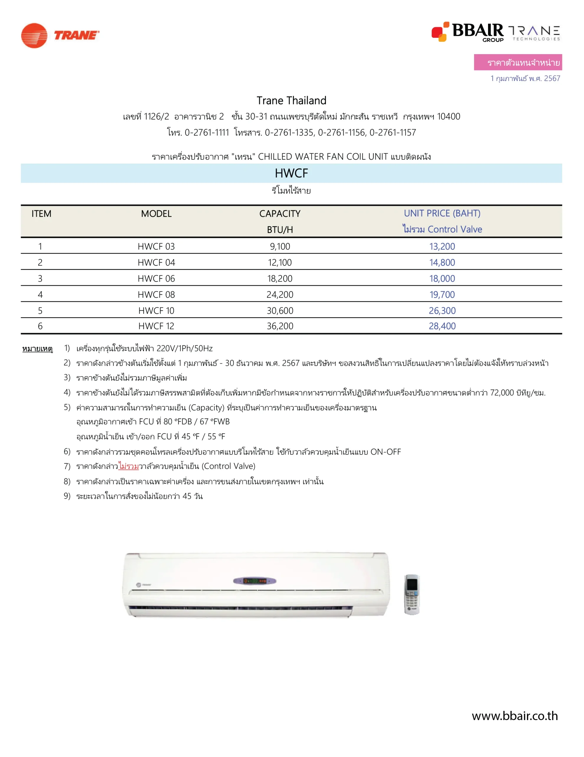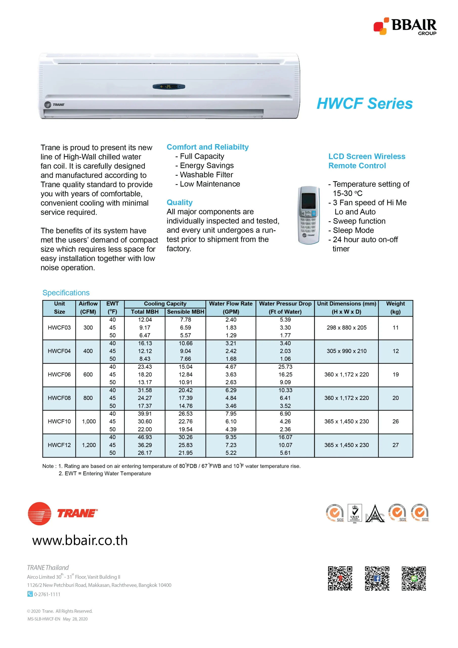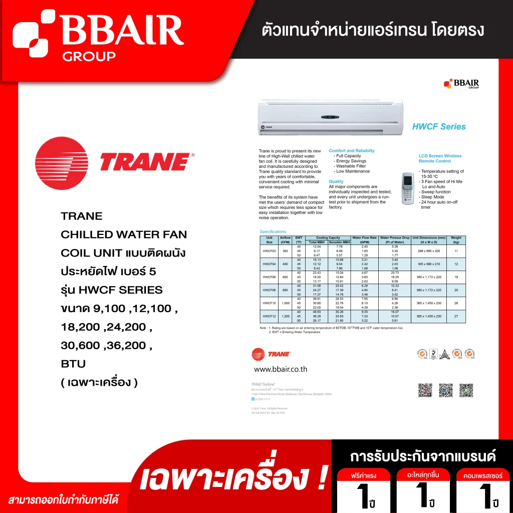 คุณสมบัติสินค้าของแอร์เทรน TRANE CHILLED WATER FAN COIL UNIT แบบติดผนัง HWCF SERIES