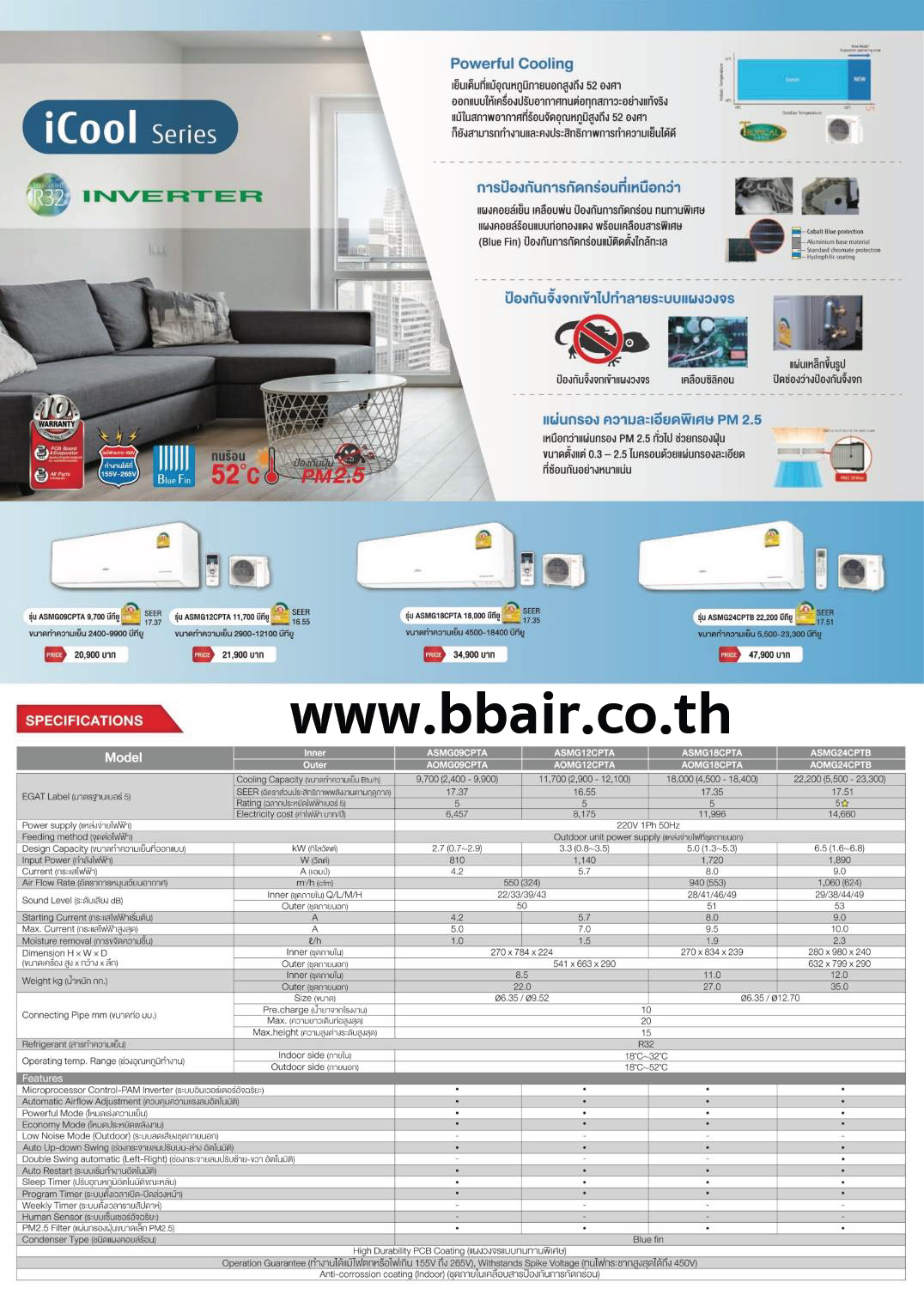 คุณสมบัติแอร์ฟูจิสึ FUJITSU แบบติดผนัง อินเวอร์เตอร์ รุ่น iCool SERIES